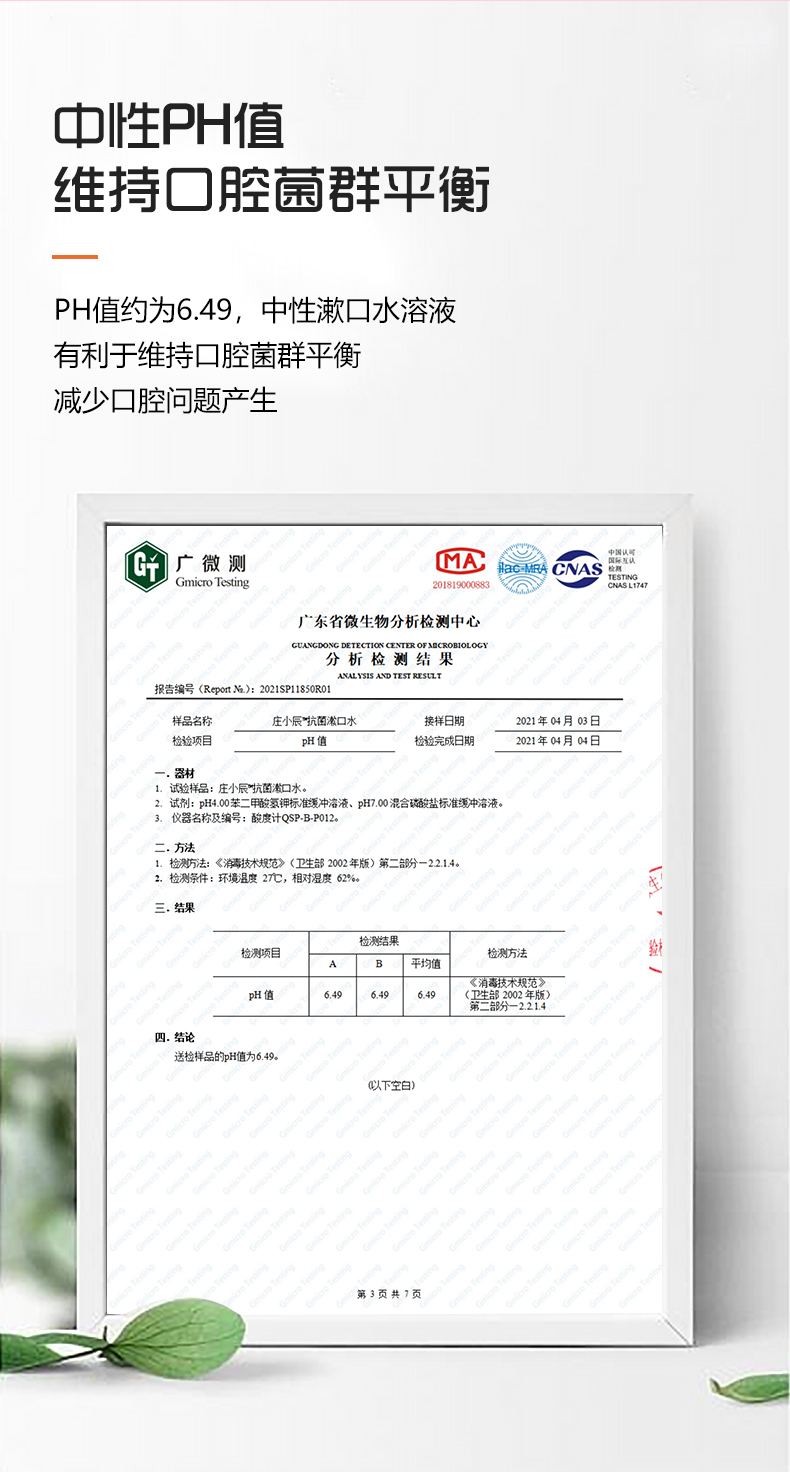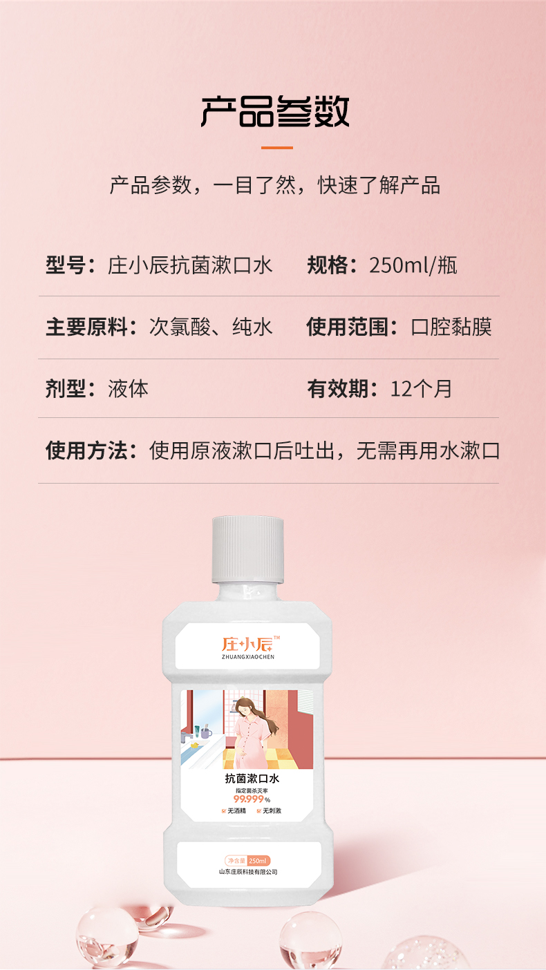 庄小辰 抗菌漱口水 250ml/瓶 无酒精 平和菌群 去除口气 母婴适用
