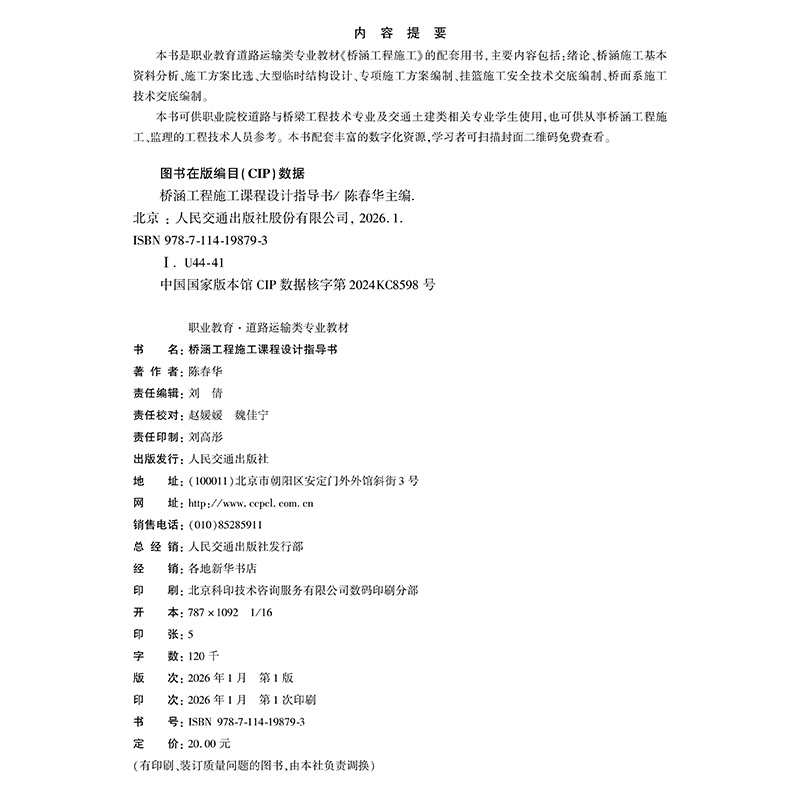 书名:桥涵工程施工课程设计指导书
