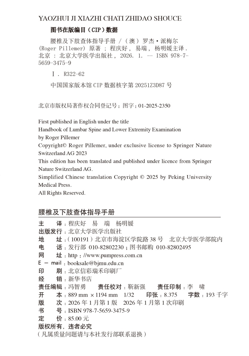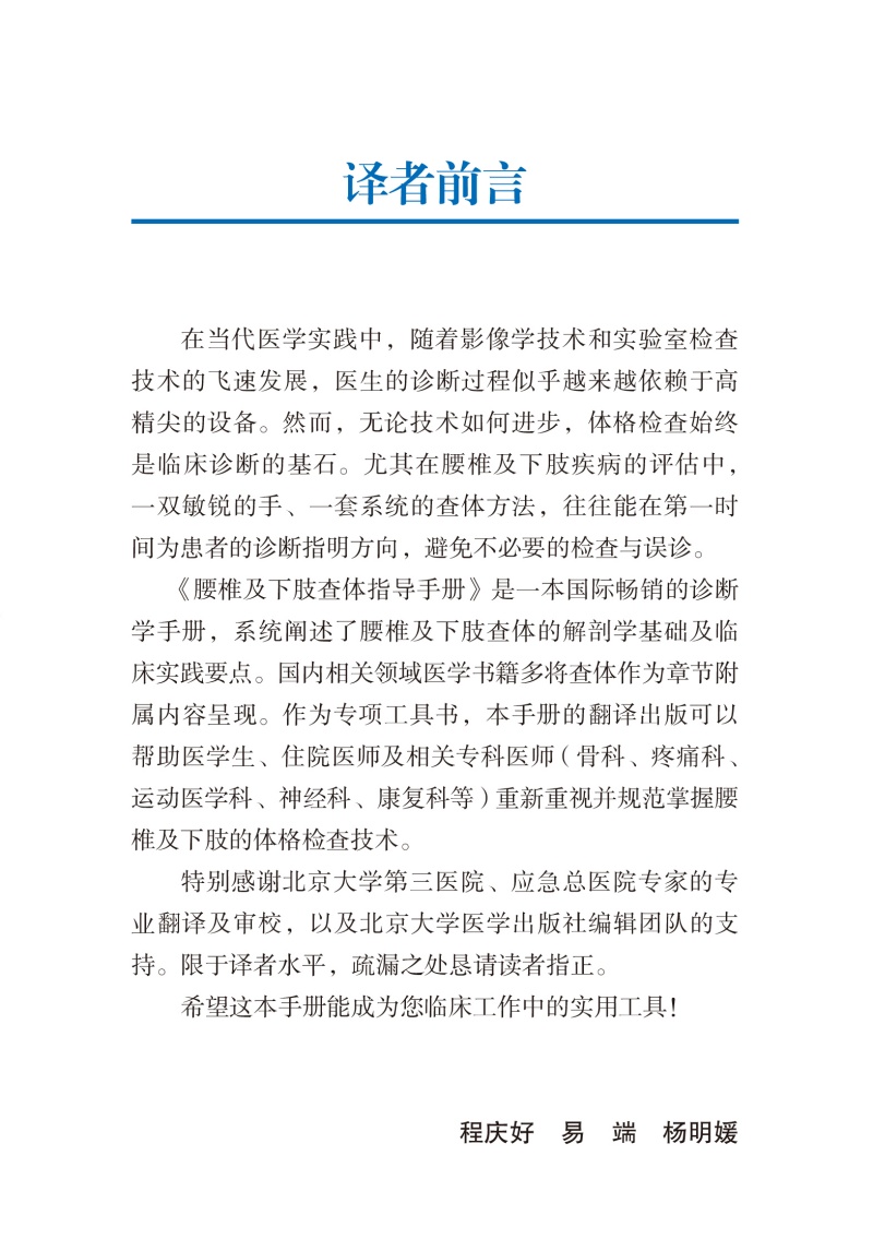 腰椎及下肢查体指导手册 程庆好 易端 杨明媛 主译 系统阐述腰椎及下肢查体的解剖学基础及临床实践要点 北京大学医学出版社