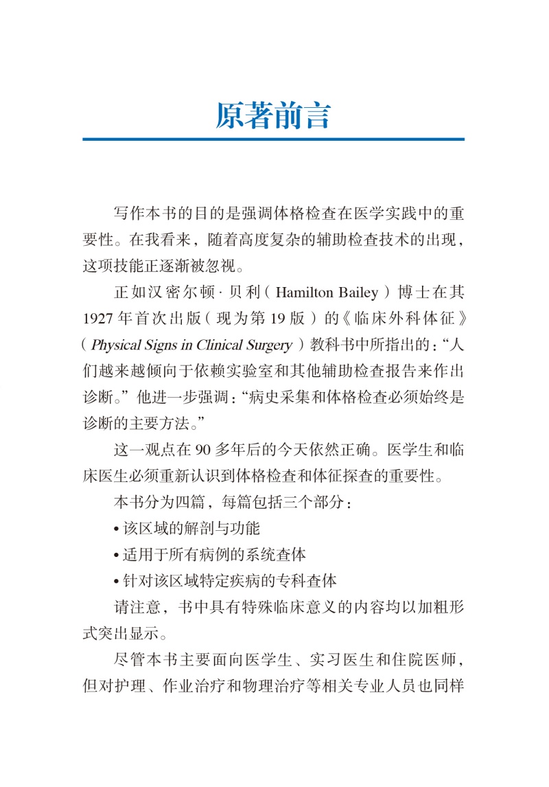 《腰椎及下肢查体指导手册》是一本国际畅销的诊断学查体手册,系统阐述了腰椎及下肢查体的解剖学基础及临床实践要点。本书分为四篇,每篇包括三个部分:①该区域的解剖与功能;②适用于所有病例的系统性检查方法;③针对该区域特定疾病的专项检查。书中配有大量查体照片和示意图,方便读者理解。本手册可以帮助医学生、住院医师及相关专科医师(骨科、疼痛科、运动医学科、神经科、康复科等)重新重视并规范掌握腰椎及下肢的体格检查技术。