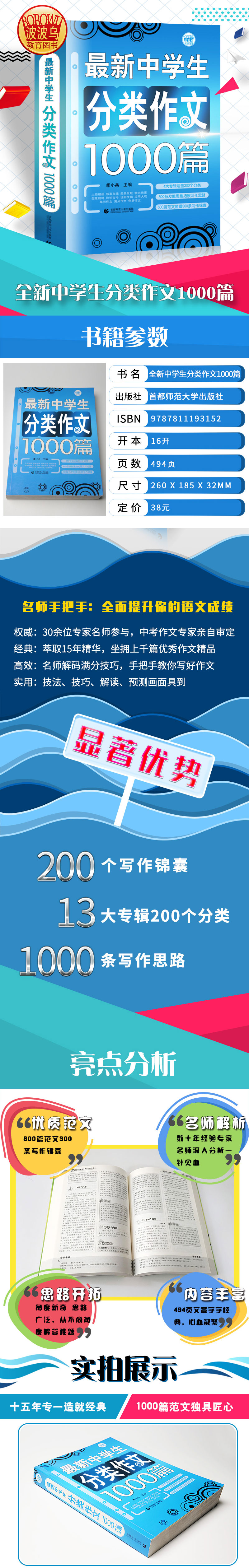 波波乌作文大宝库 最新中学生分类作文1000篇 季小兵编 中学生作文辅导获奖范文大全 初中生789年级作文素材教辅书籍