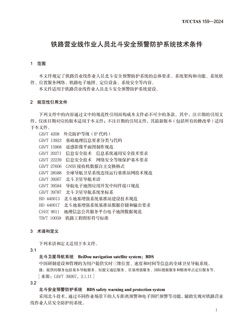 书名:铁路营业线作业人员北斗安全预警防护系统技术条件T/CCTAS 159—2024
