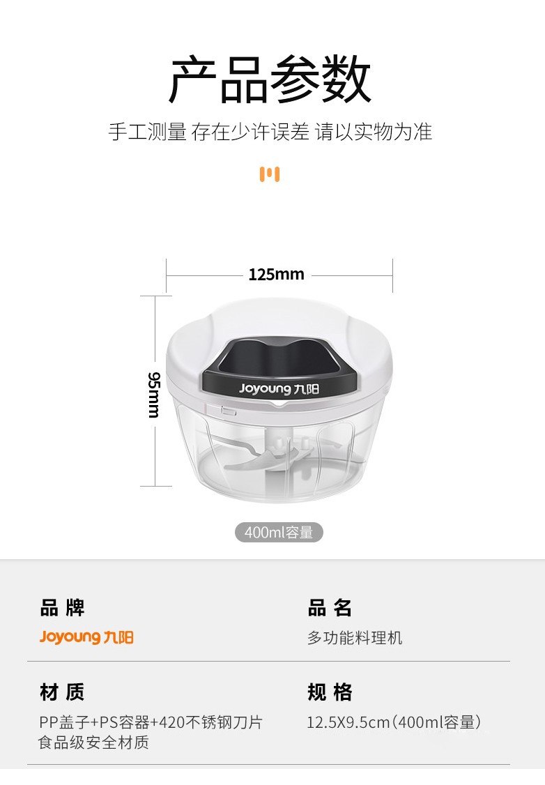 九阳蒜泥器 家用拉蒜器 捣蒜器 厨房多功能料理机搅切菜器碎辣椒神器
