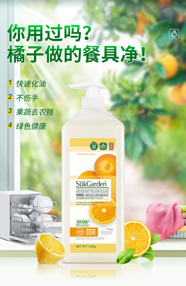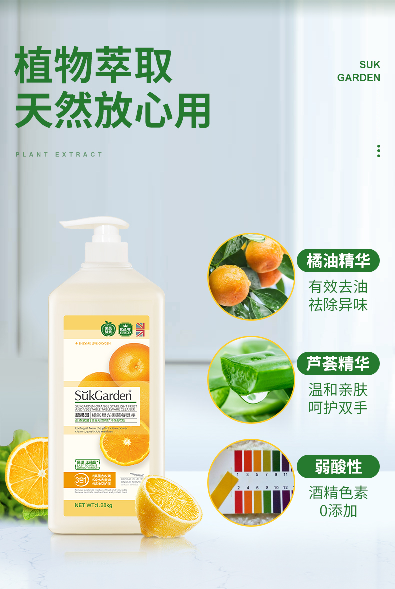 SukGarden蔬果园橘采星光果蔬餐具净 (半透瓶)泵装-1.28kg