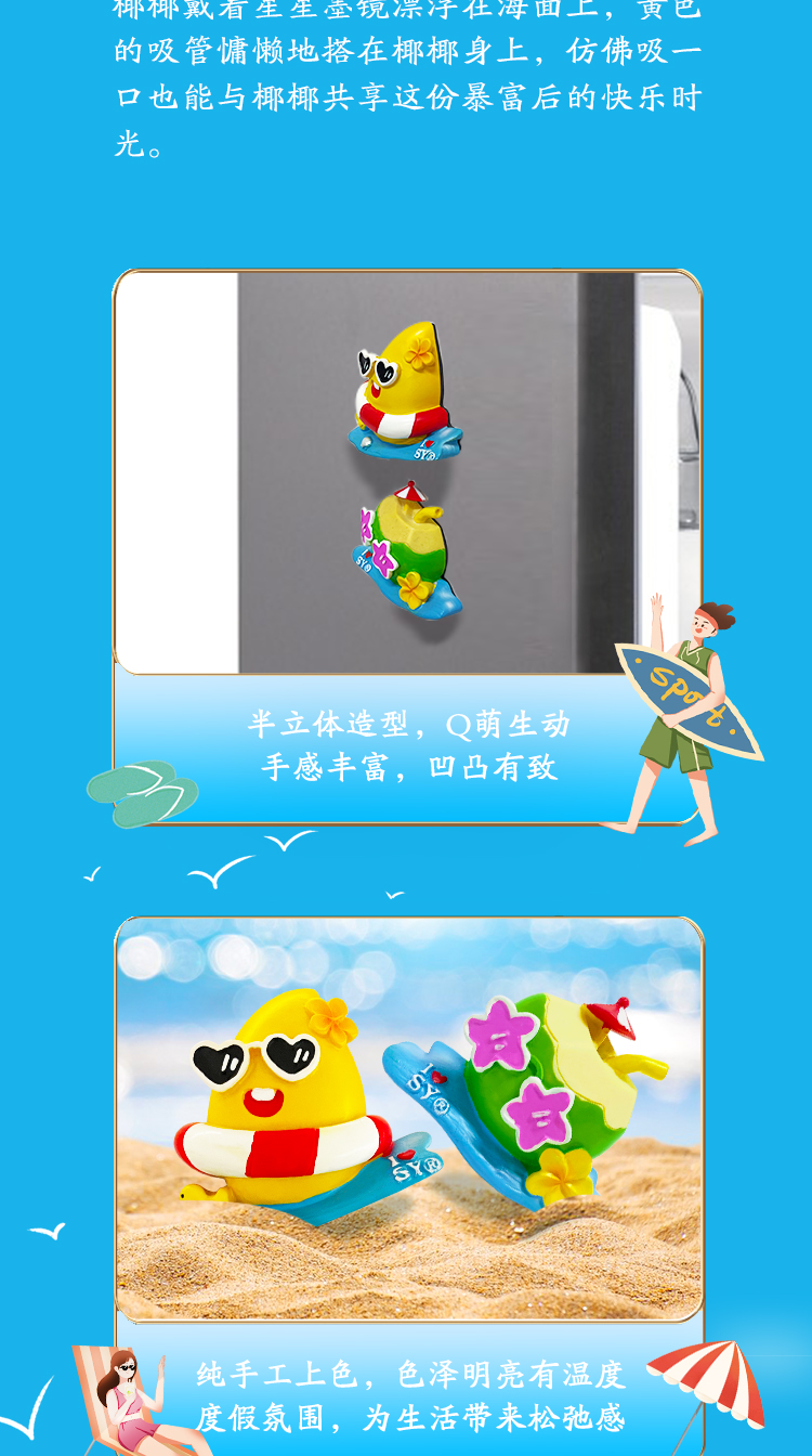 【机场同款】海南三亚冰箱贴一椰暴富芒着可爱磁贴礼物迁客文创
