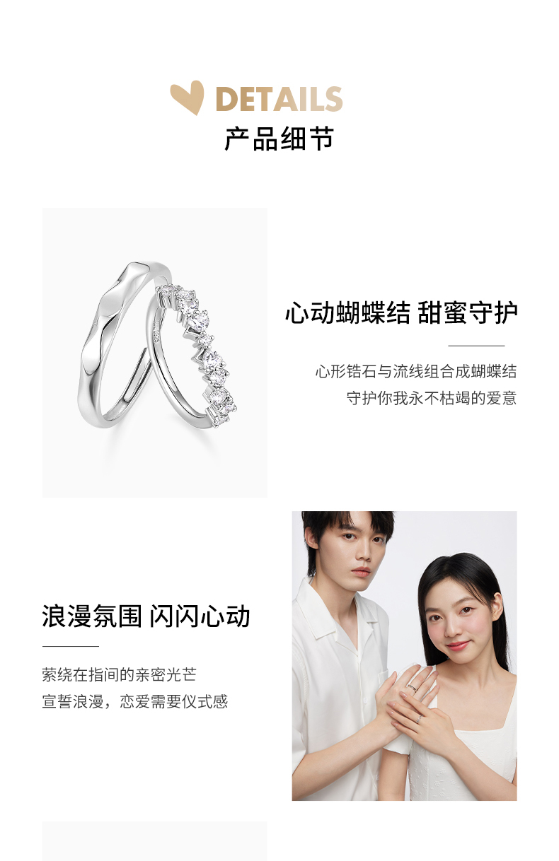 卡蒂罗/KADER 心动蝴蝶结情侣对戒 925银甜美蝴蝶结满钻轻奢时尚开口可调节一对 可爱吸睛精致百搭配饰 情人节礼盒