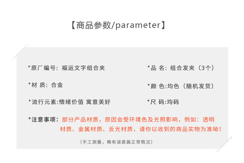 福运文字组合夹组合发夹(3个)-纪念日百货门店同款169248239
