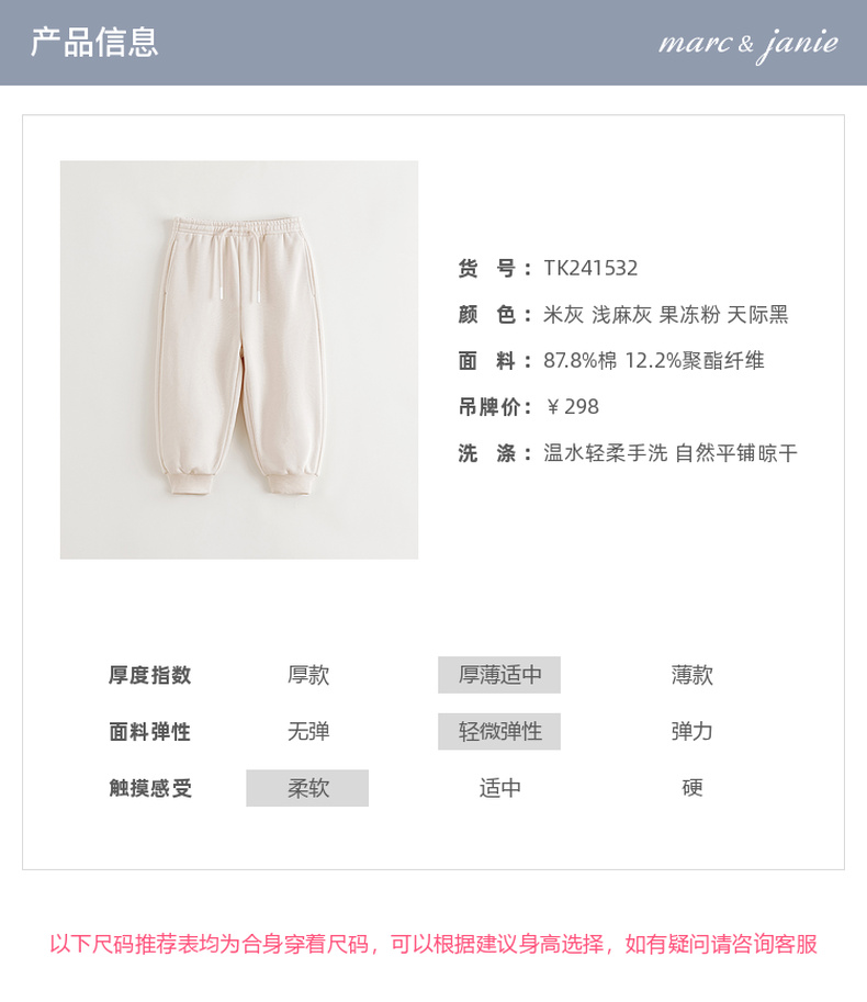 马克珍妮男女童休闲百搭运动裤儿童裤子宽松卫裤秋装新款241532