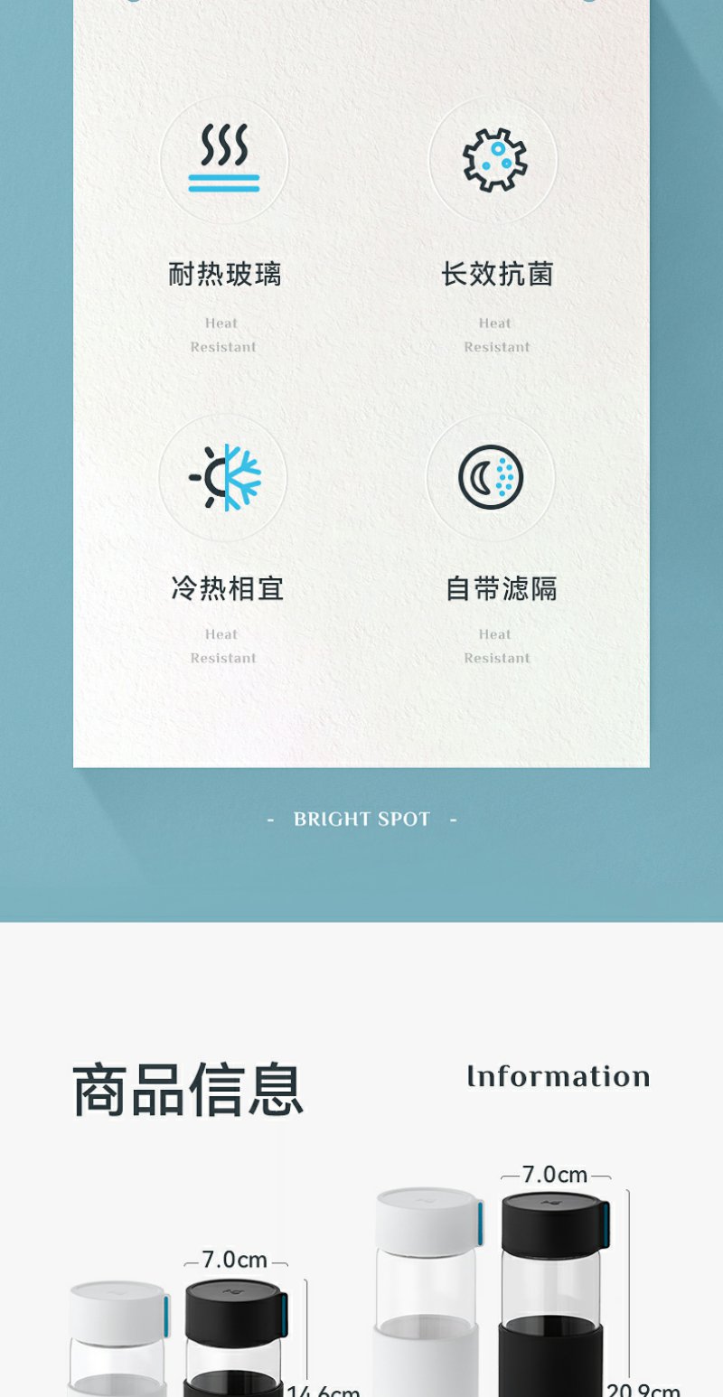 【茶花】玻璃水杯男玻璃杯便携咖啡杯极简随行杯