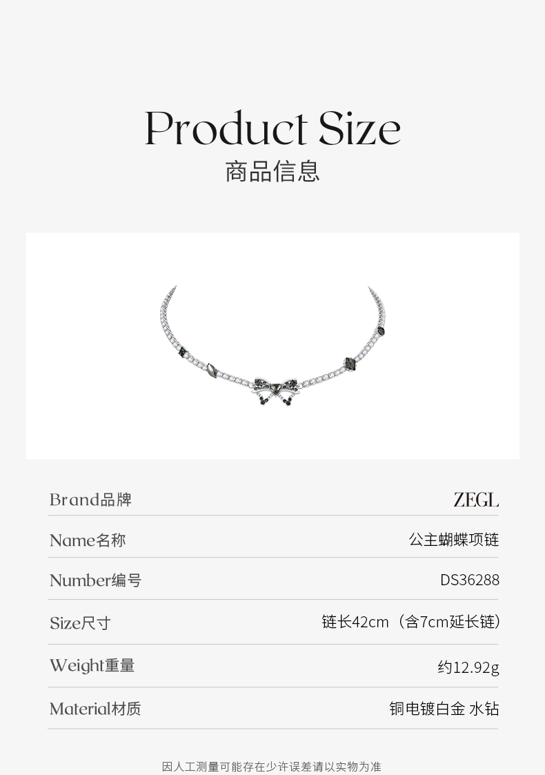 ZEGL设计师黑公主系列蝴蝶项链女法式轻奢小众高级感锁骨链配饰品