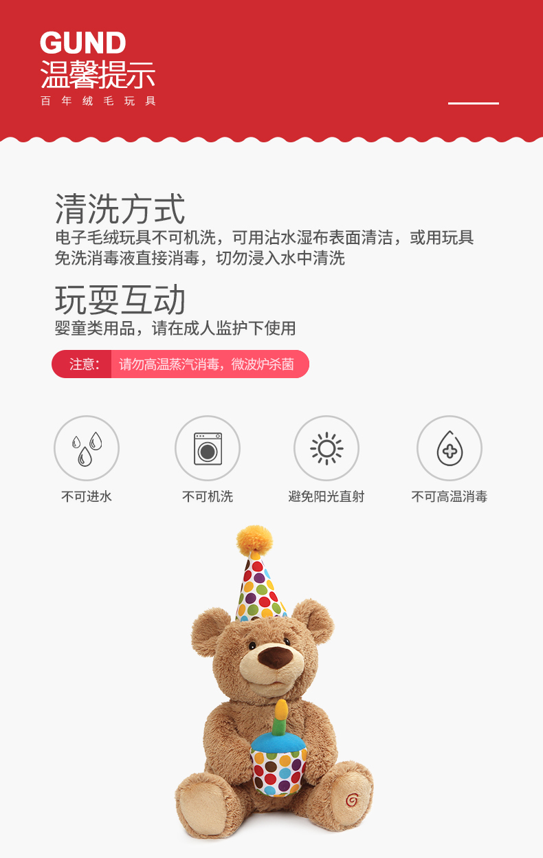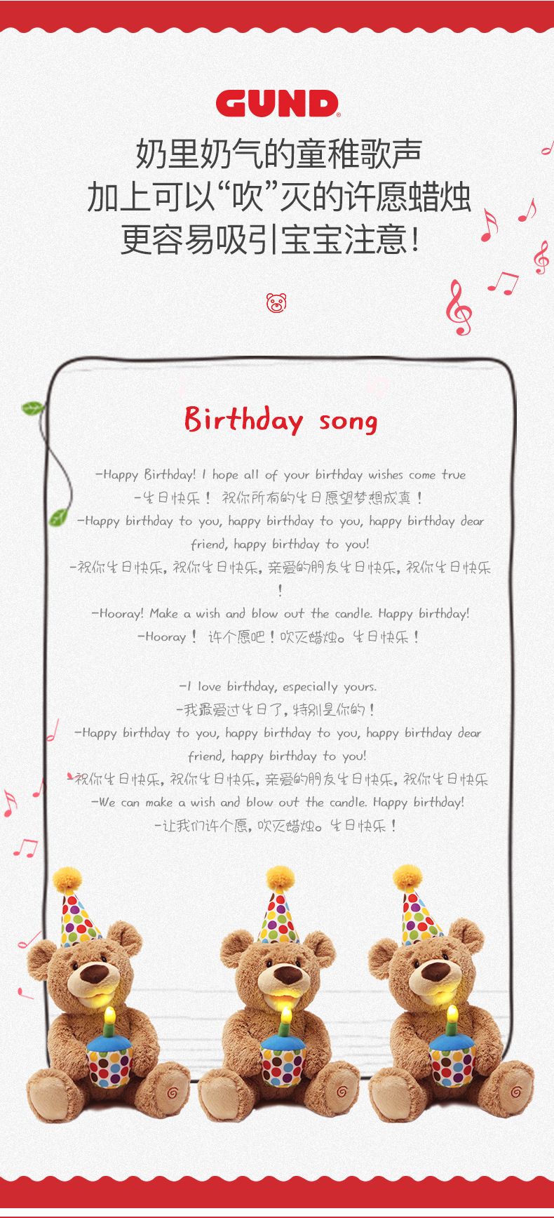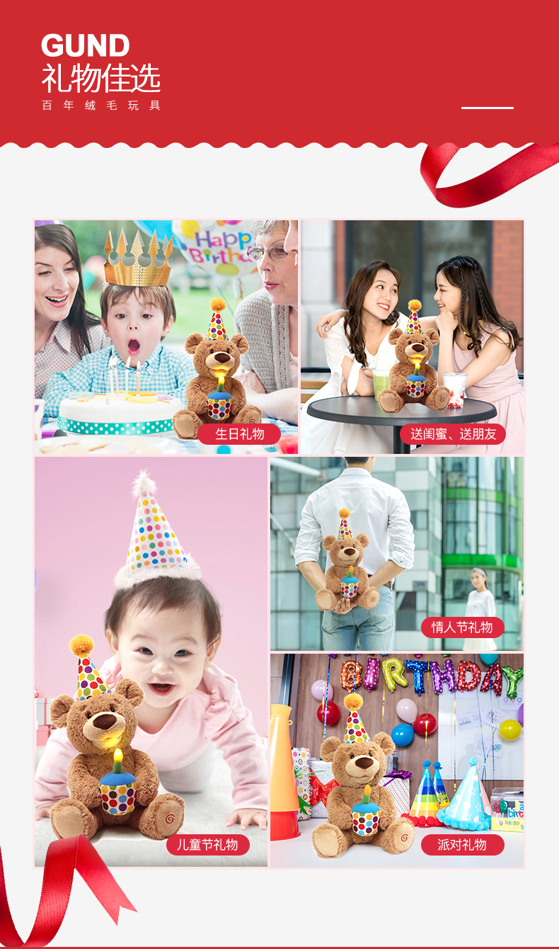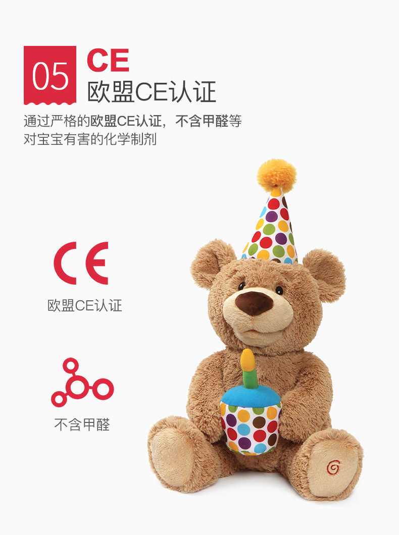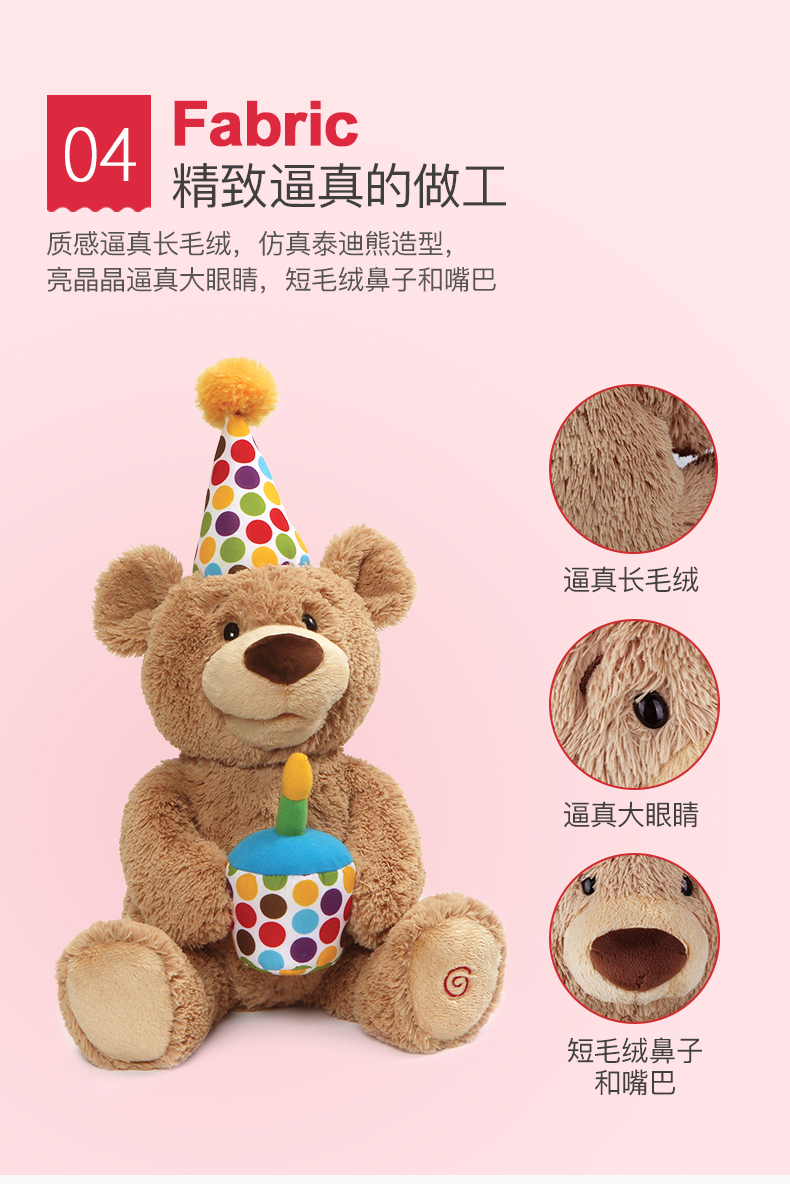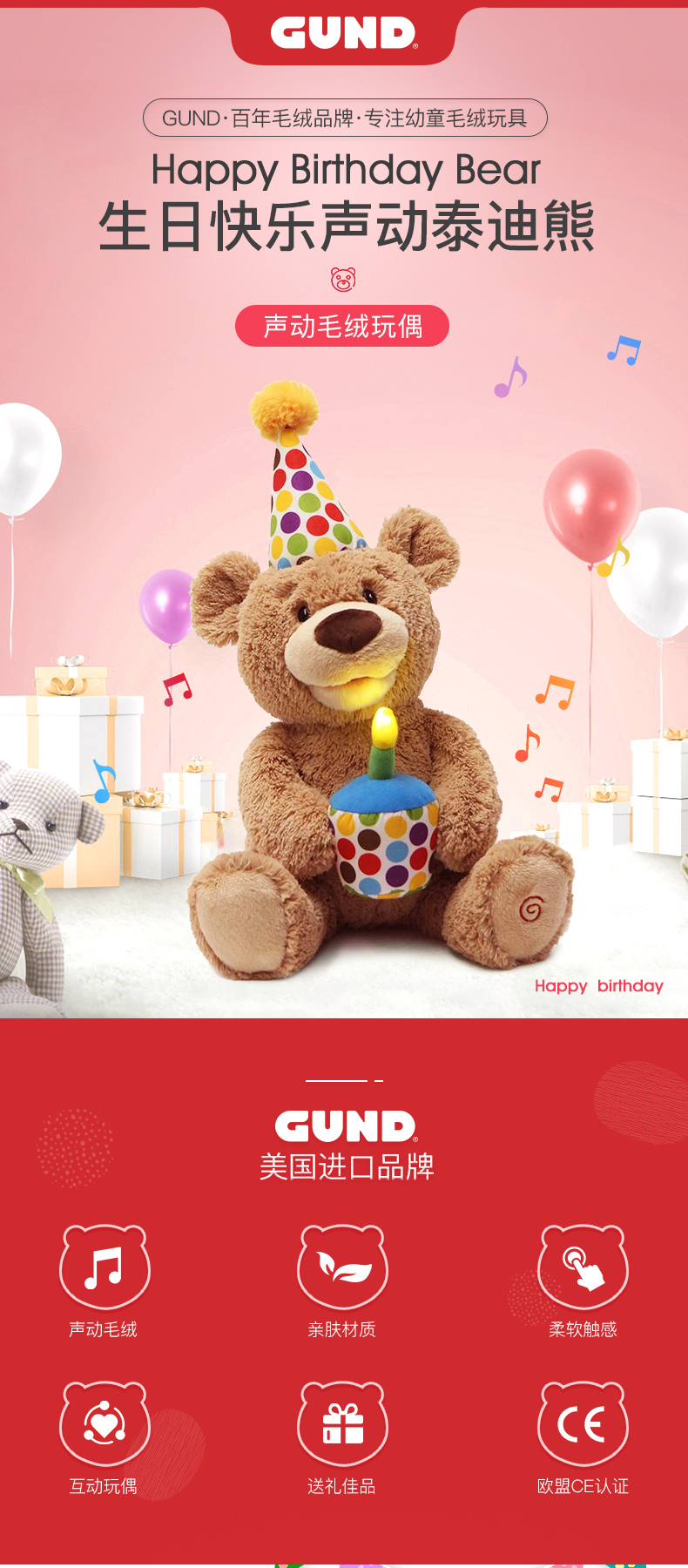 美国babygund儿童玩具生日快乐声动泰迪熊/生日熊