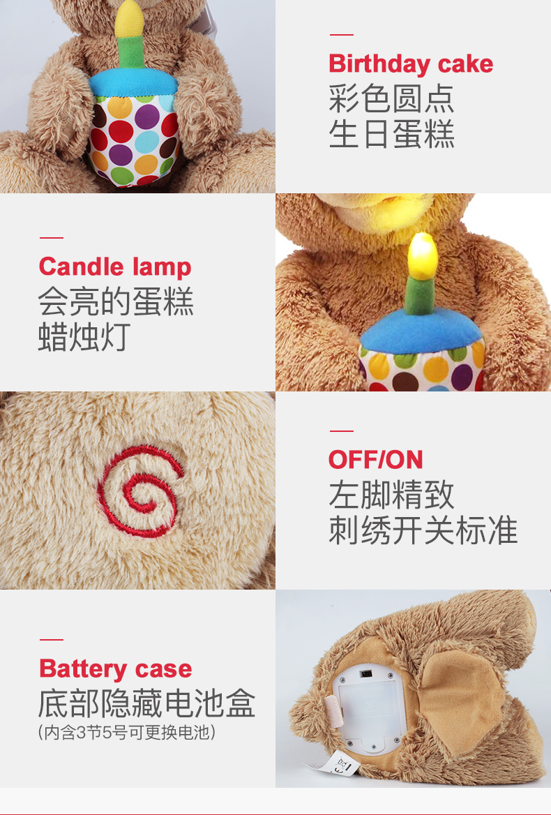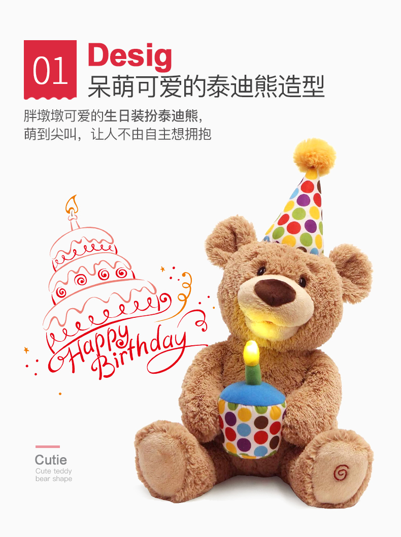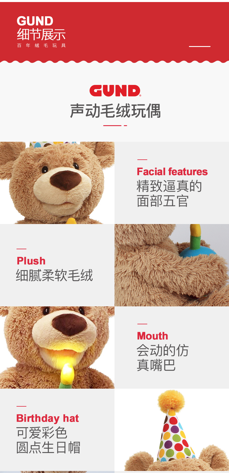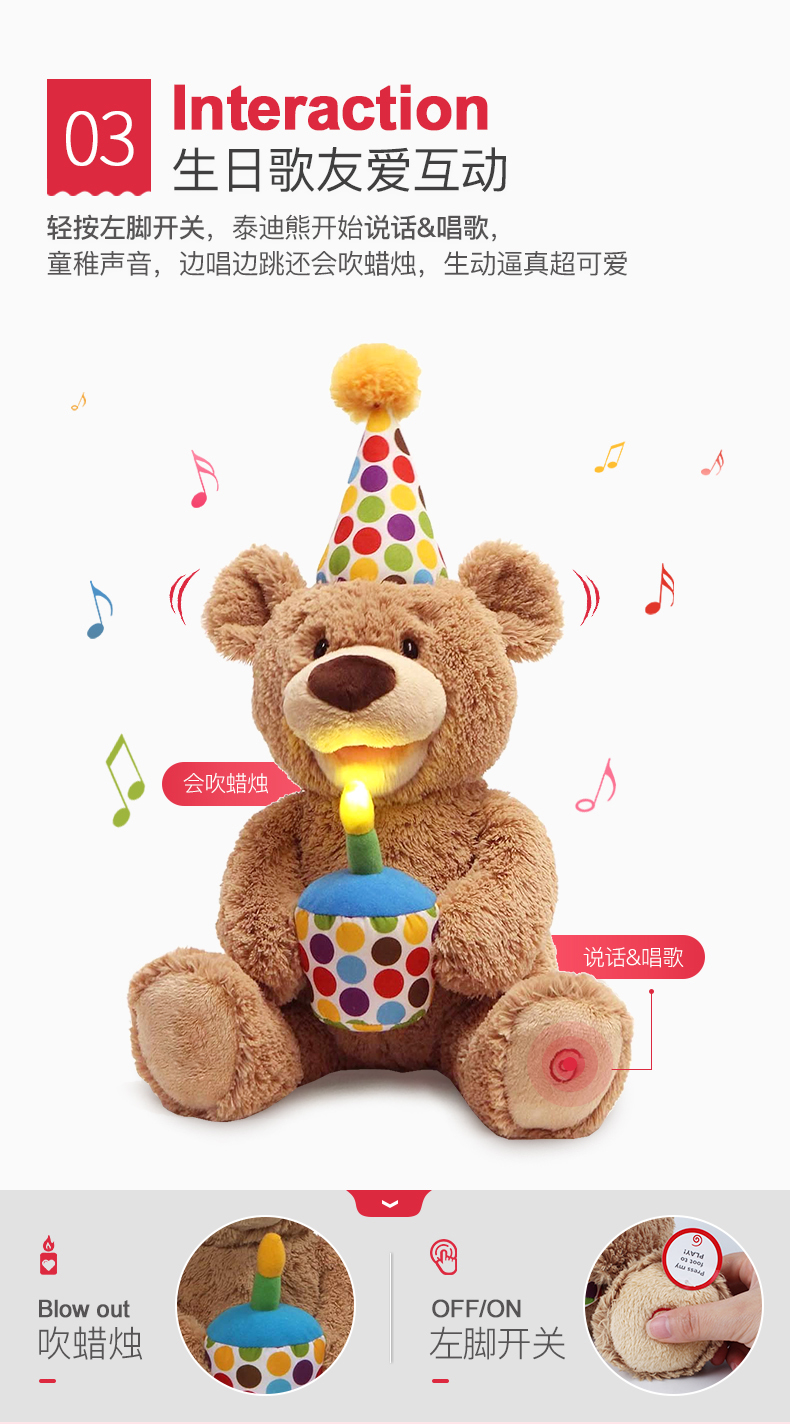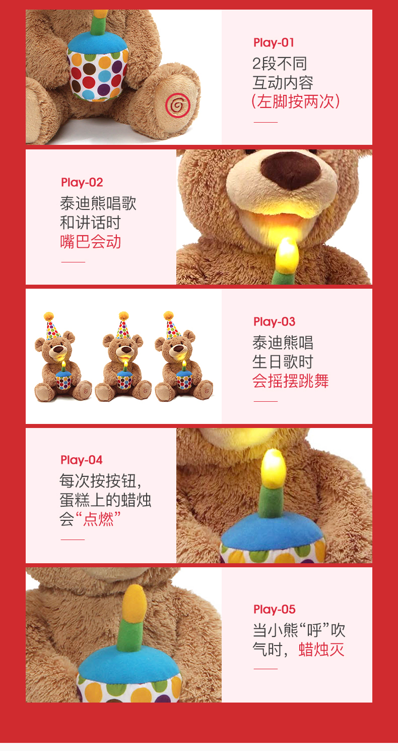 美国babygund儿童玩具生日快乐声动泰迪熊/生日熊