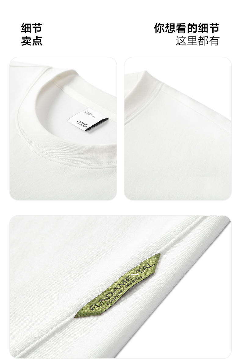 gxgjeans男装 【男女同款】超好搭新品T恤多色可选肩部嵌条休闲宽松圆领短袖t恤男 26夏新品【白色M-XL;卡其M-L预计5.17发货】
