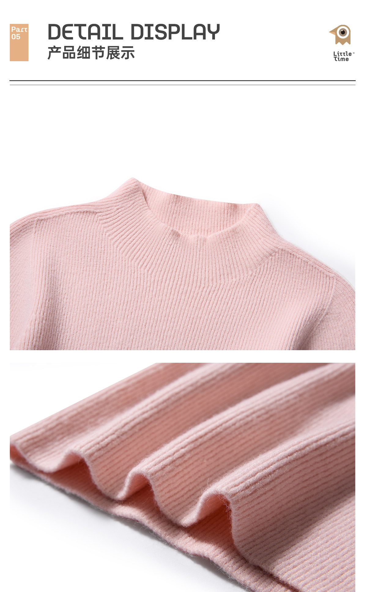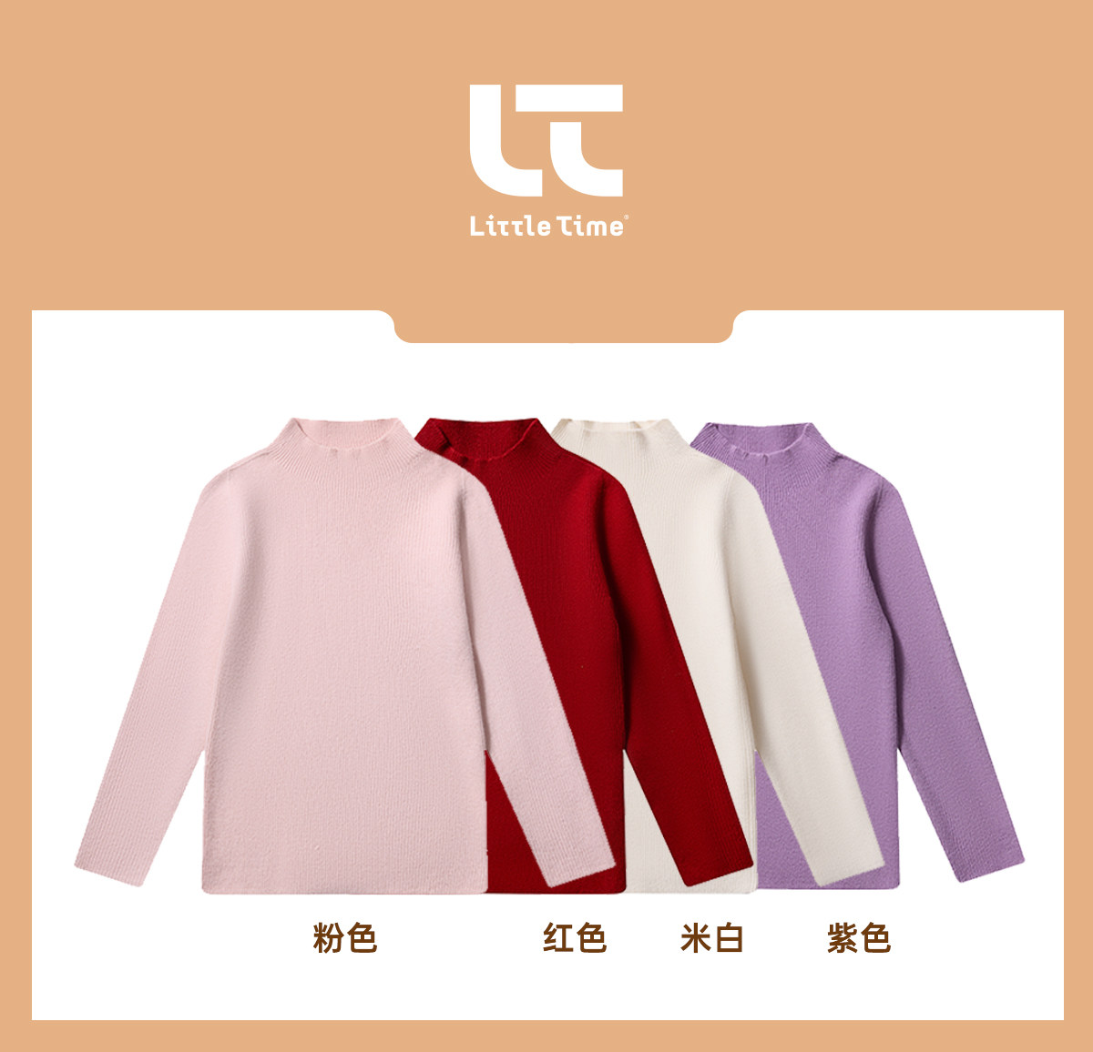 littletime儿童半高领长袖无缝毛衣百搭保暖针织衫多色针织上衣