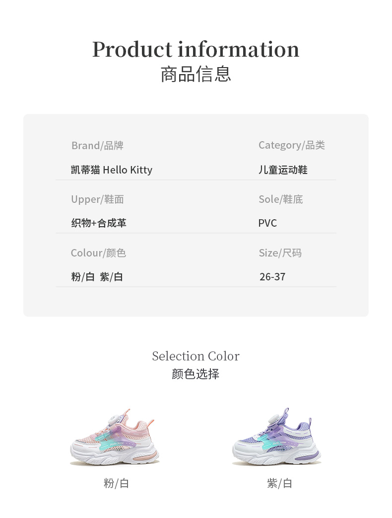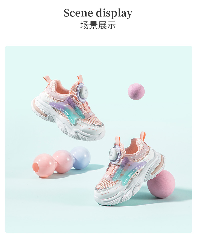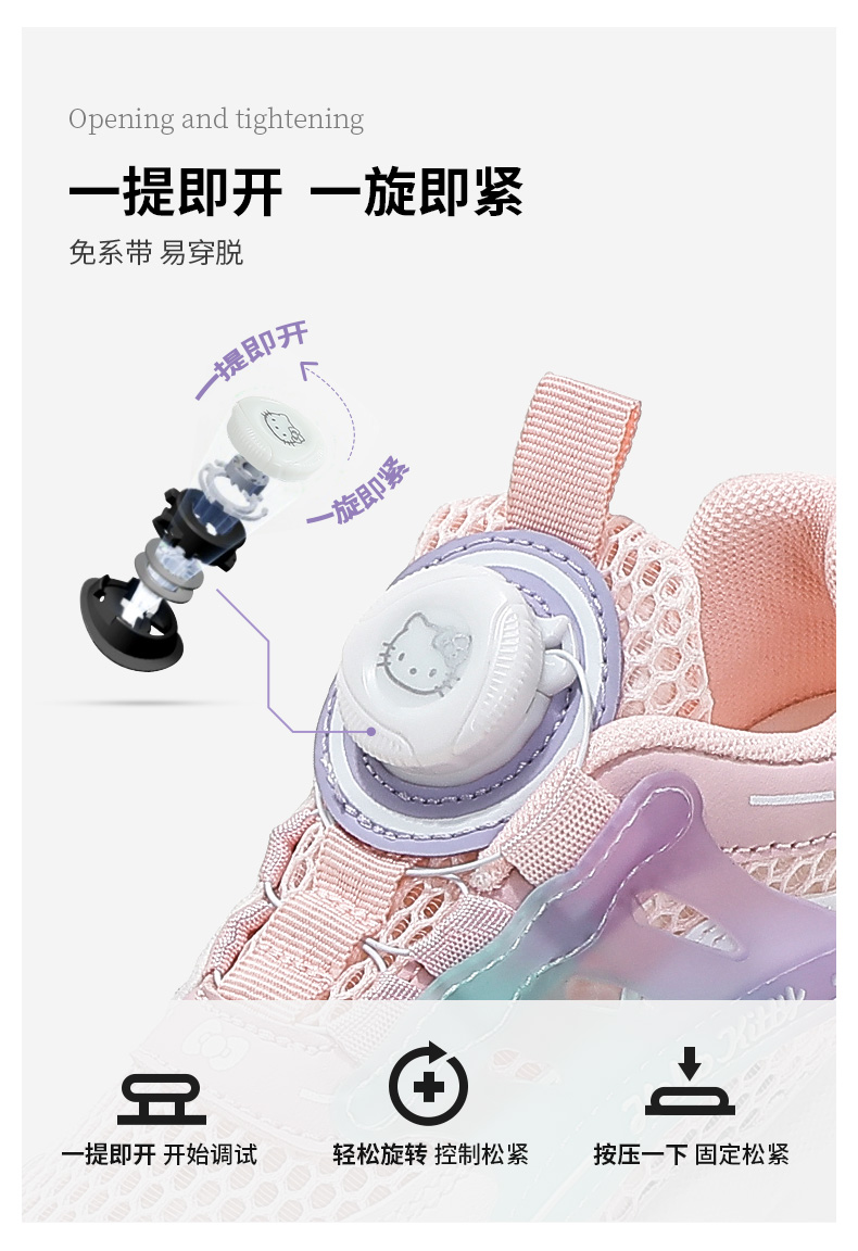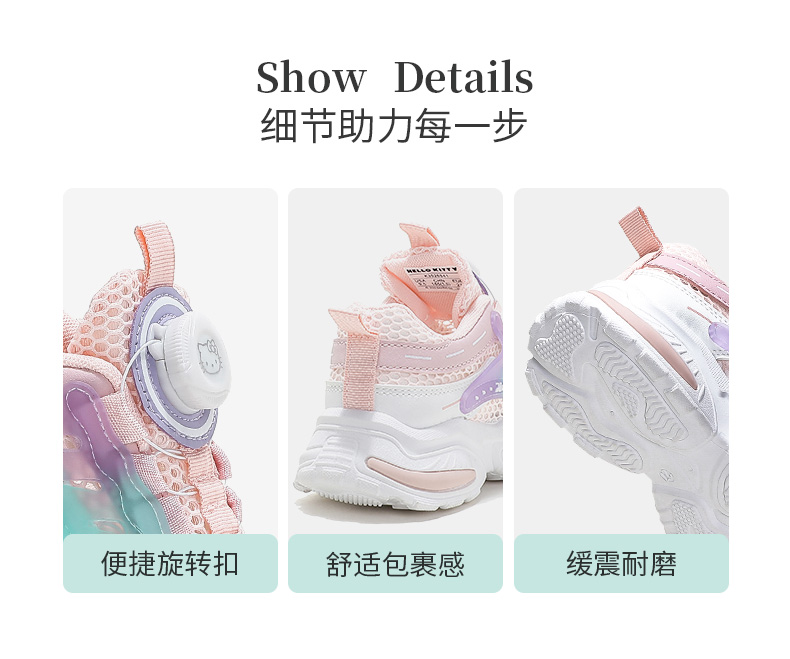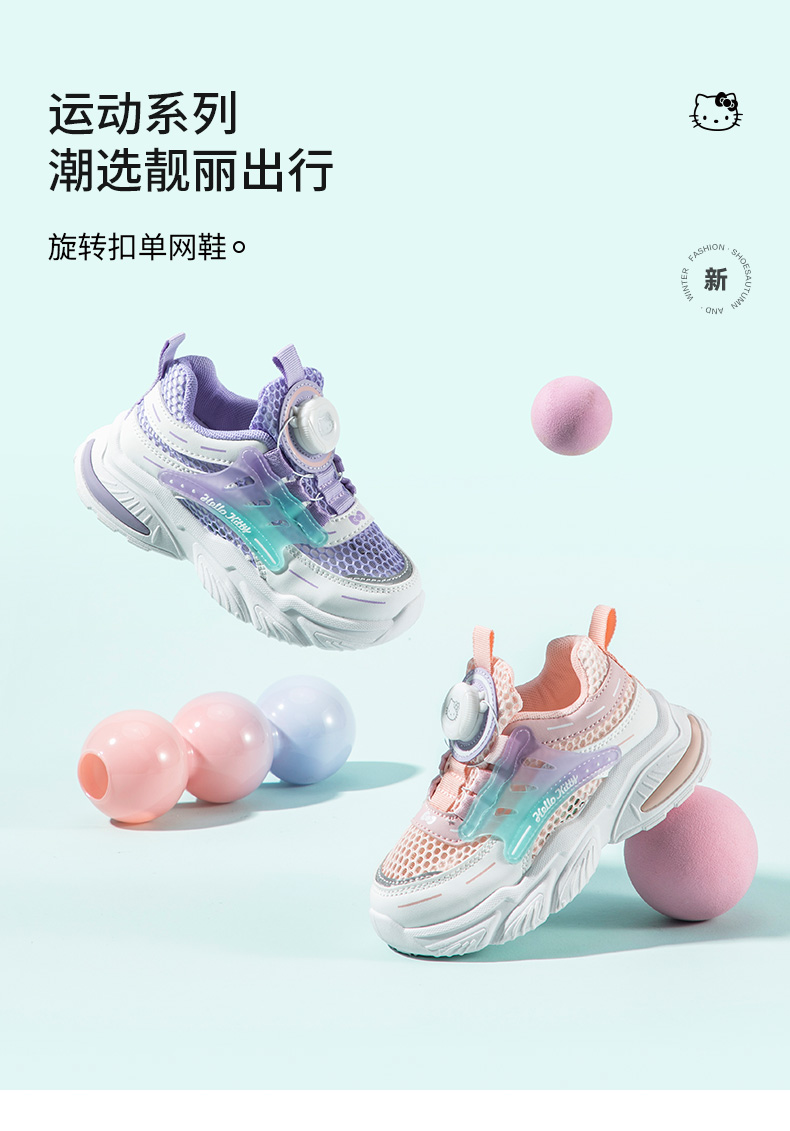 HelloKitty童鞋女童运动鞋夏季新款单网透气儿童透气旋转扣跑鞋 K3526841
