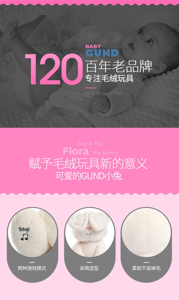 (超值)美国BABY GUND 害羞小兔子菲比躲猫猫 安抚玩具