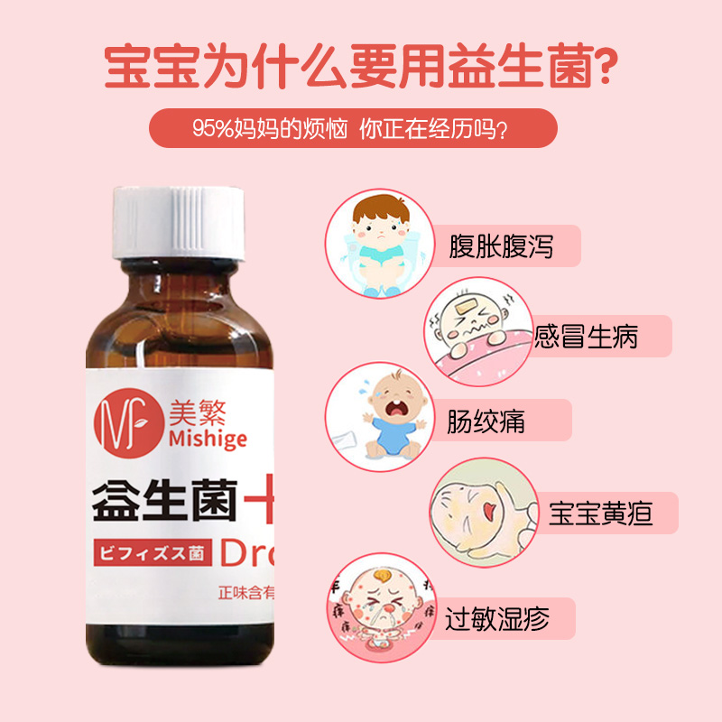 美繁Mishige益生菌滴剂宝宝儿童夜闹吐奶肠胀气Bb-12动物滴剂 10ml/瓶(不含防腐剂)