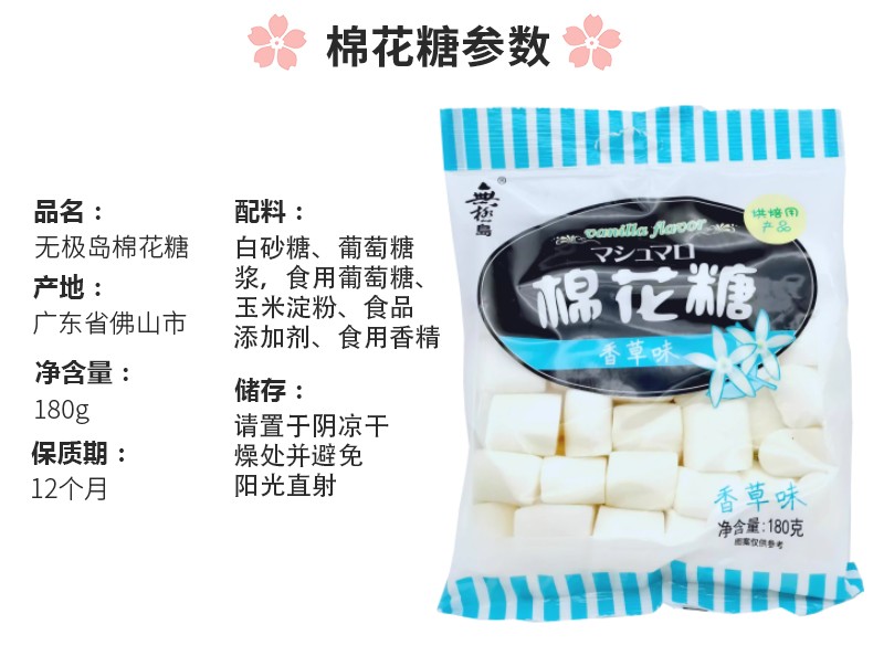 无极岛棉花糖 咖啡伴侣 180g/袋 30袋/箱两种规格可选 香草味 牛轧糖雪花酥原料