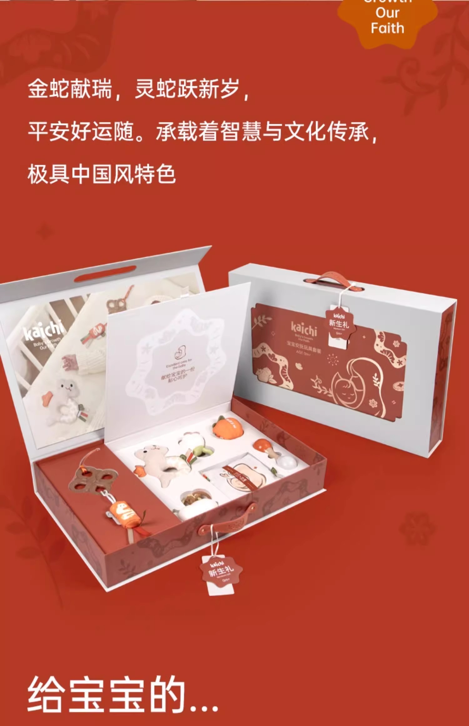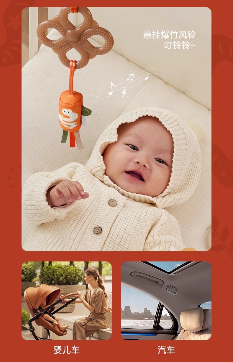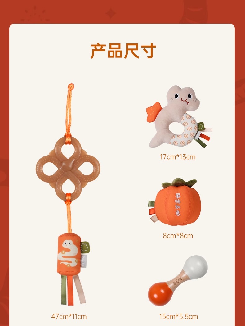 凯驰新生婴儿满月见面礼可咬牙胶床摇铃百天宝宝安抚玩具蛇年礼盒