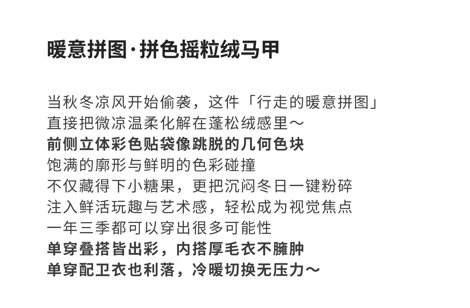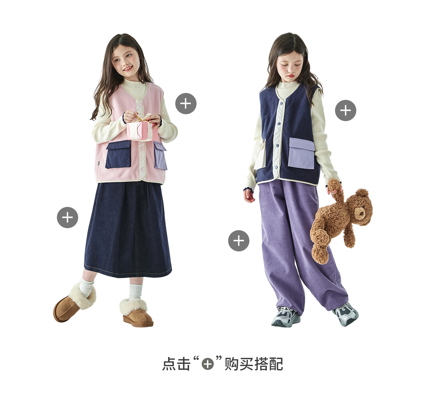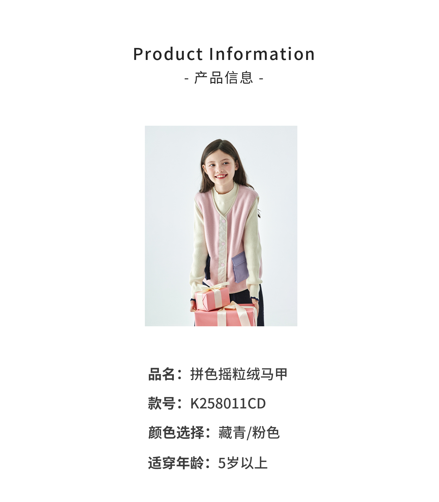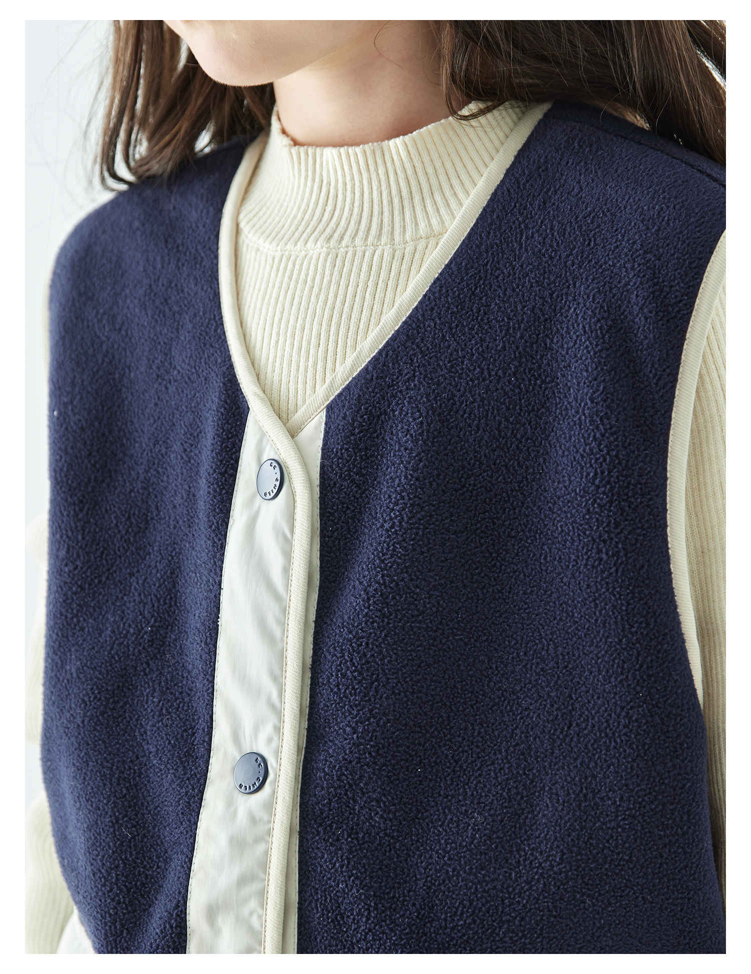 棵初25年秋冬季新款亲子中大女童拼色摇粒绒马甲撞色抗静电夹克
