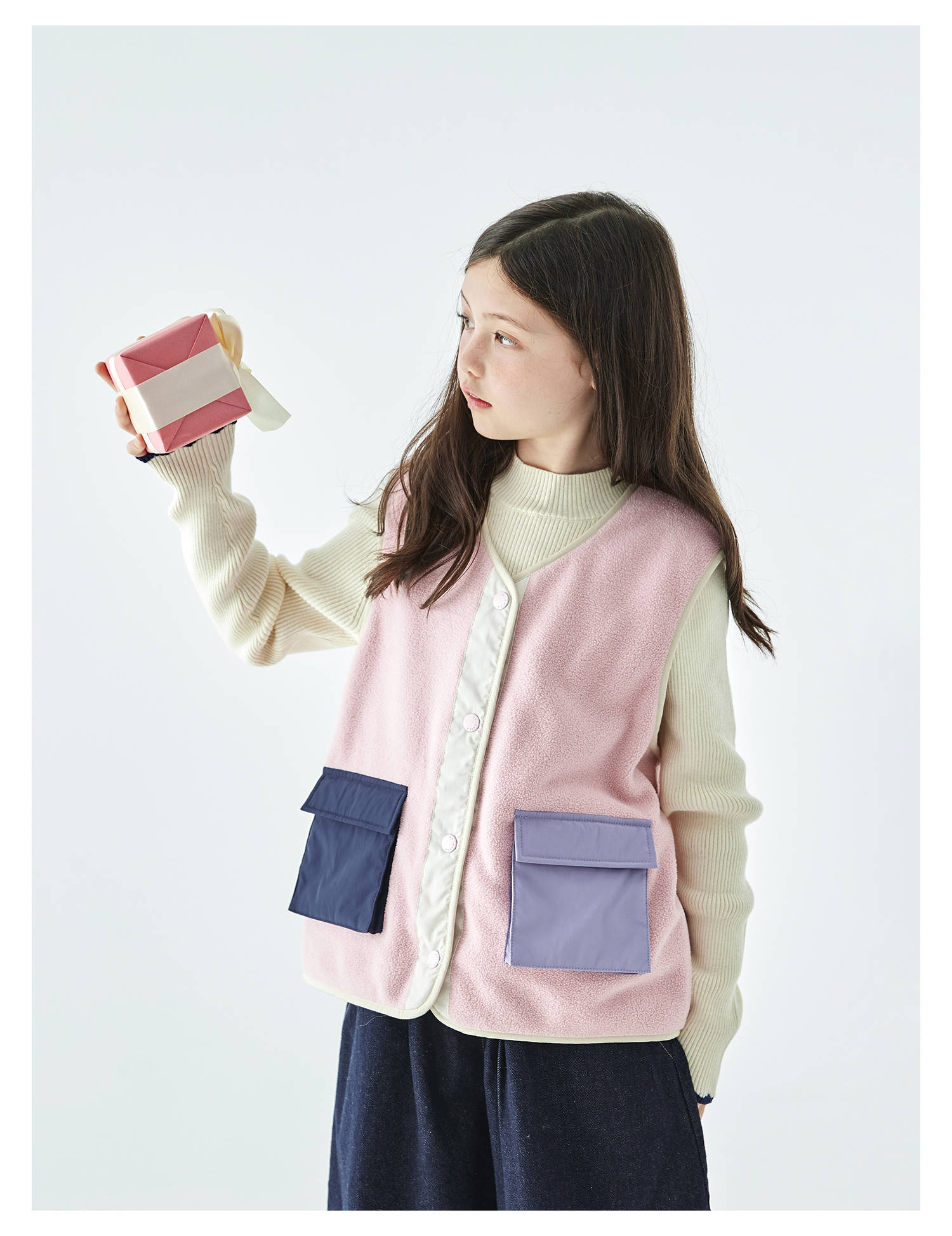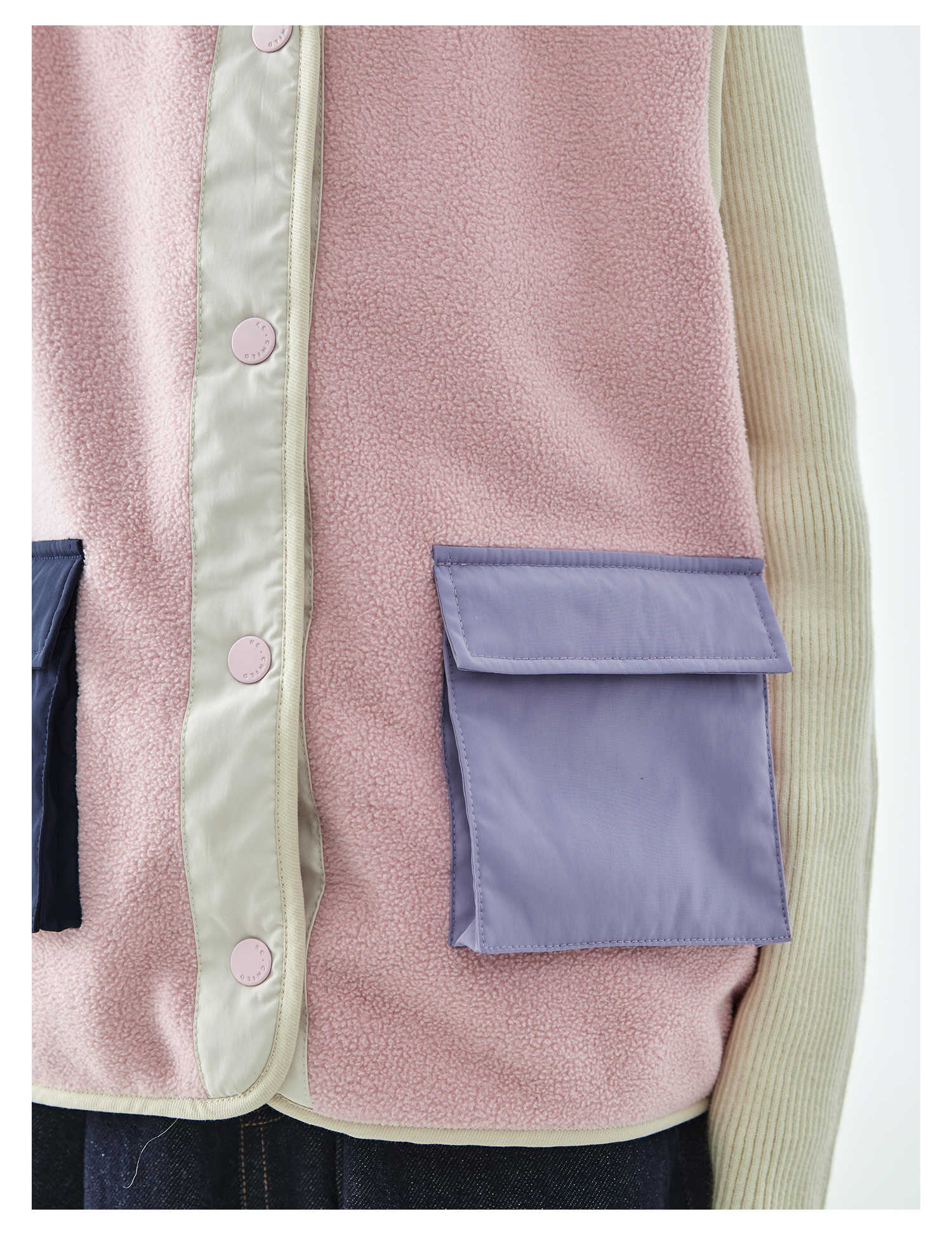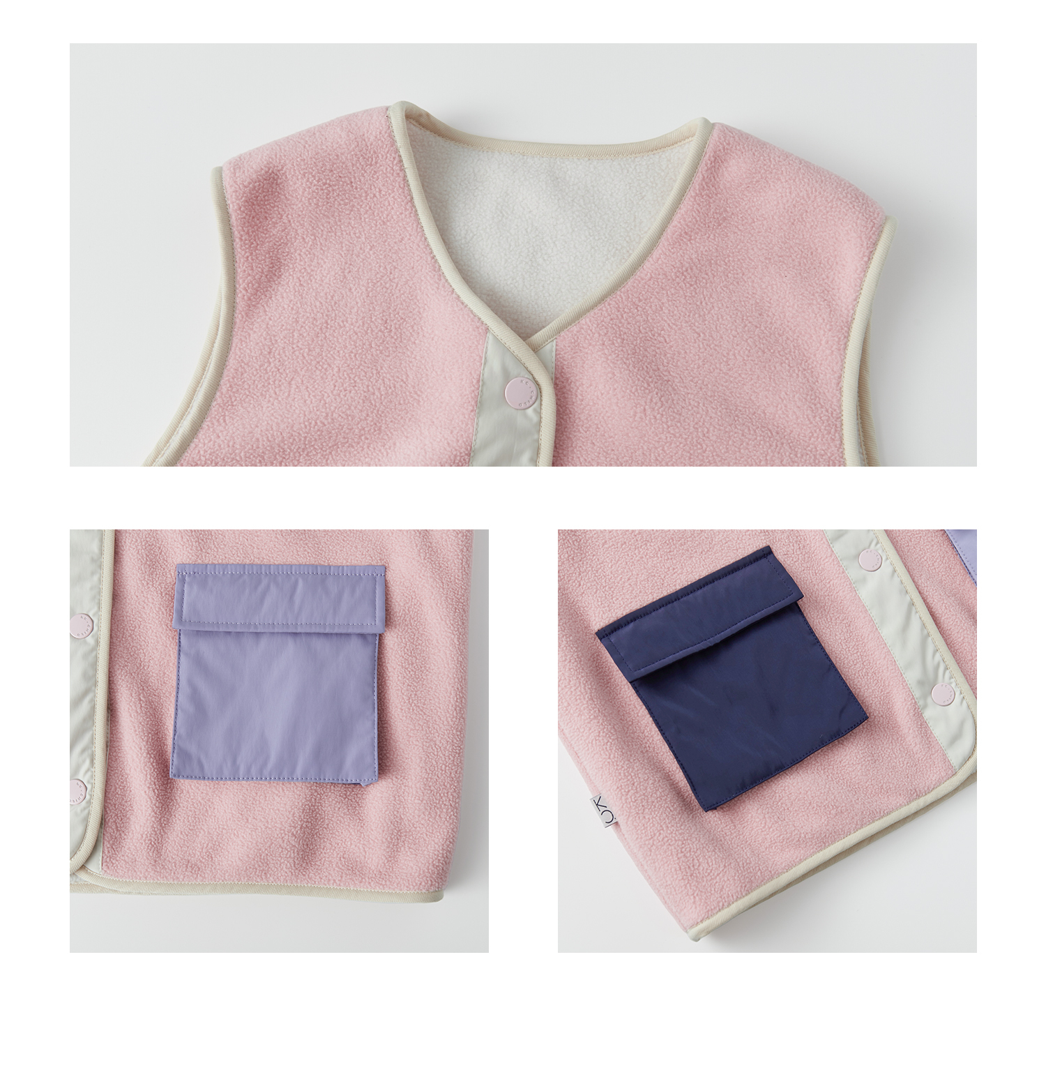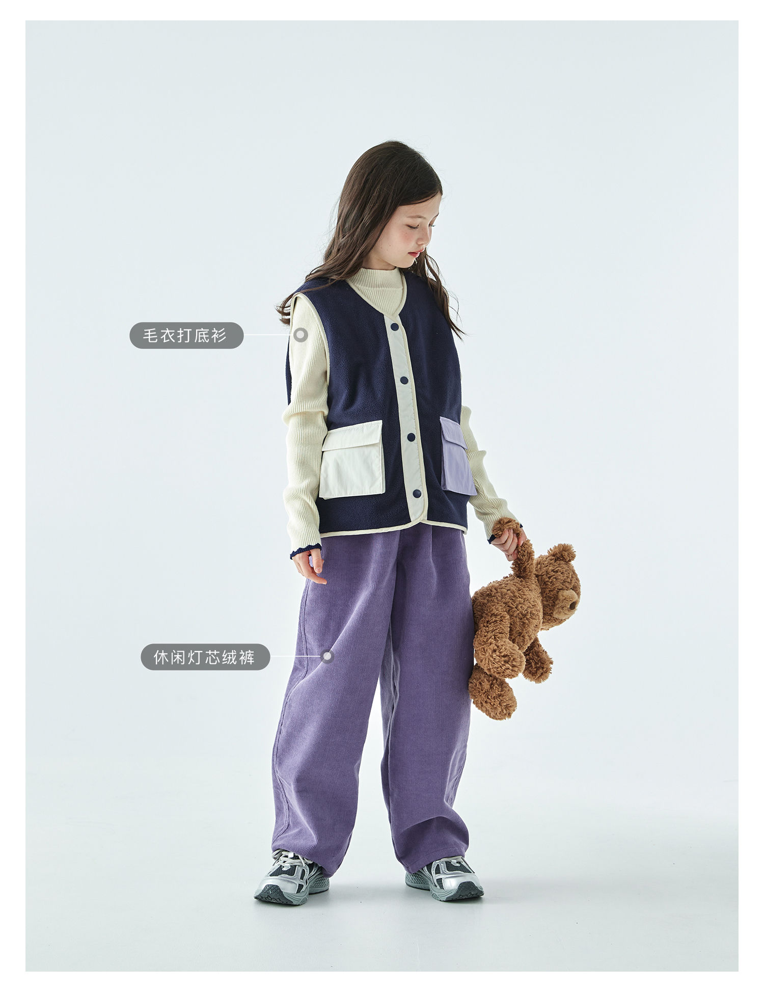 棵初25年秋冬季新款亲子中大女童拼色摇粒绒马甲撞色抗静电夹克