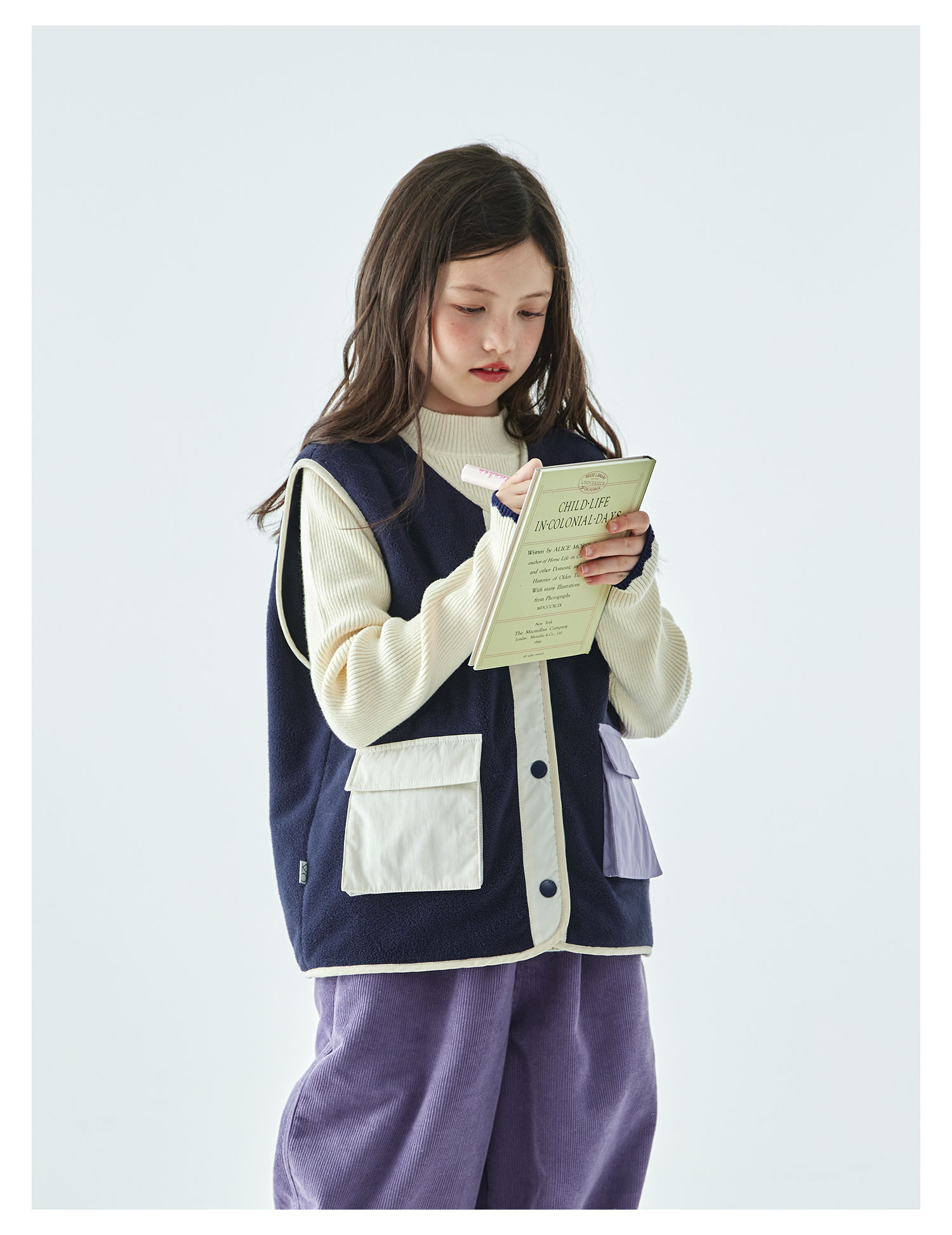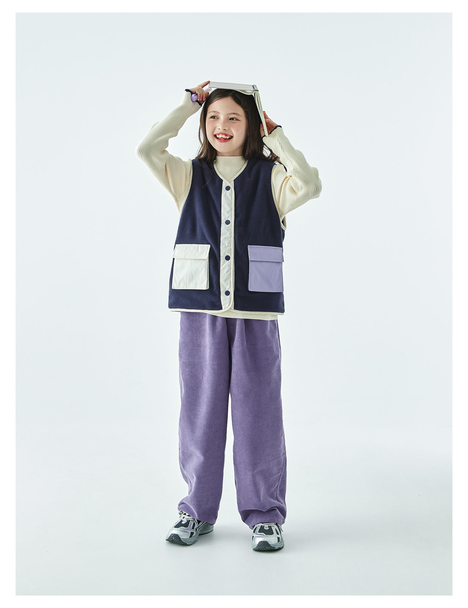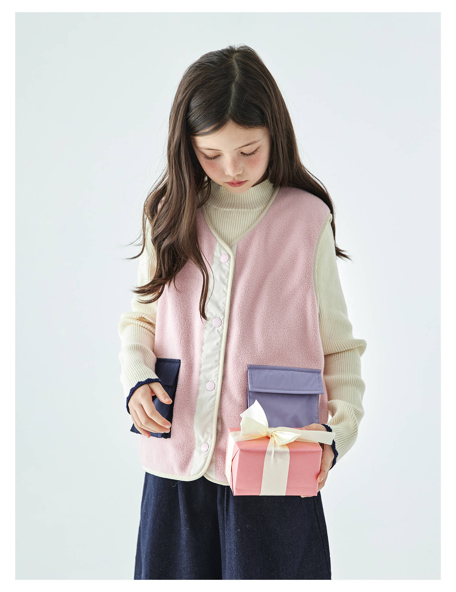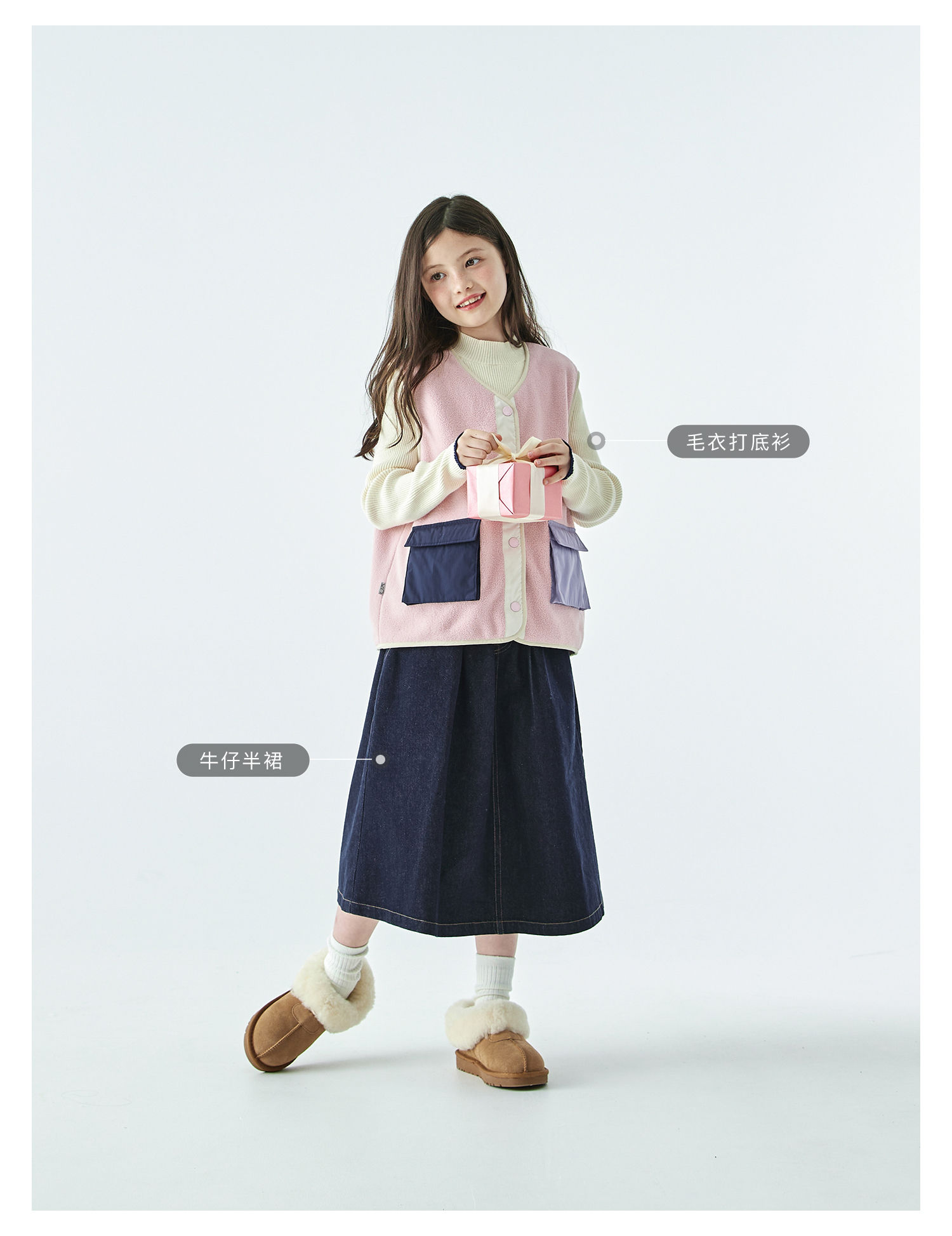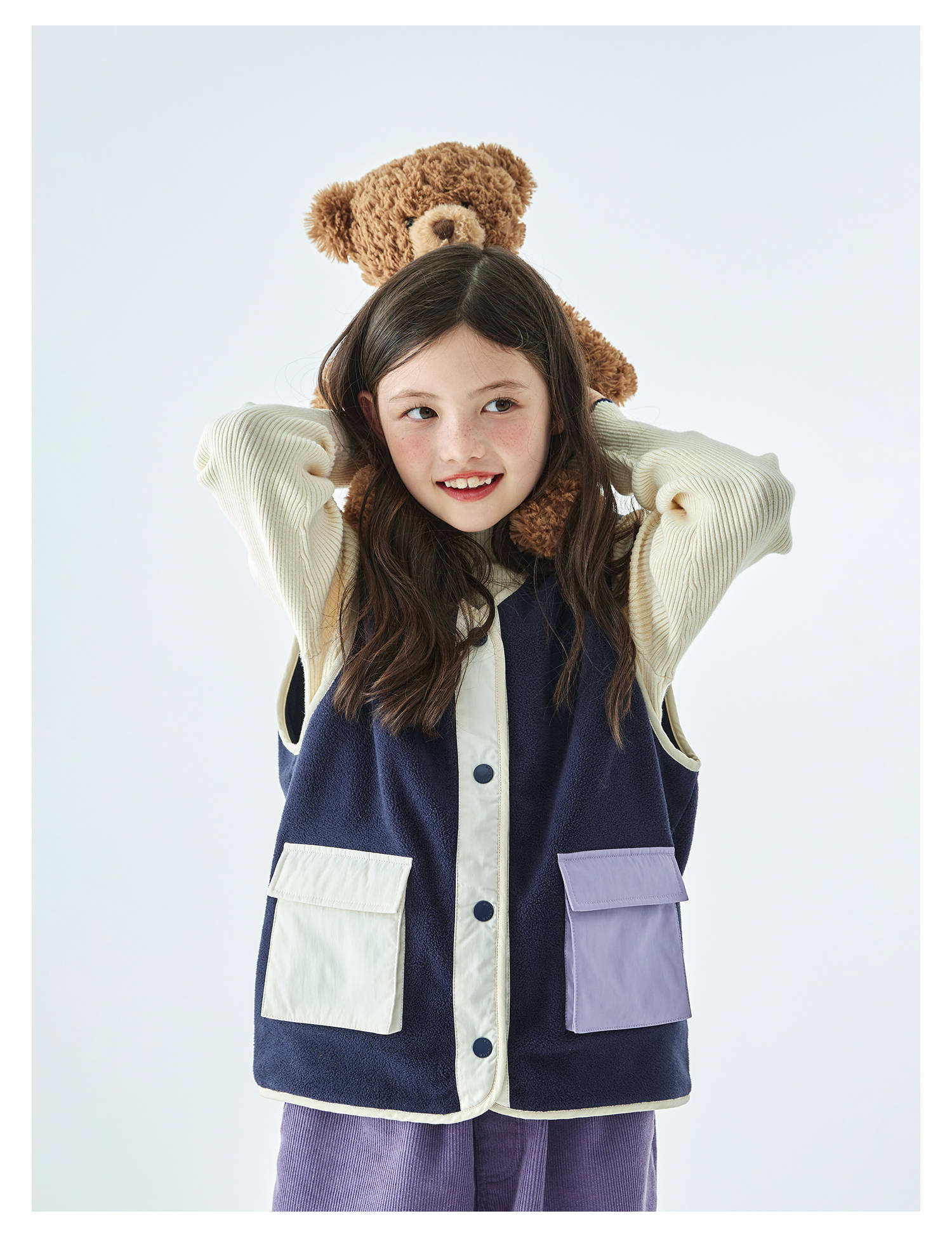 棵初25年秋冬季新款亲子中大女童拼色摇粒绒马甲撞色抗静电夹克