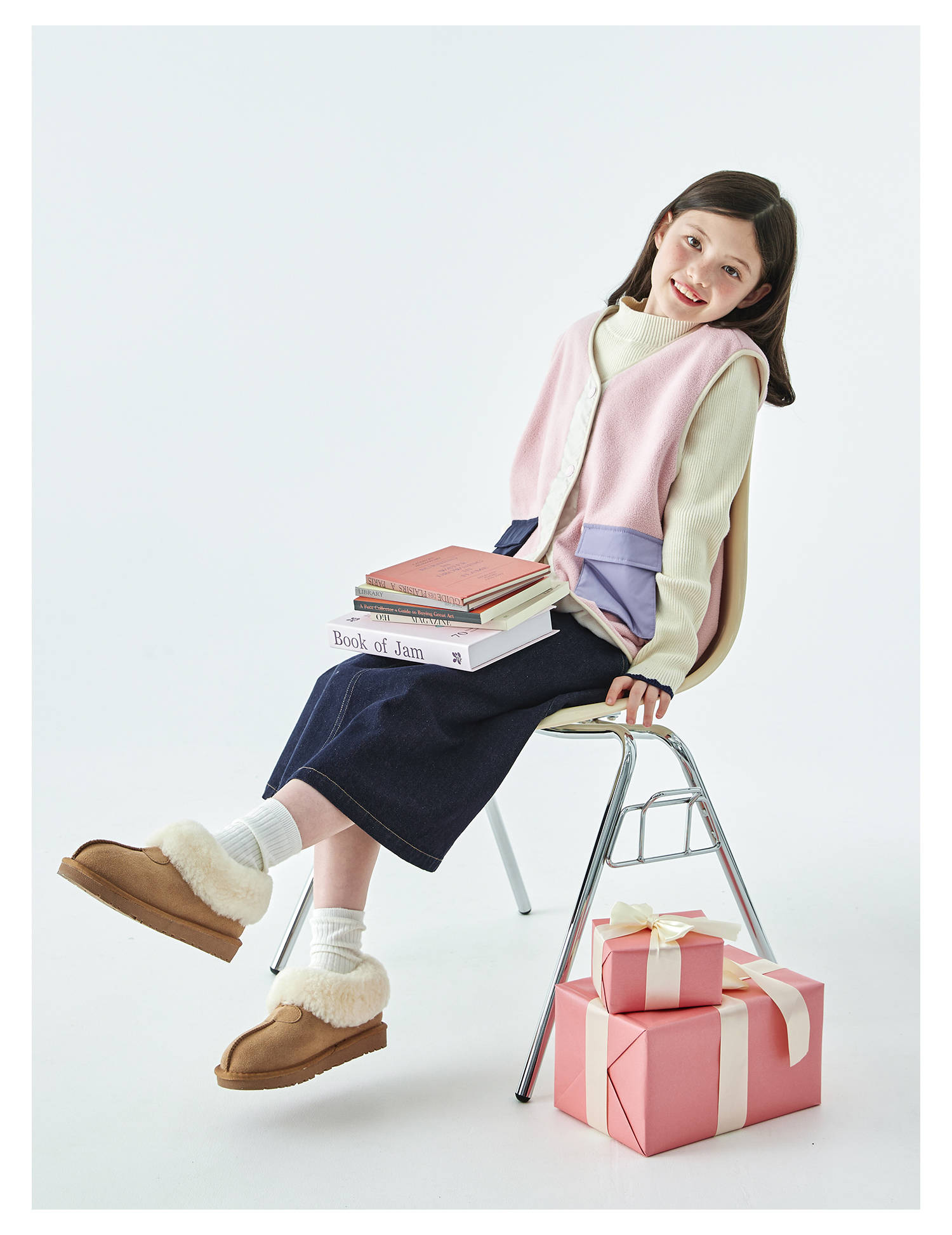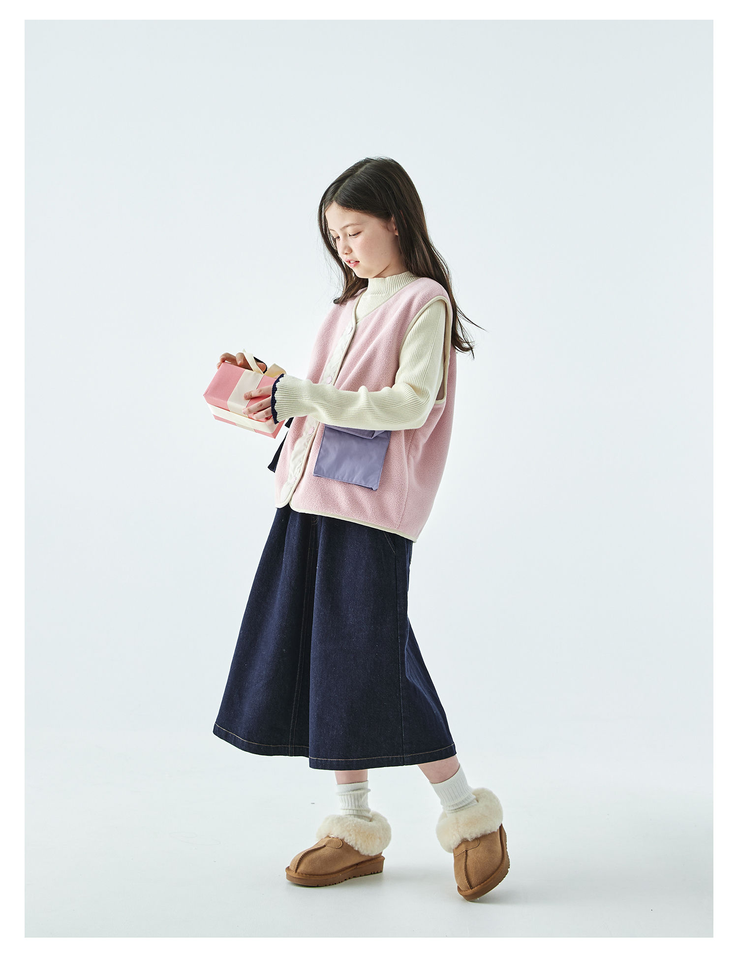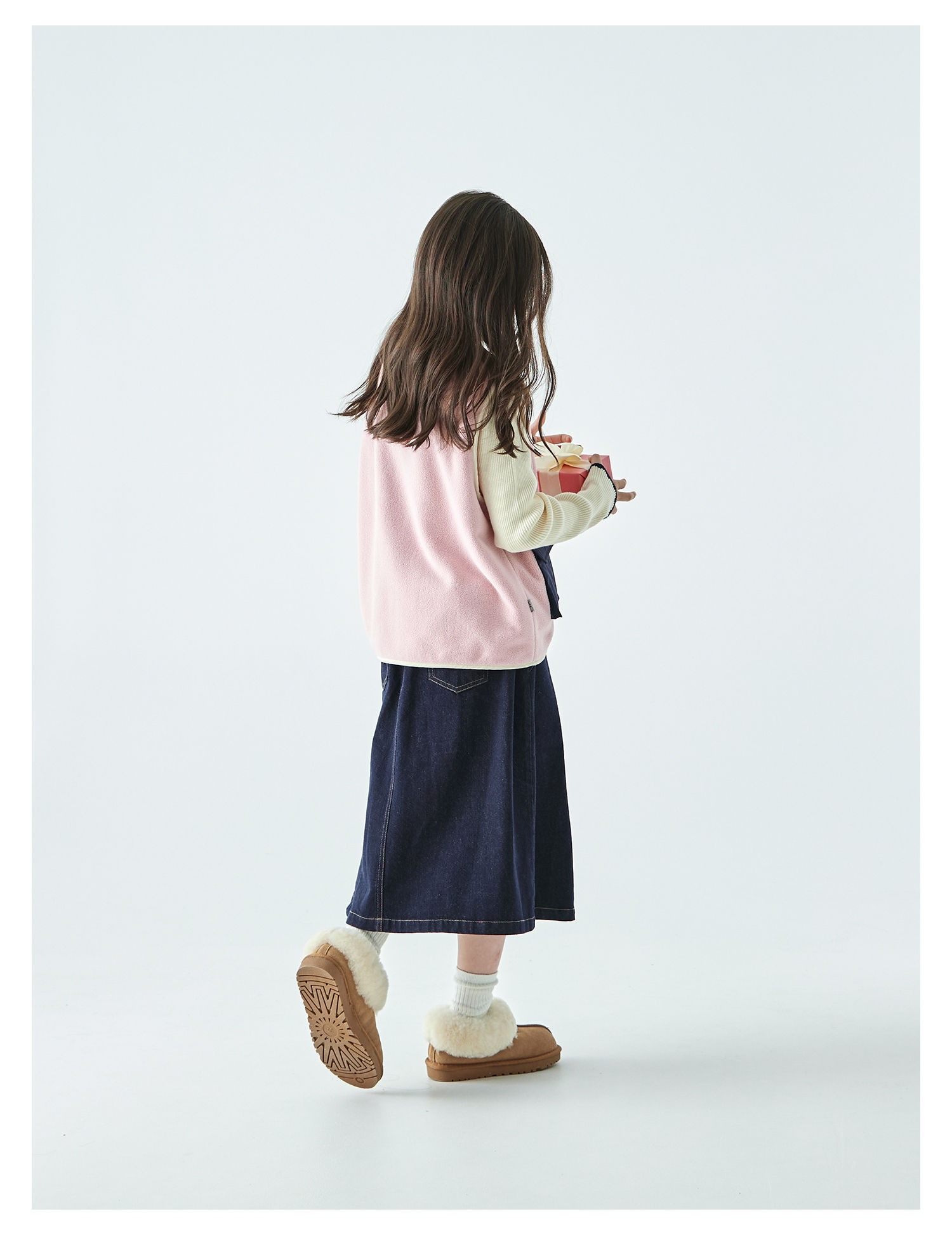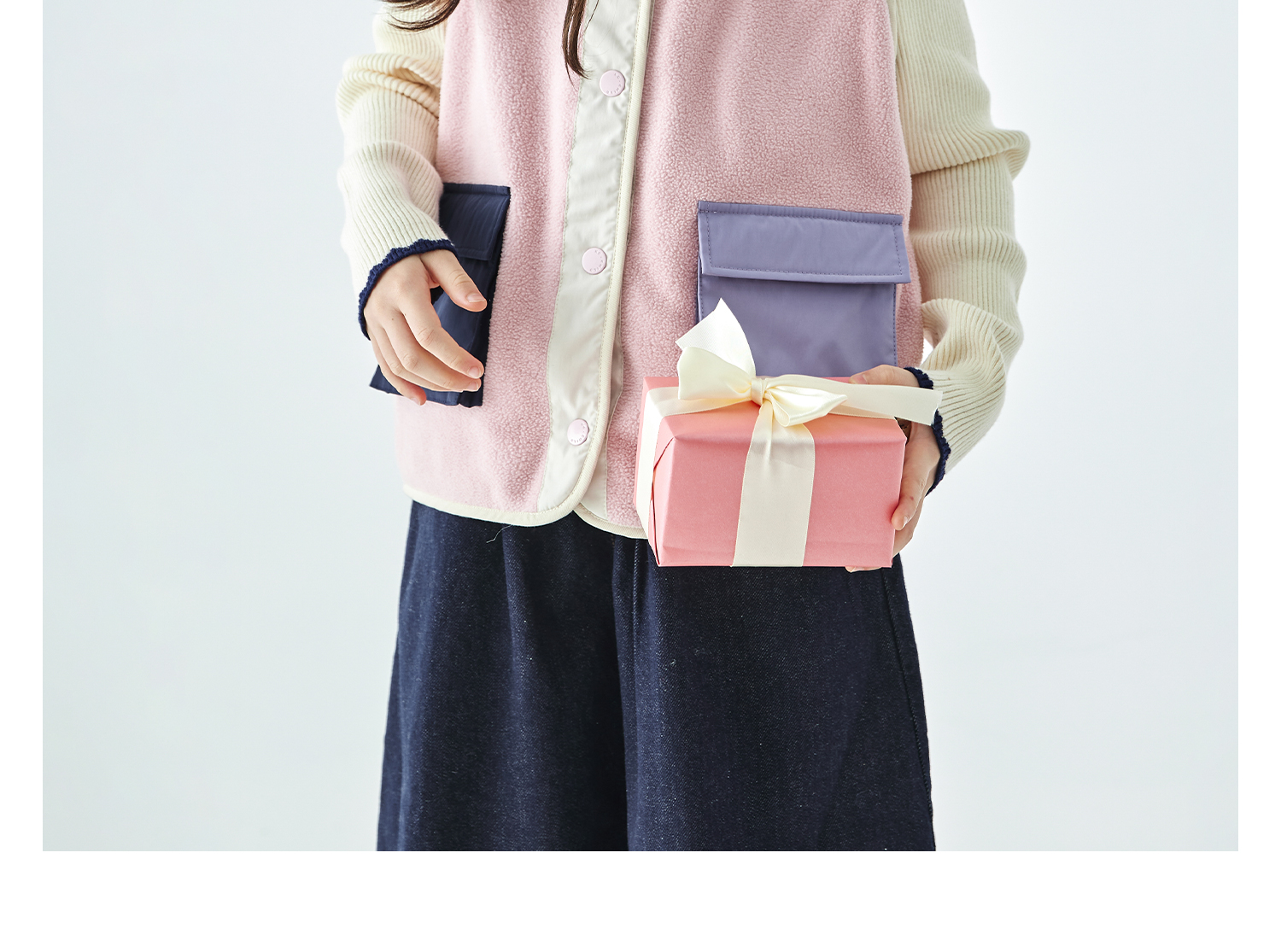 棵初25年秋冬季新款亲子中大女童拼色摇粒绒马甲撞色抗静电夹克