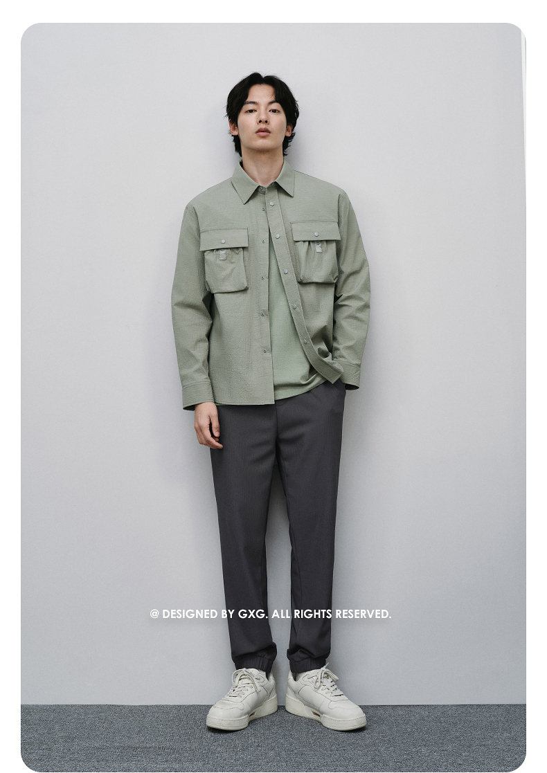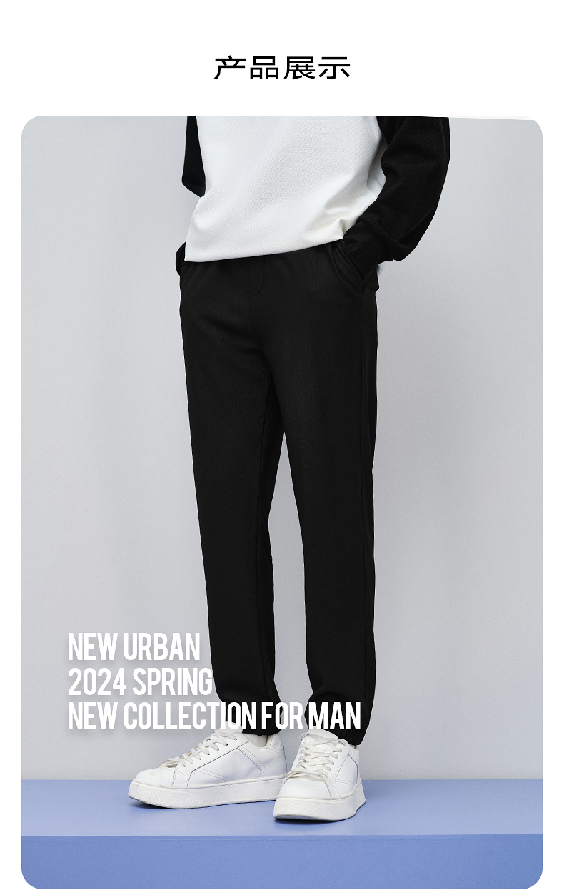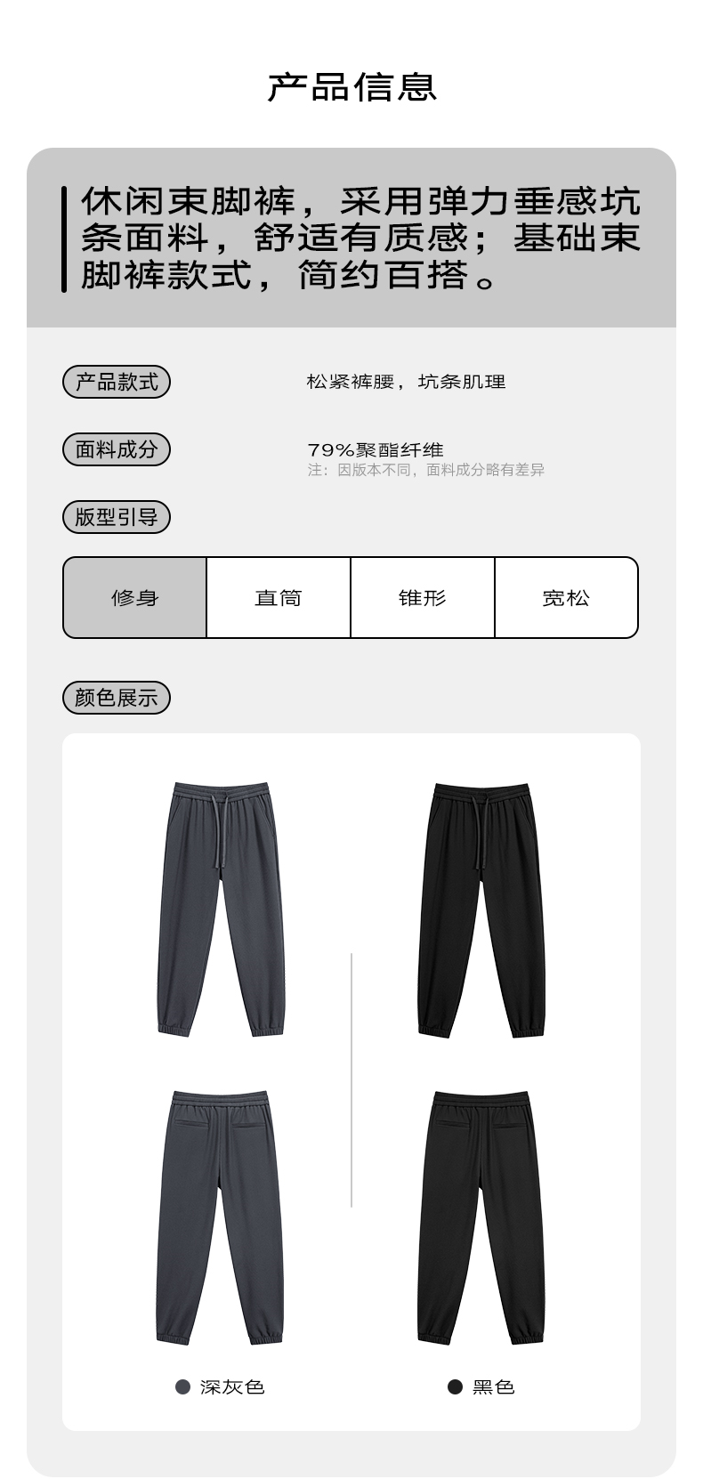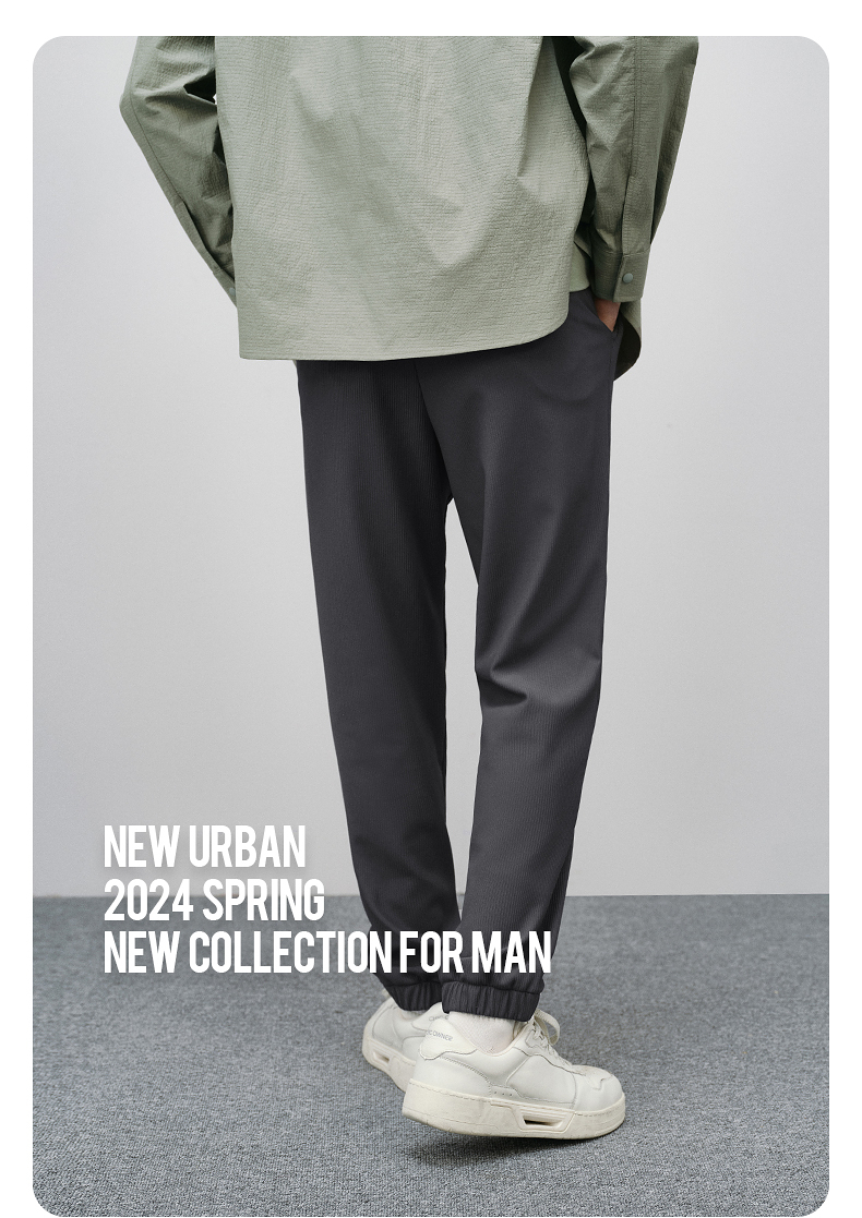 GXG男装 多色简约坑条面料弹力基础收口束脚针织长裤春季热卖