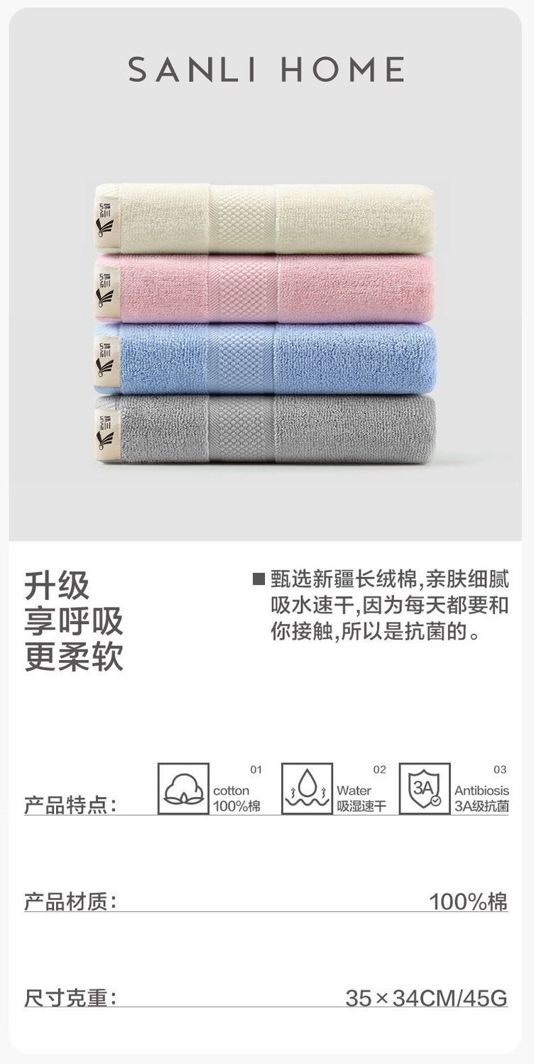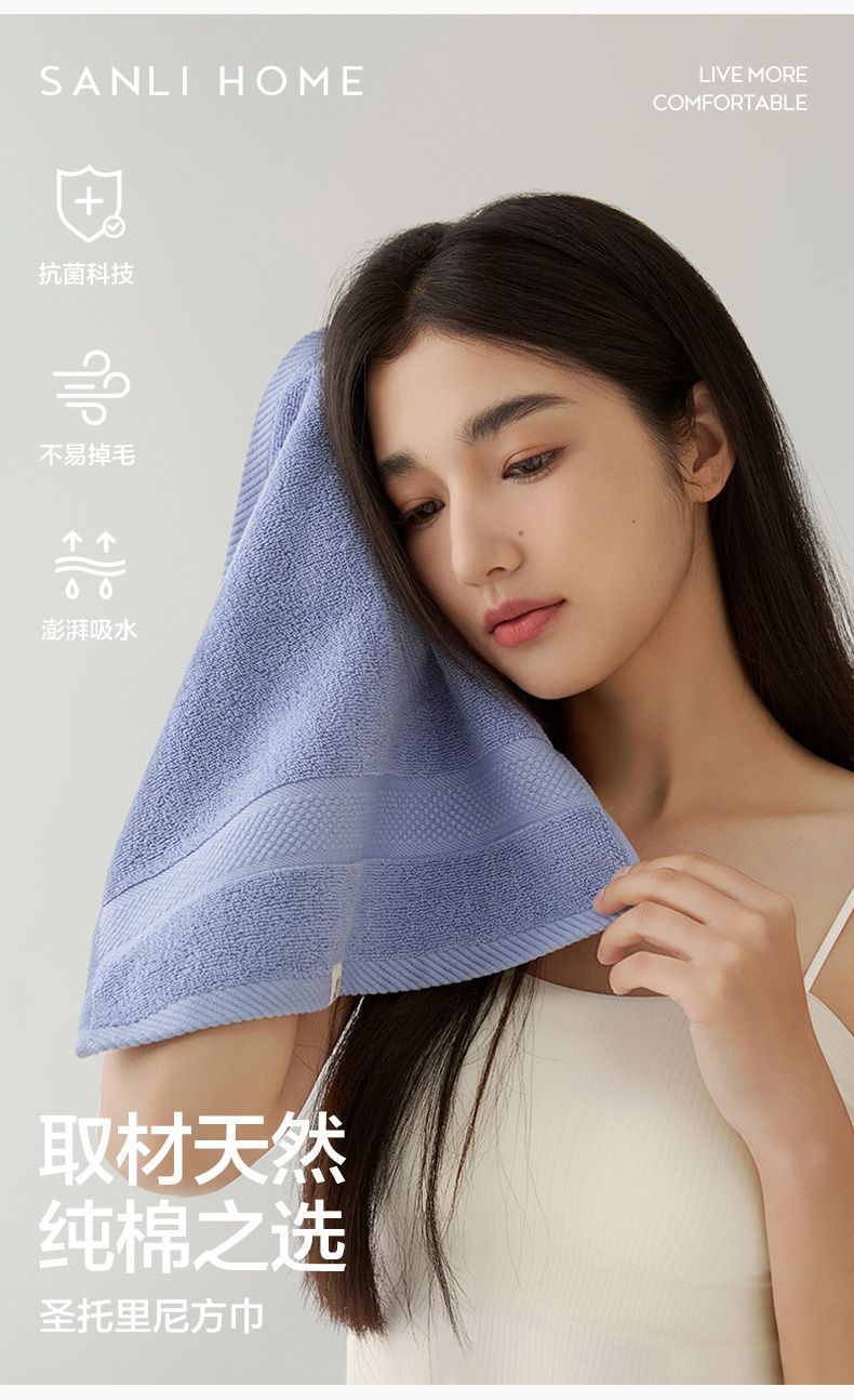三利洗脸巾 纯棉方巾a类抗菌成人洗脸家用全棉小毛巾吸水速干面巾3.182