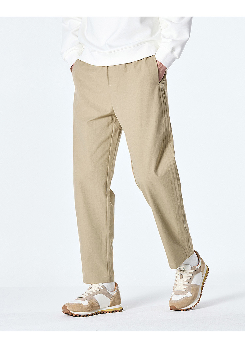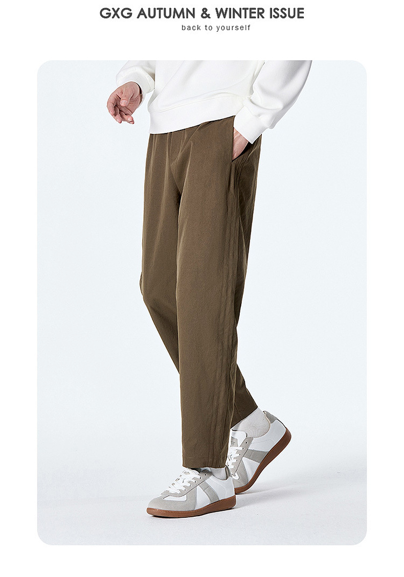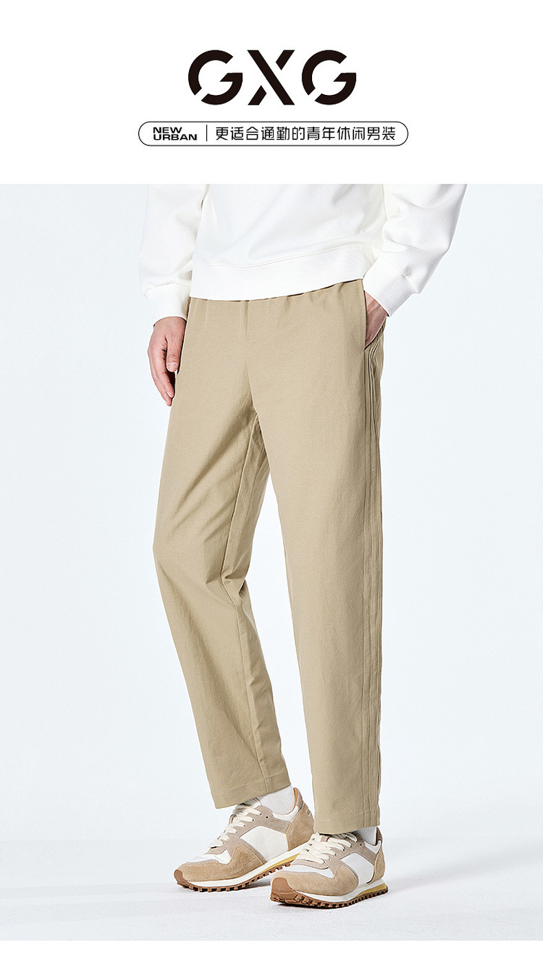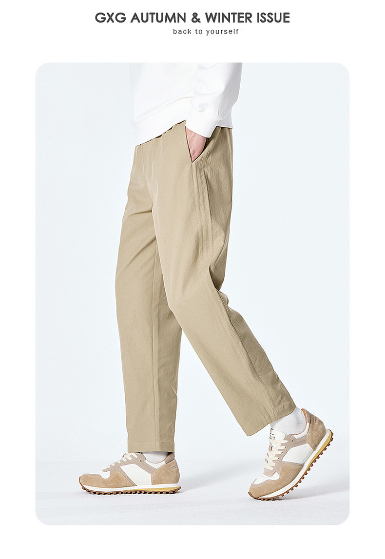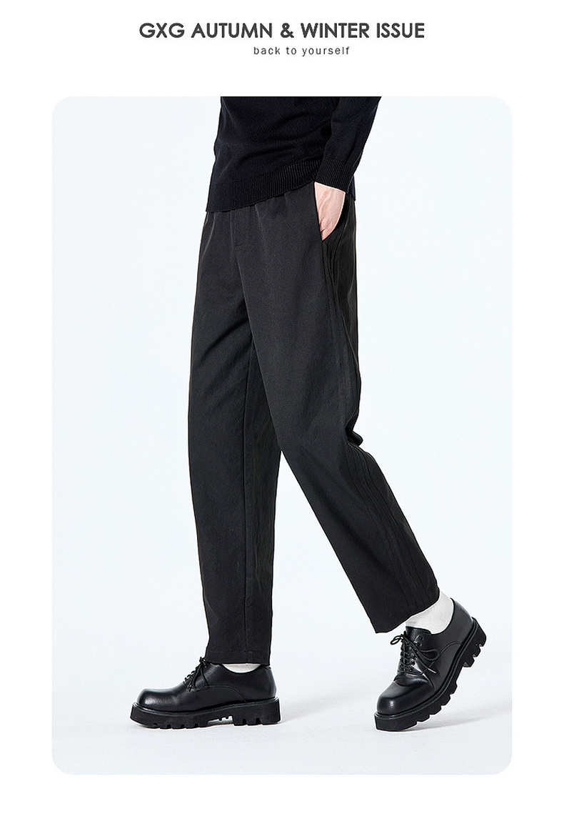 GXG男装秋季时尚简约纯色舒适松紧腰头直筒裤男式系绳休闲长裤K&C