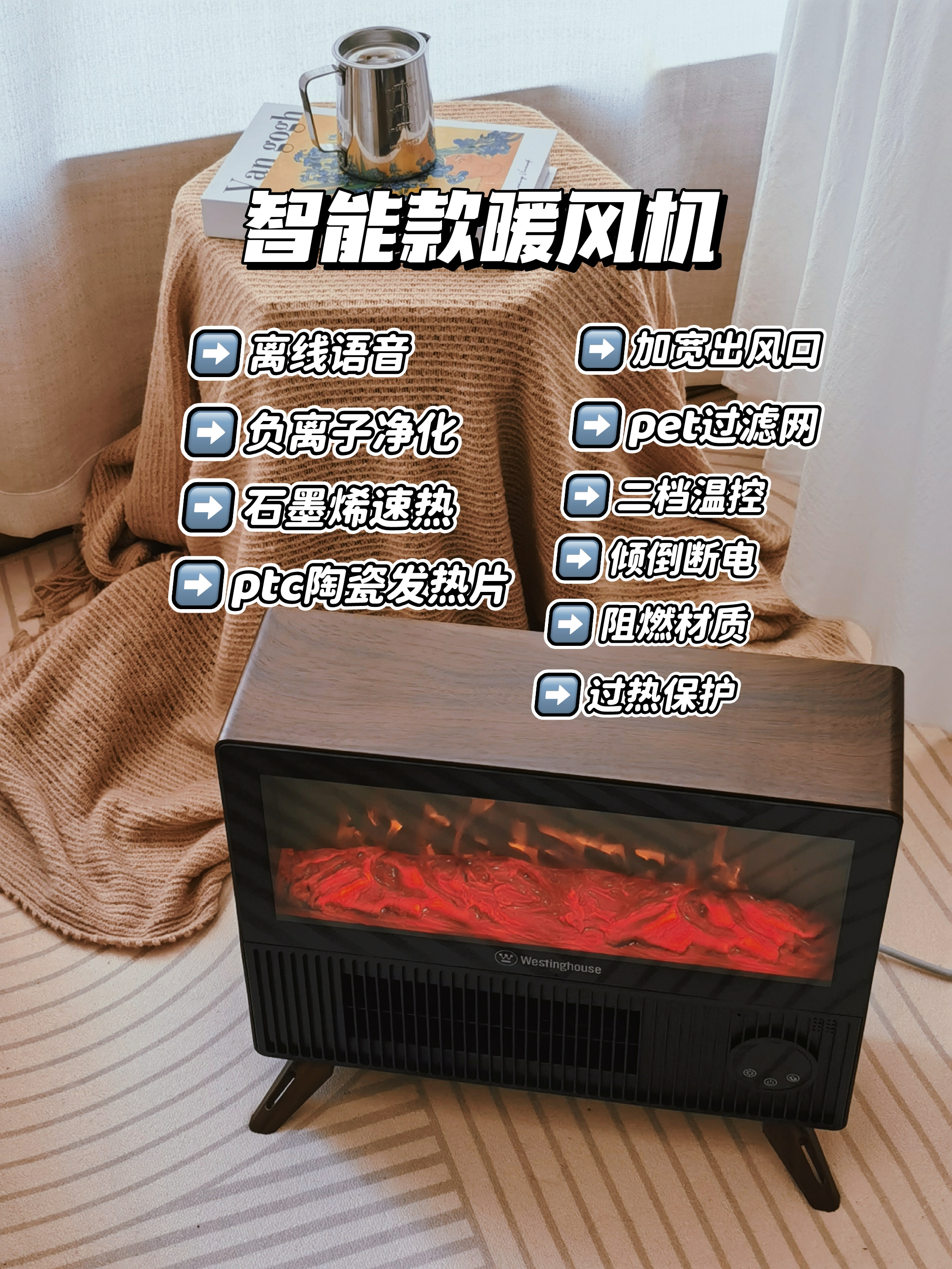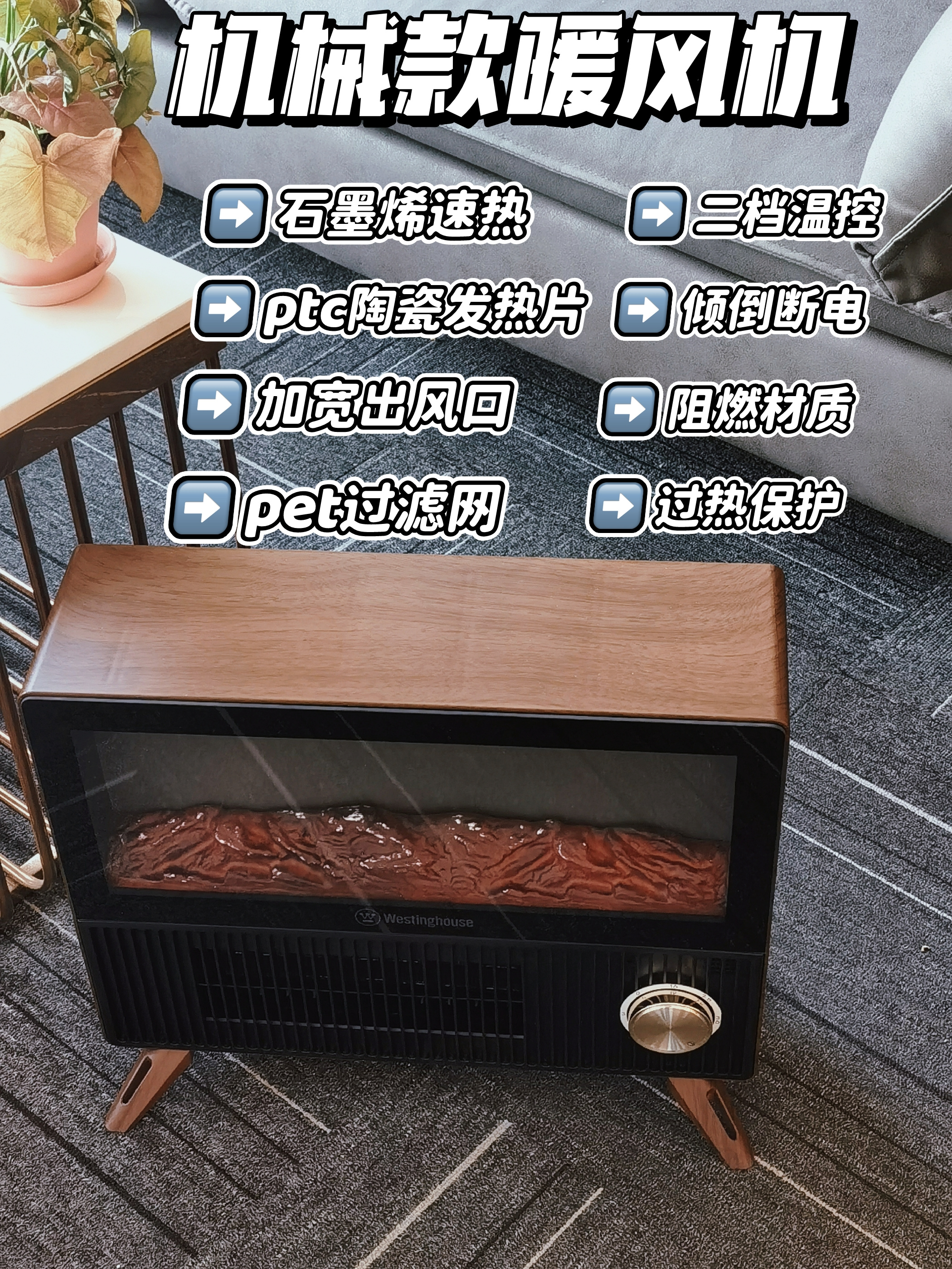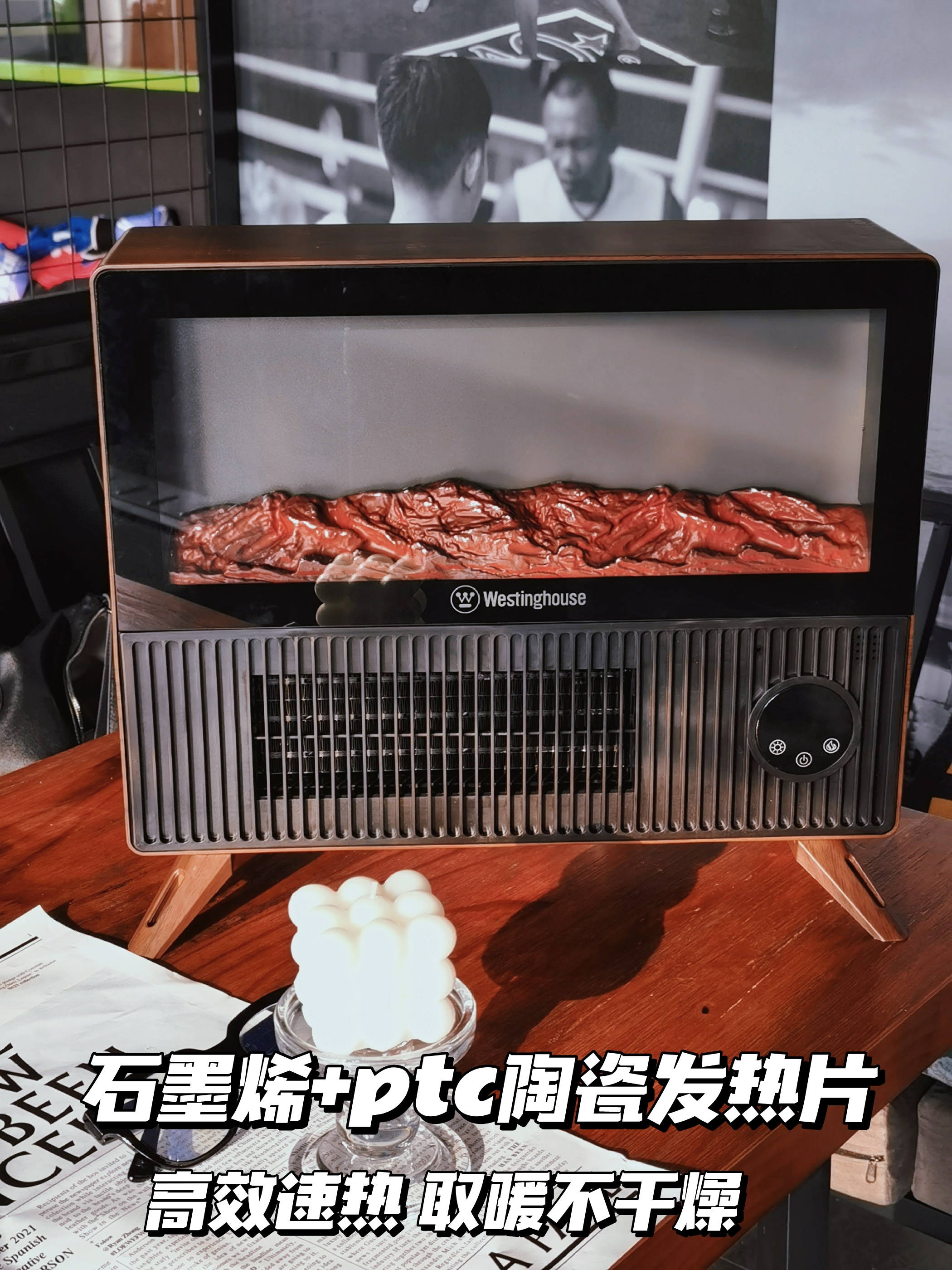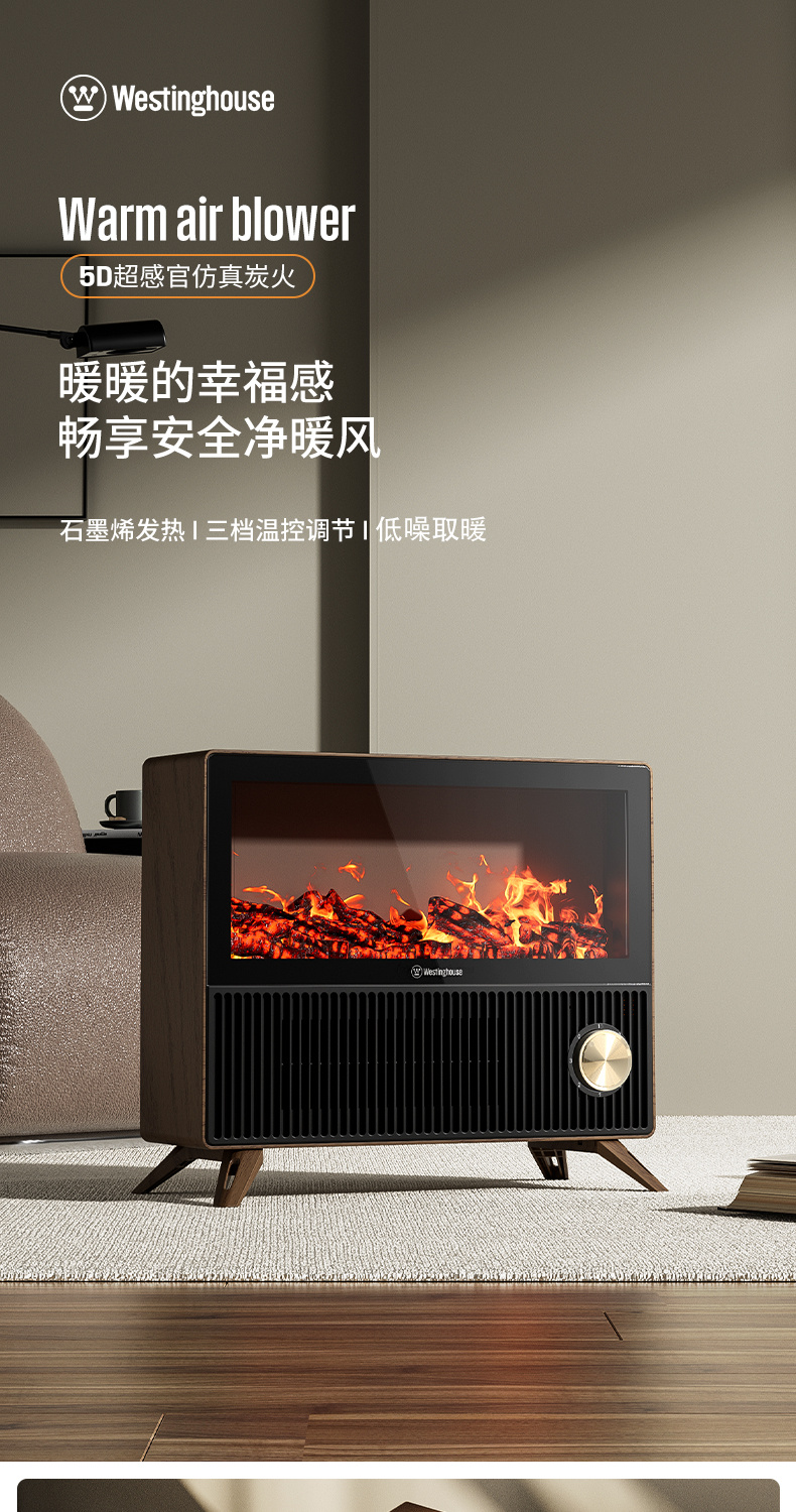 西屋(Westinghouse)石墨烯取暖器暖风机壁炉复古3D仿真炭火焰家用电暖器