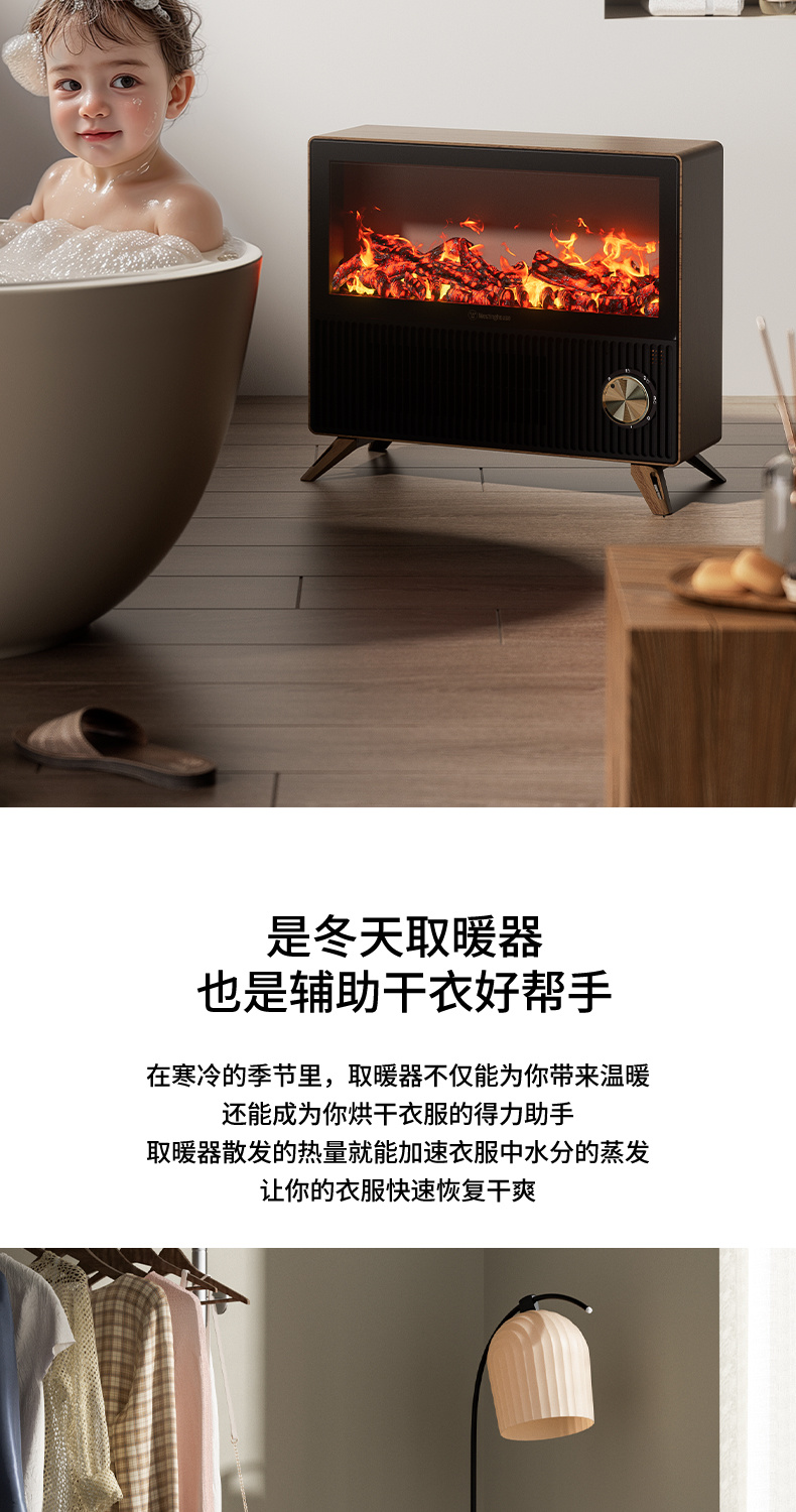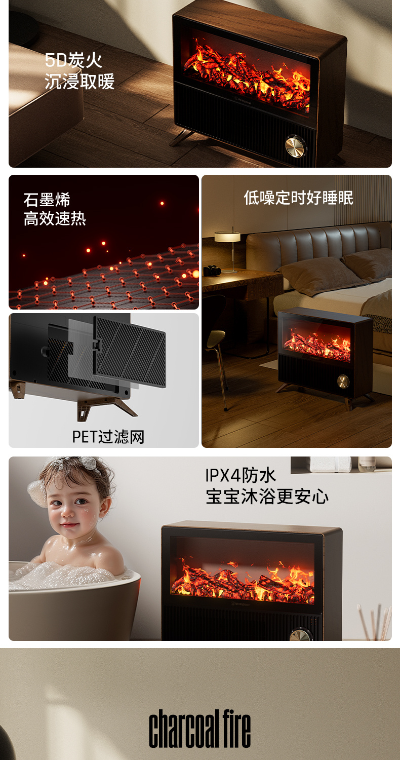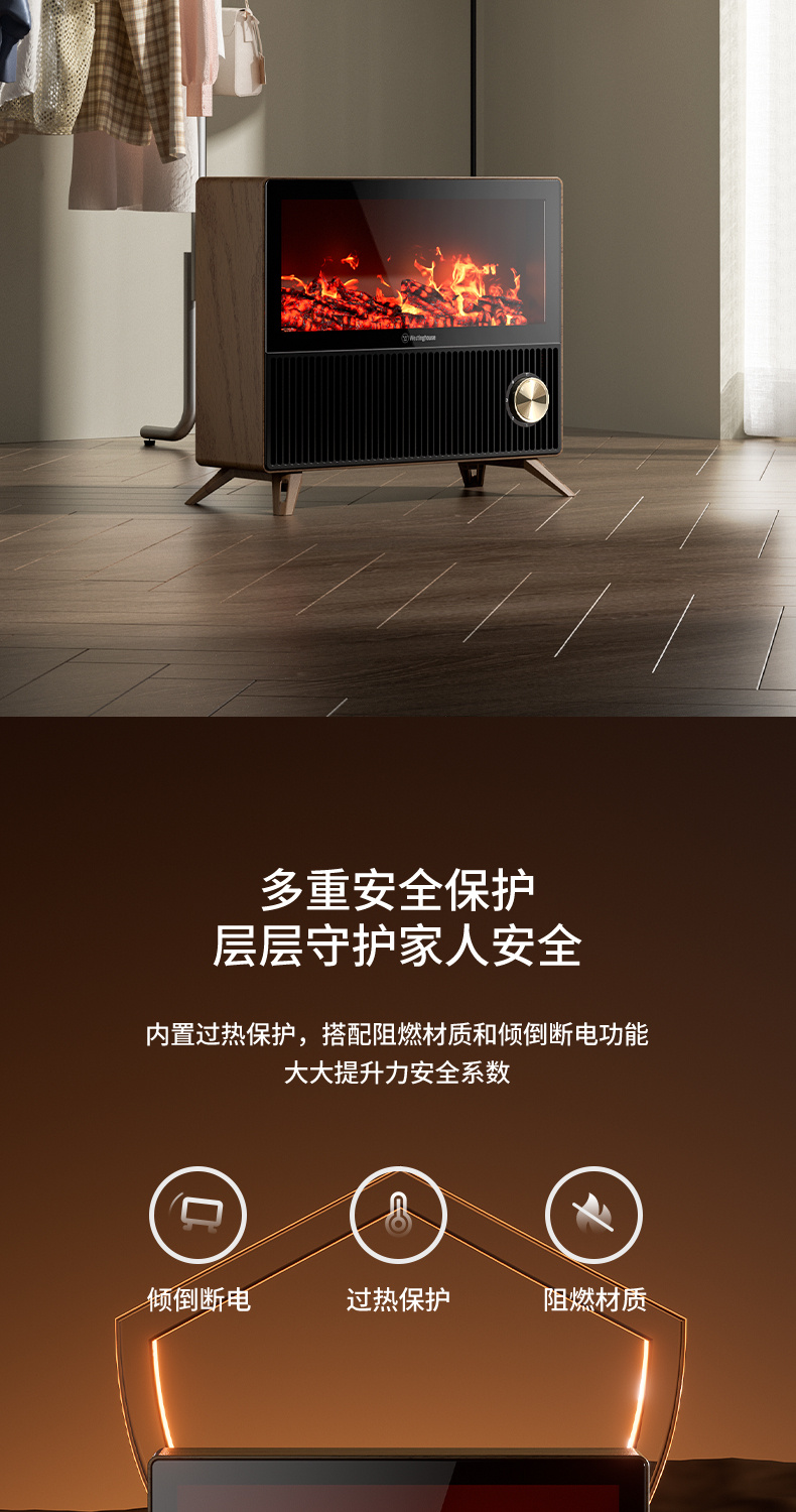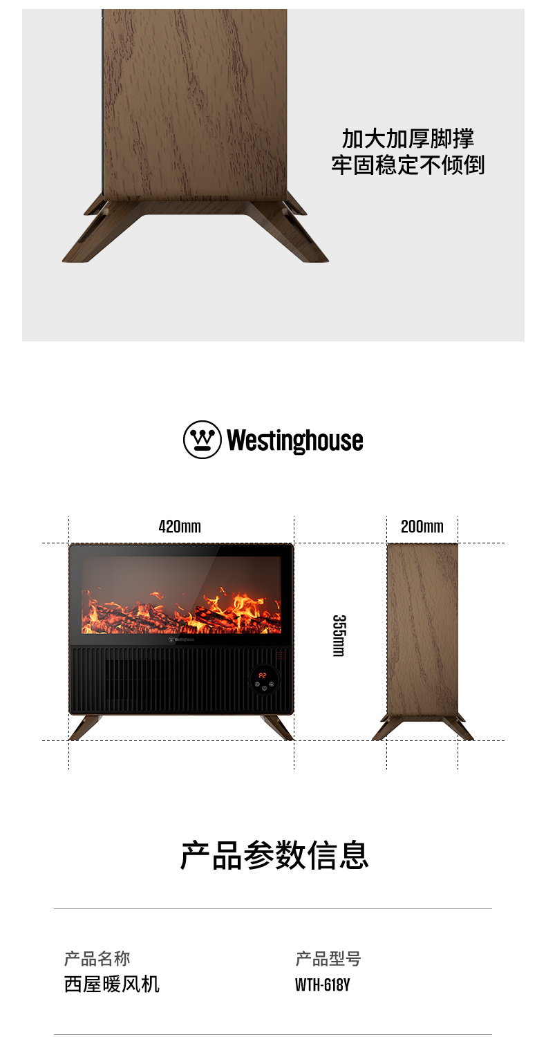 西屋(Westinghouse)石墨烯取暖器暖风机壁炉复古3D仿真炭火焰家用电暖器