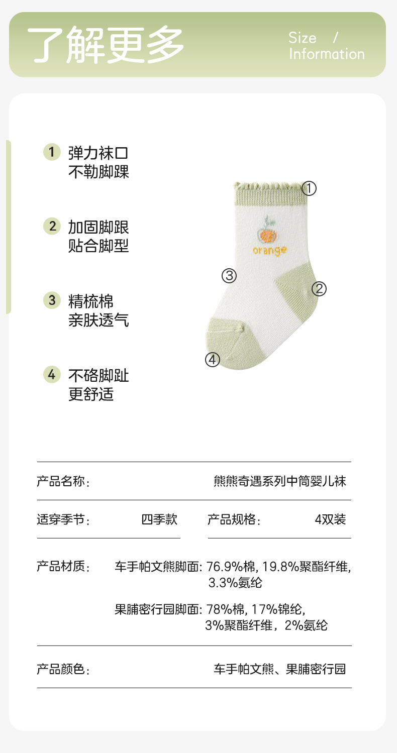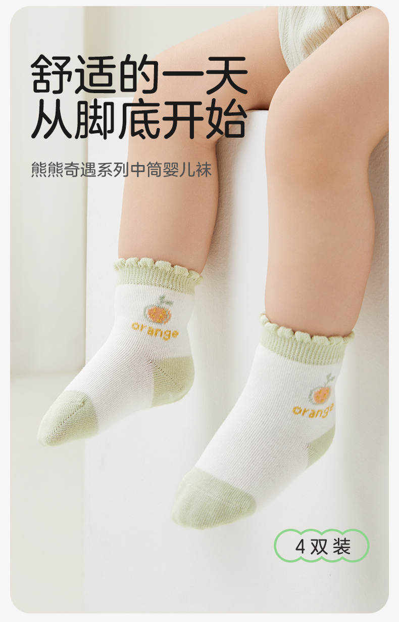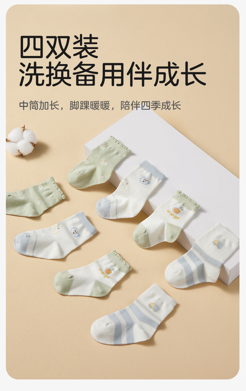 婴儿袜子春秋初生儿男女童宝宝中筒春季新生儿袜子4双