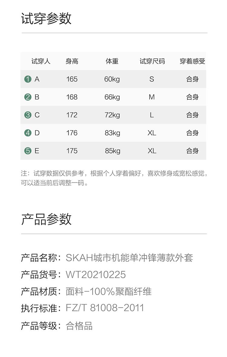 SKAH防风防泼水冲锋衣外套 符合亚洲人版型设计 男女同款