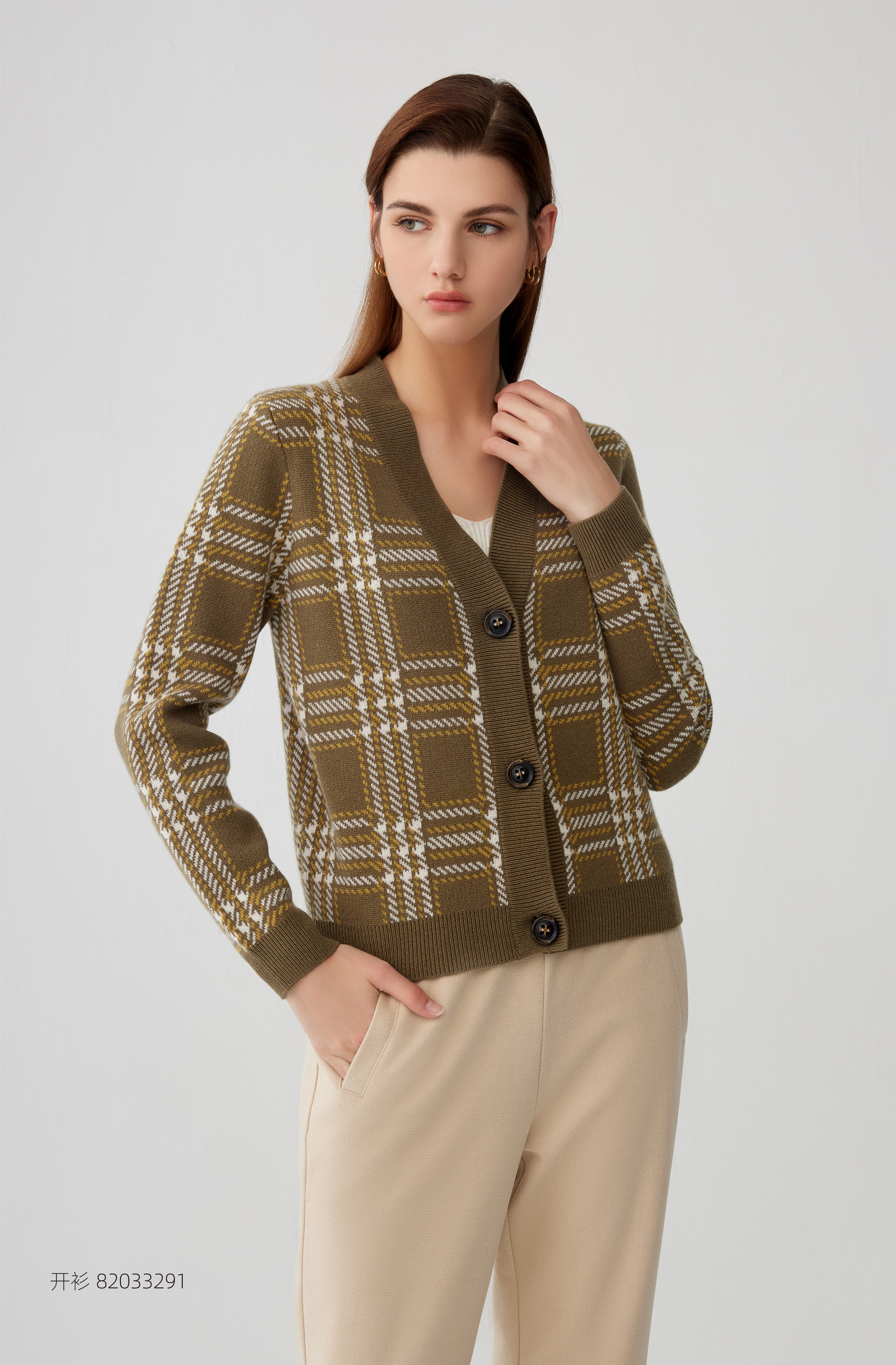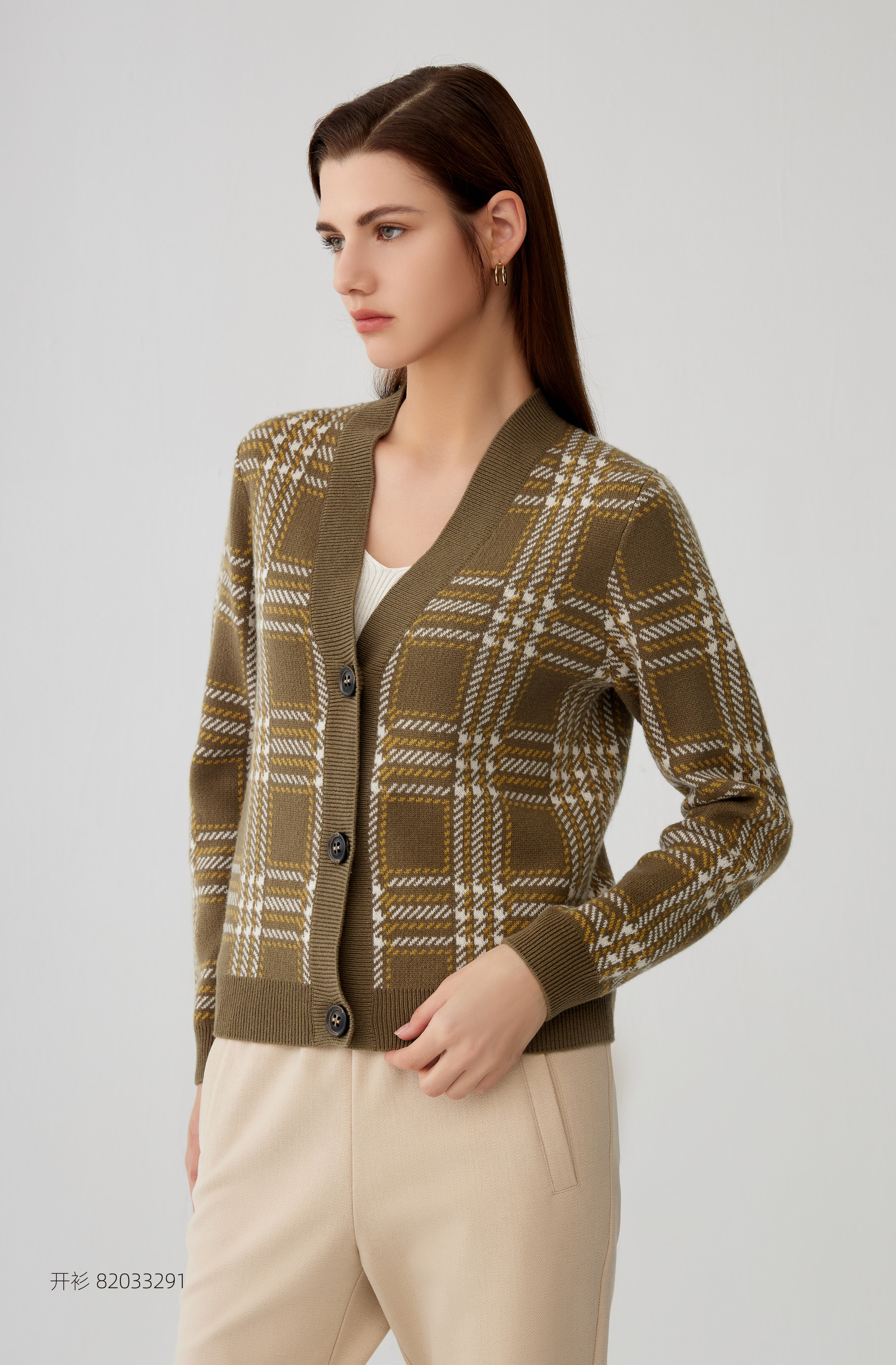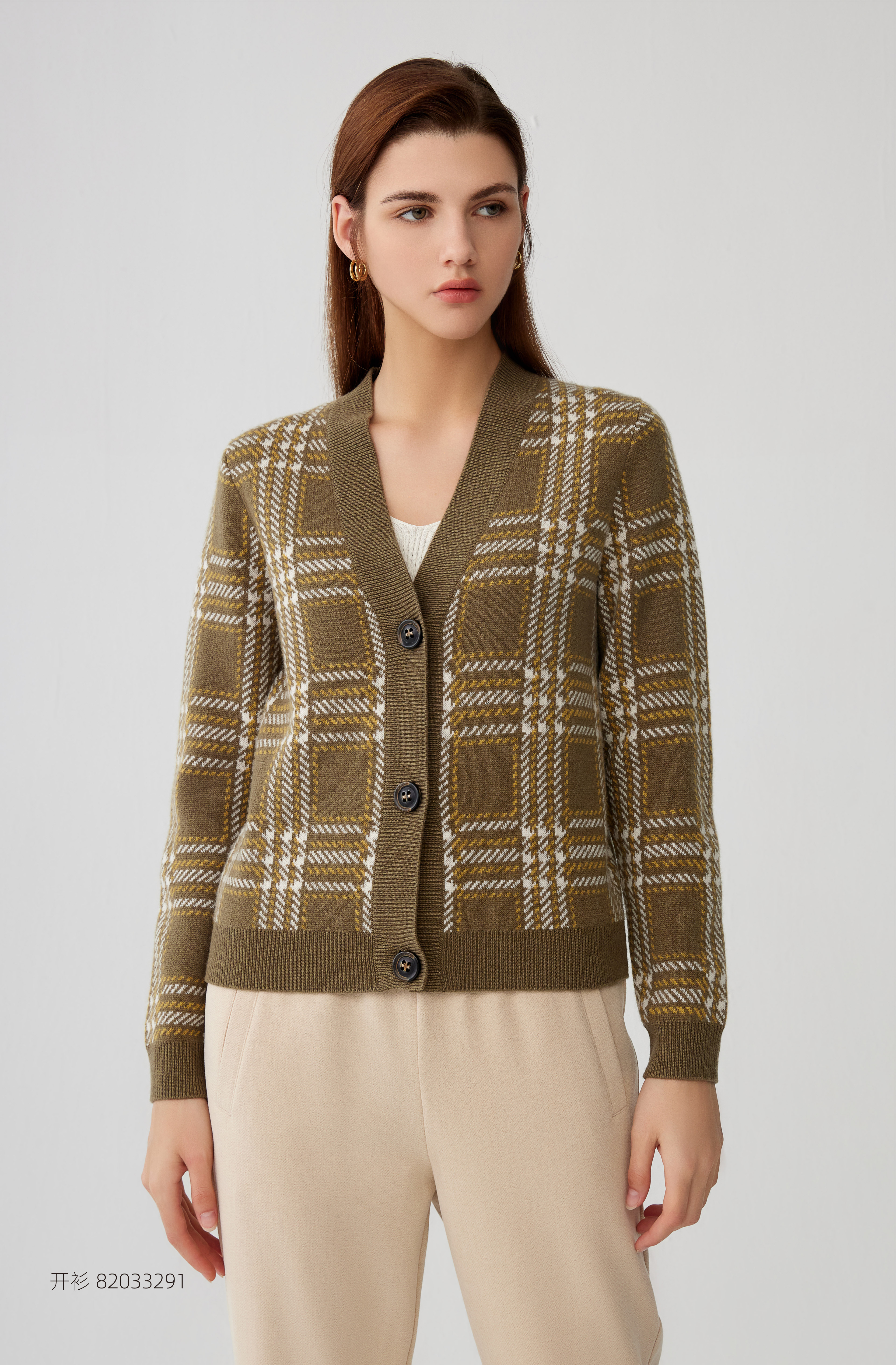 【V领针织羊绒开衫外套】羊绒世家秋冬新品女士100%山羊绒V领针织外套