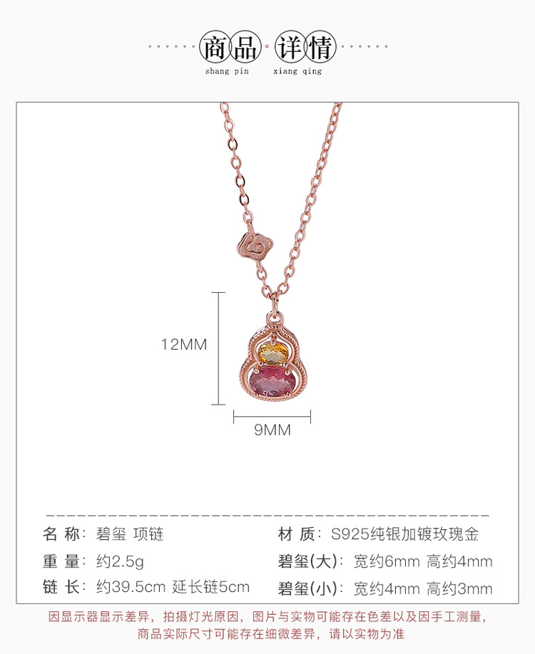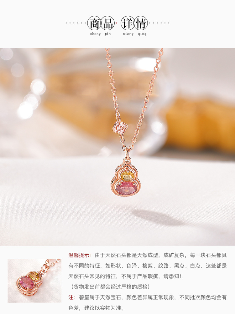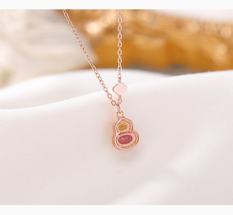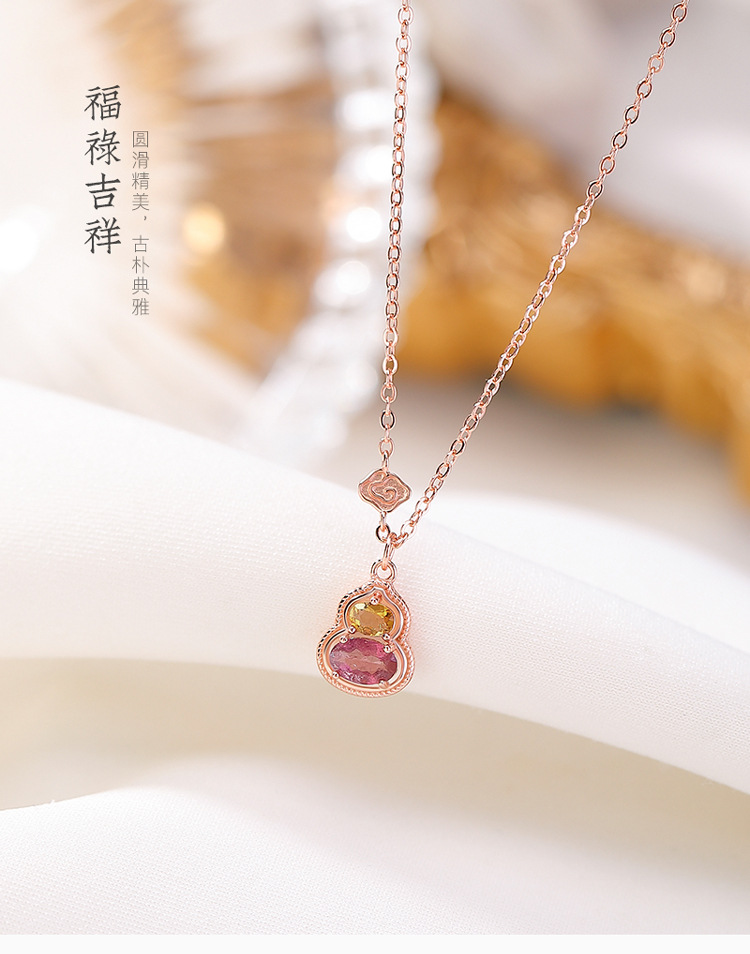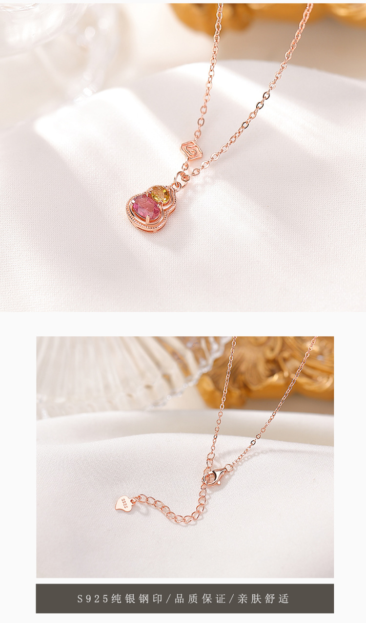 【祥云葫芦】S925纯银镀玫瑰金碧玺葫芦祥云套链【CW-XL00538】