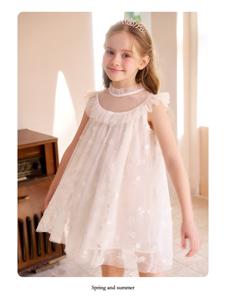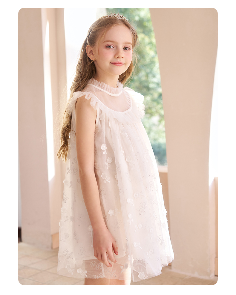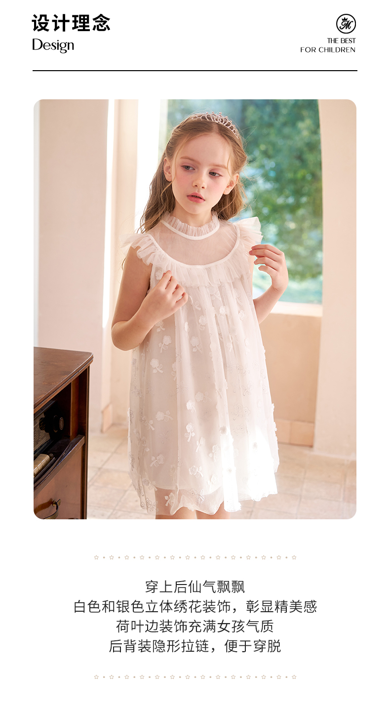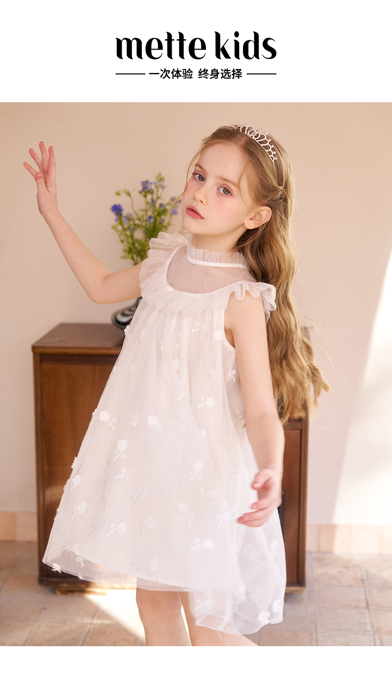 mettekids女童连衣裙夏季新款儿童白色绣花公主裙中大童洋气裙子