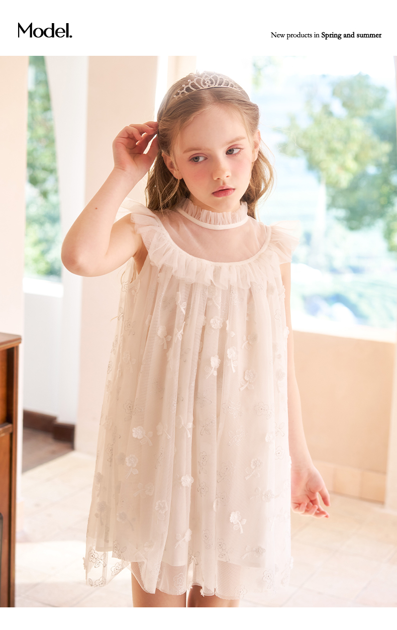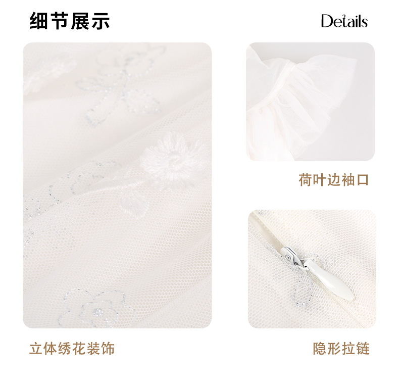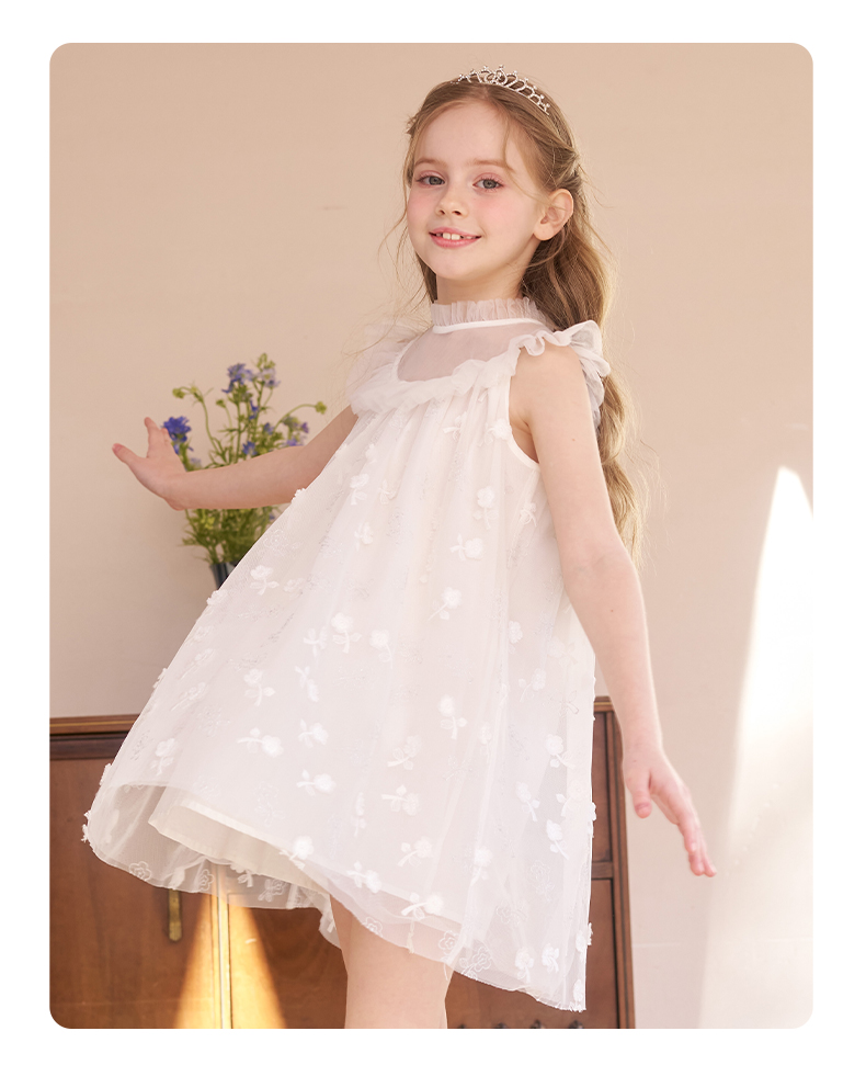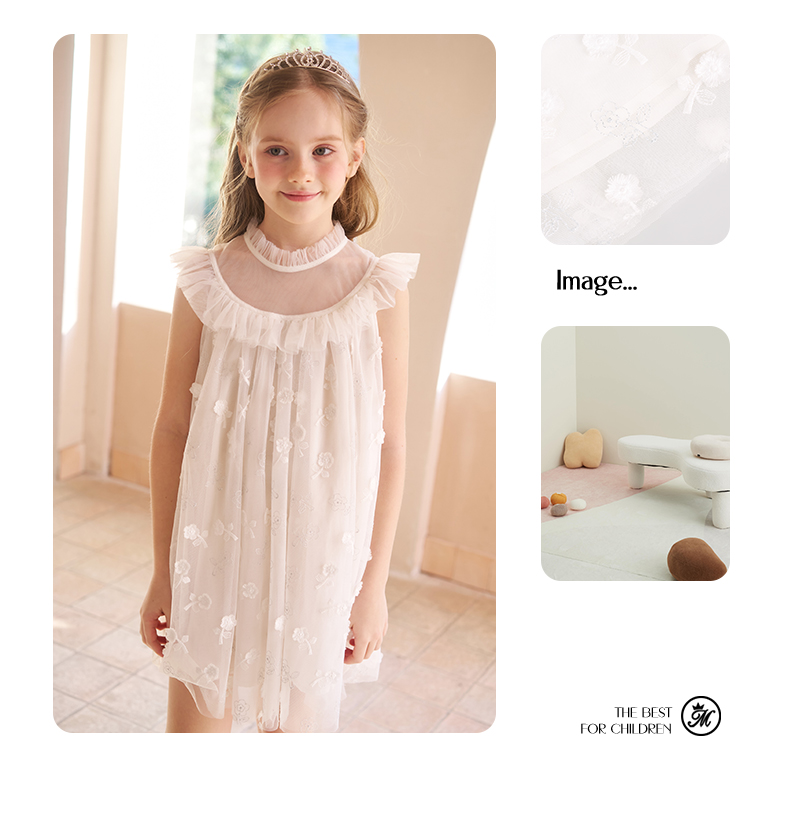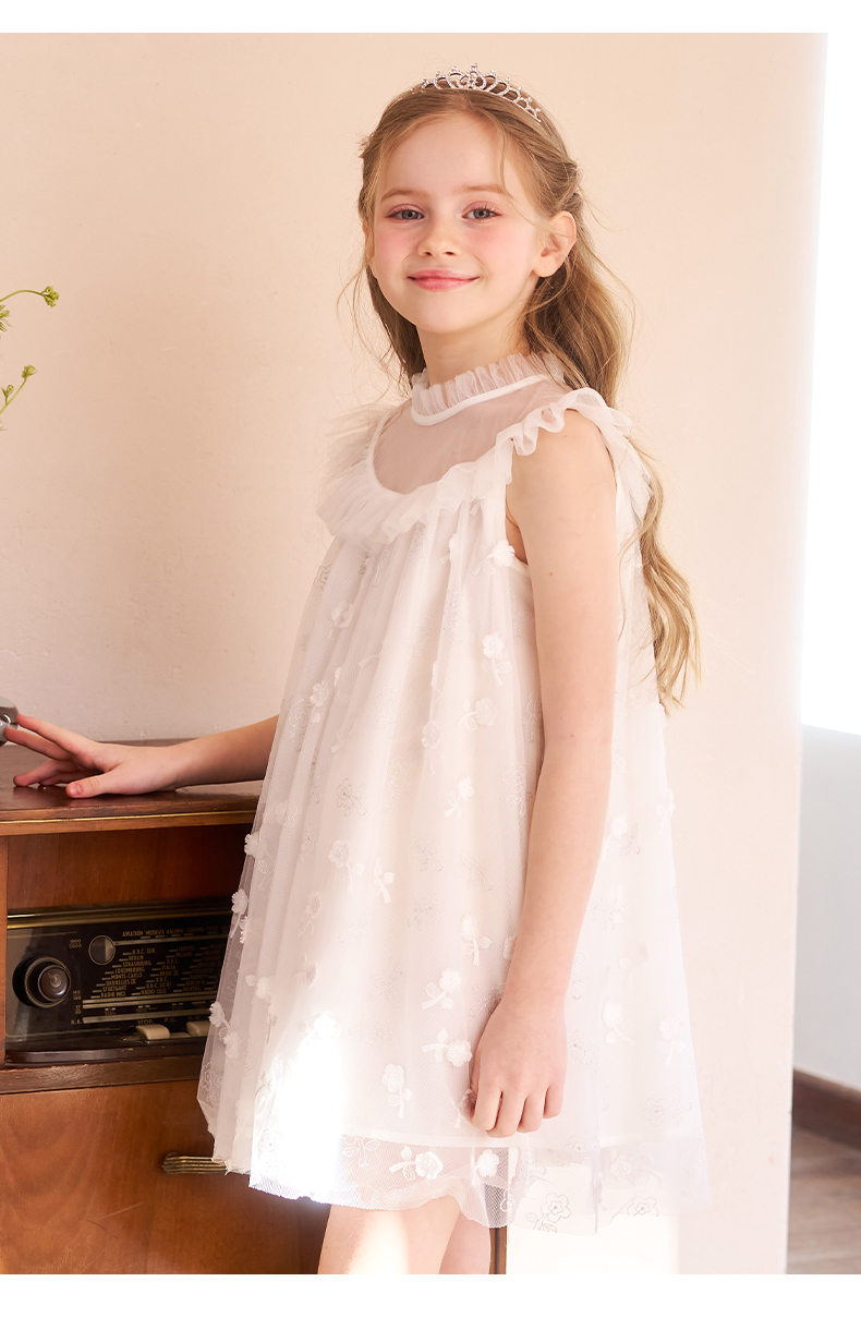 mettekids女童连衣裙夏季新款儿童白色绣花公主裙中大童洋气裙子