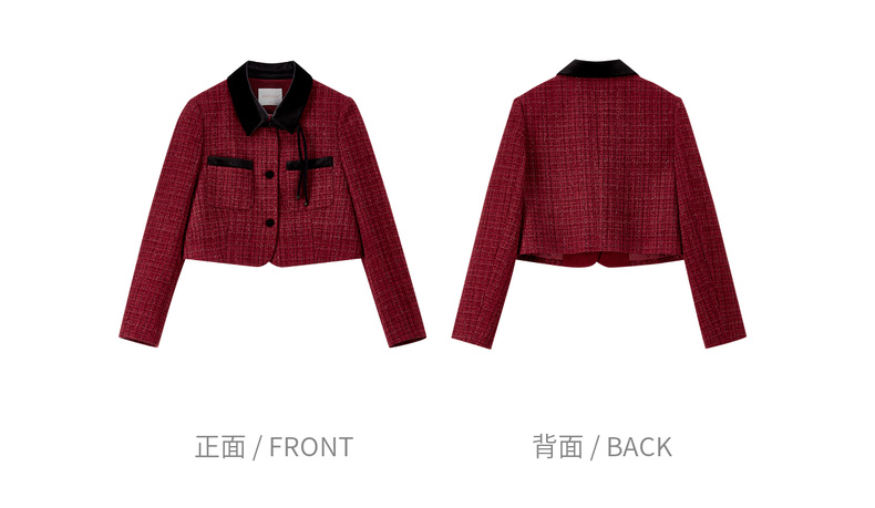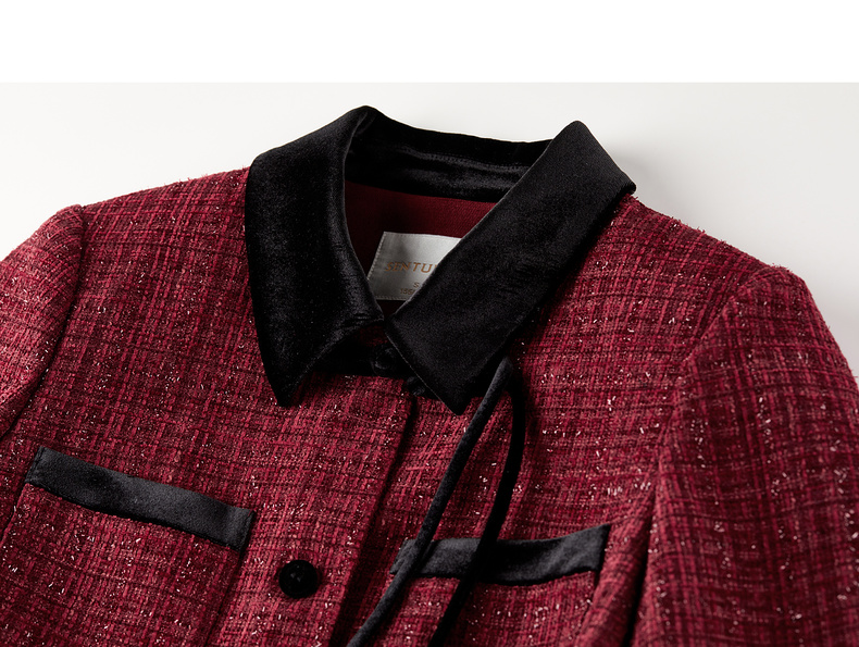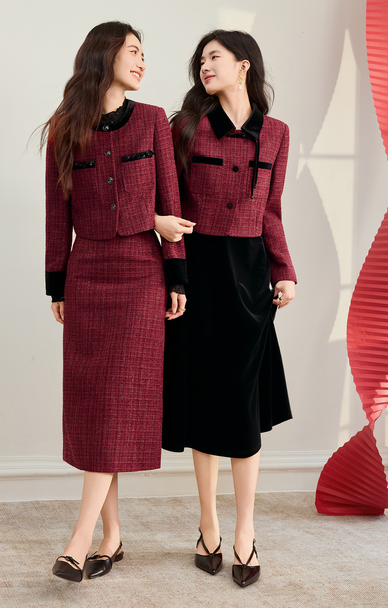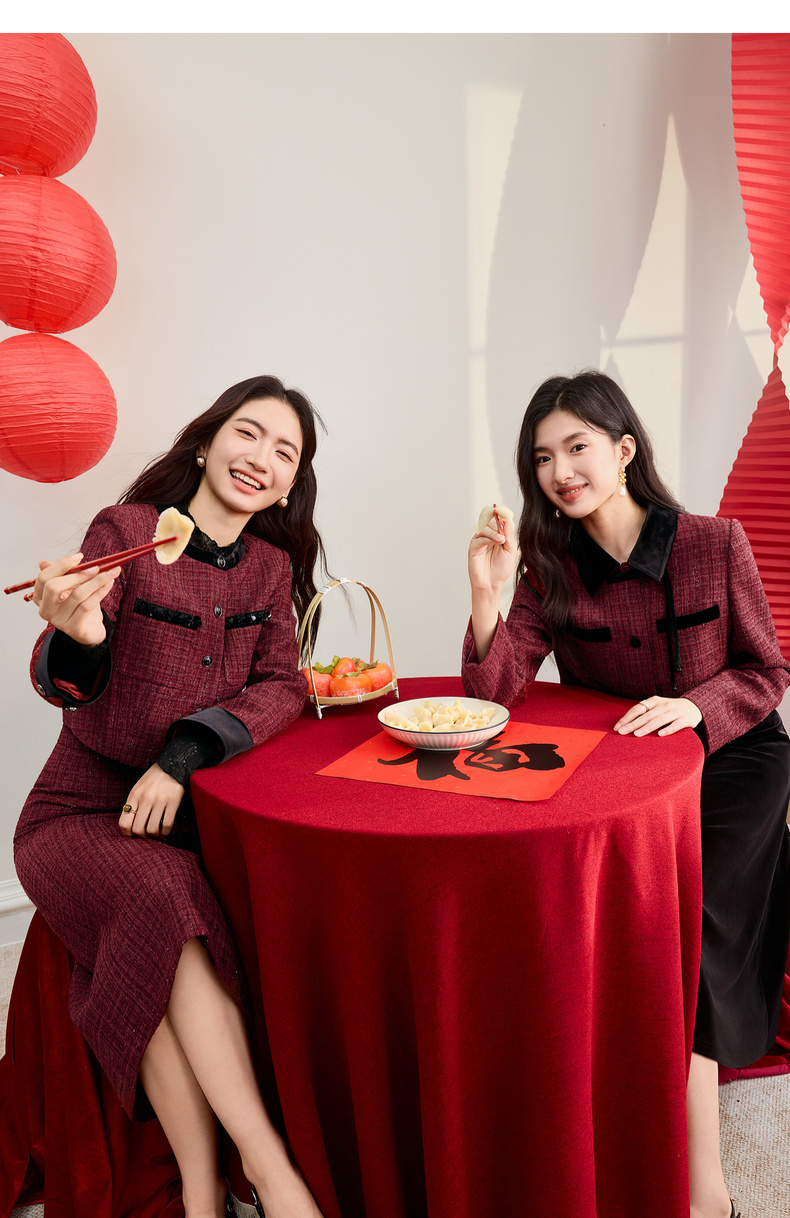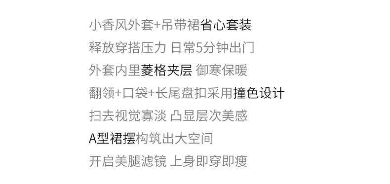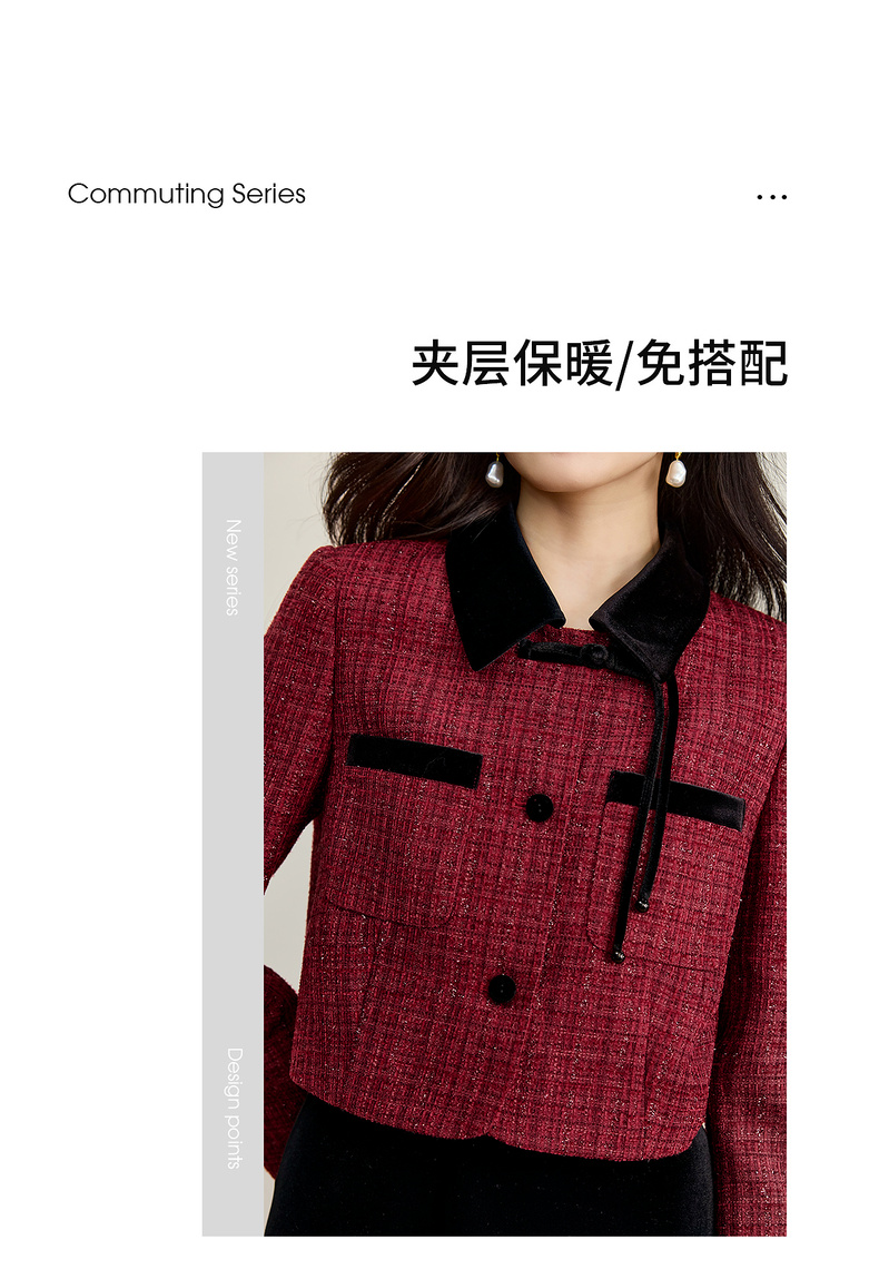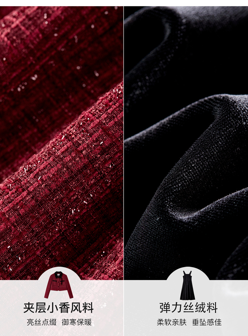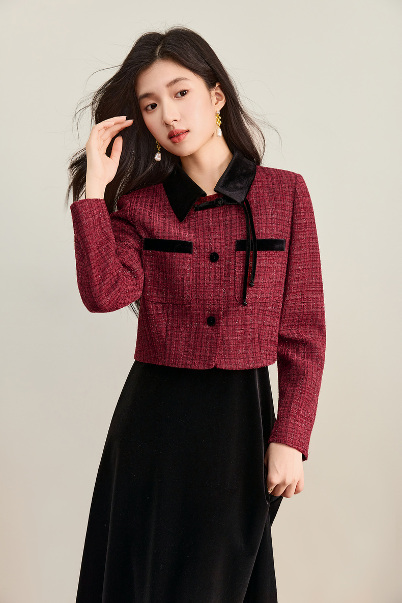 【内购】【免搭配套装】通勤小香风撞色翻领夹棉保暖短外套&丝绒吊带裙-154ZB3683