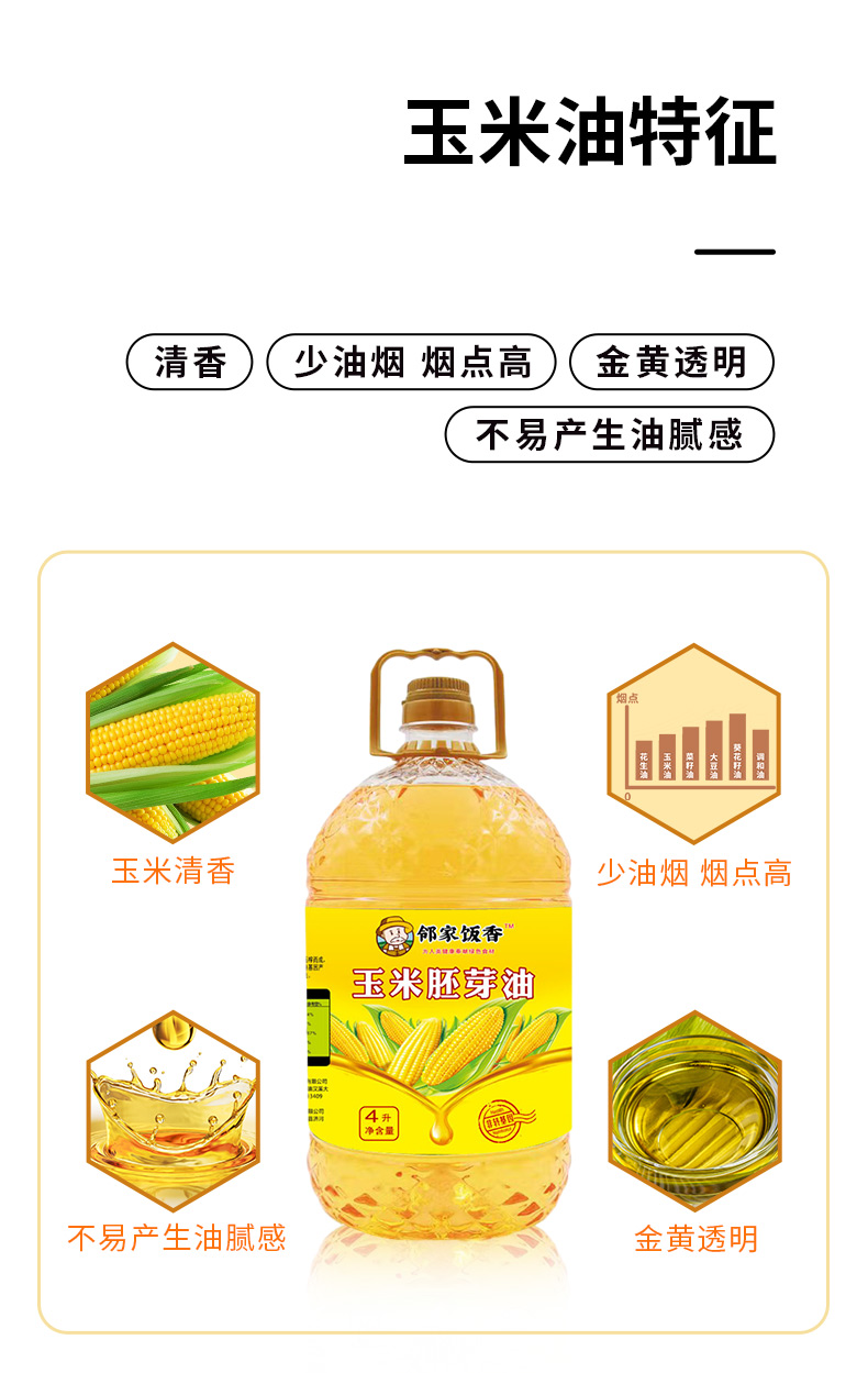 邻家饭香 压榨一级玉米胚芽油 非转基因 4L/桶 LJFX129