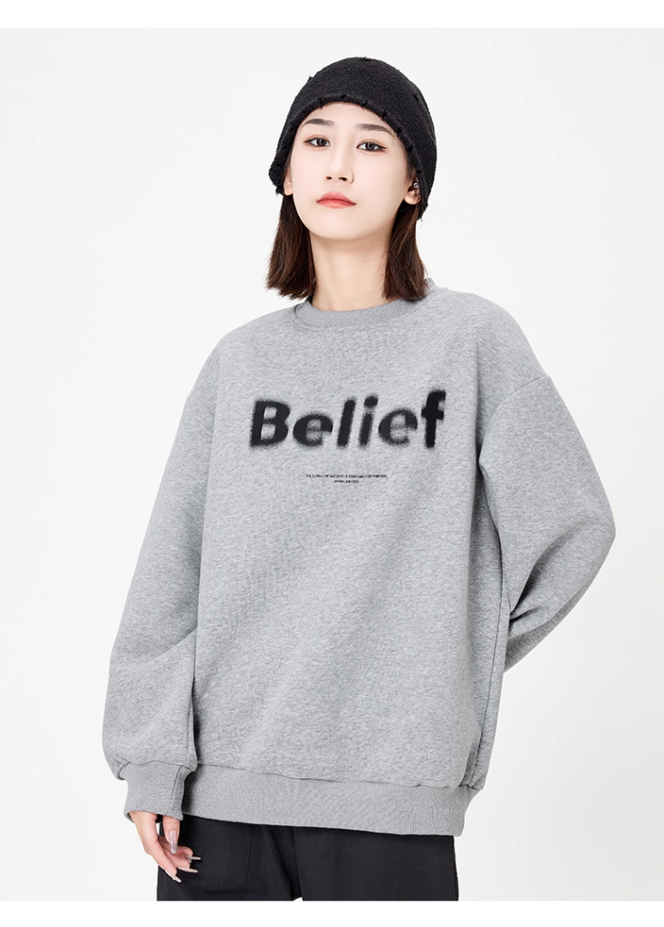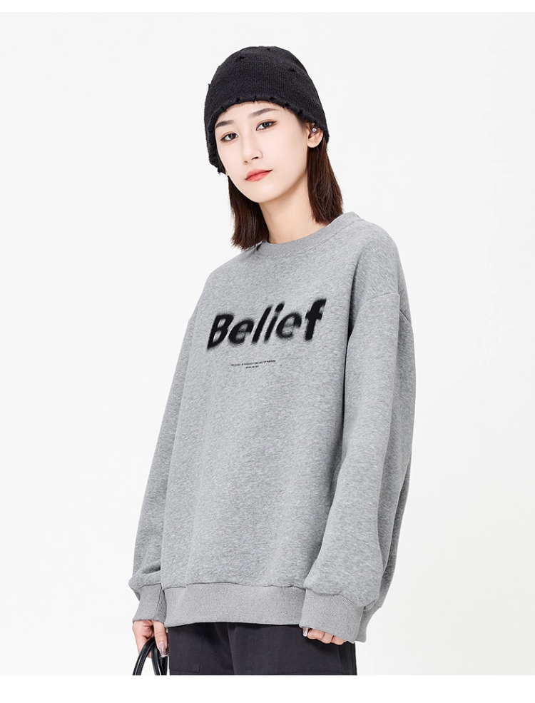 回力2025秋季新款美式复古灰色无帽卫衣女春秋宽松字母短款上衣潮