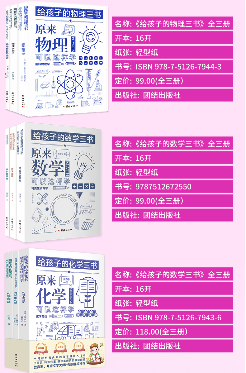 给孩子的数学三书+物理三书+化学三书刘薰宇原来数学可以这样学物理书籍科普百科自然科学数理化知识大全世界经典科普名著