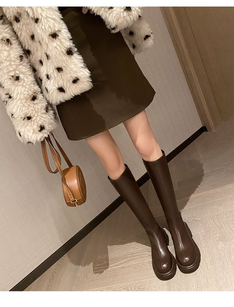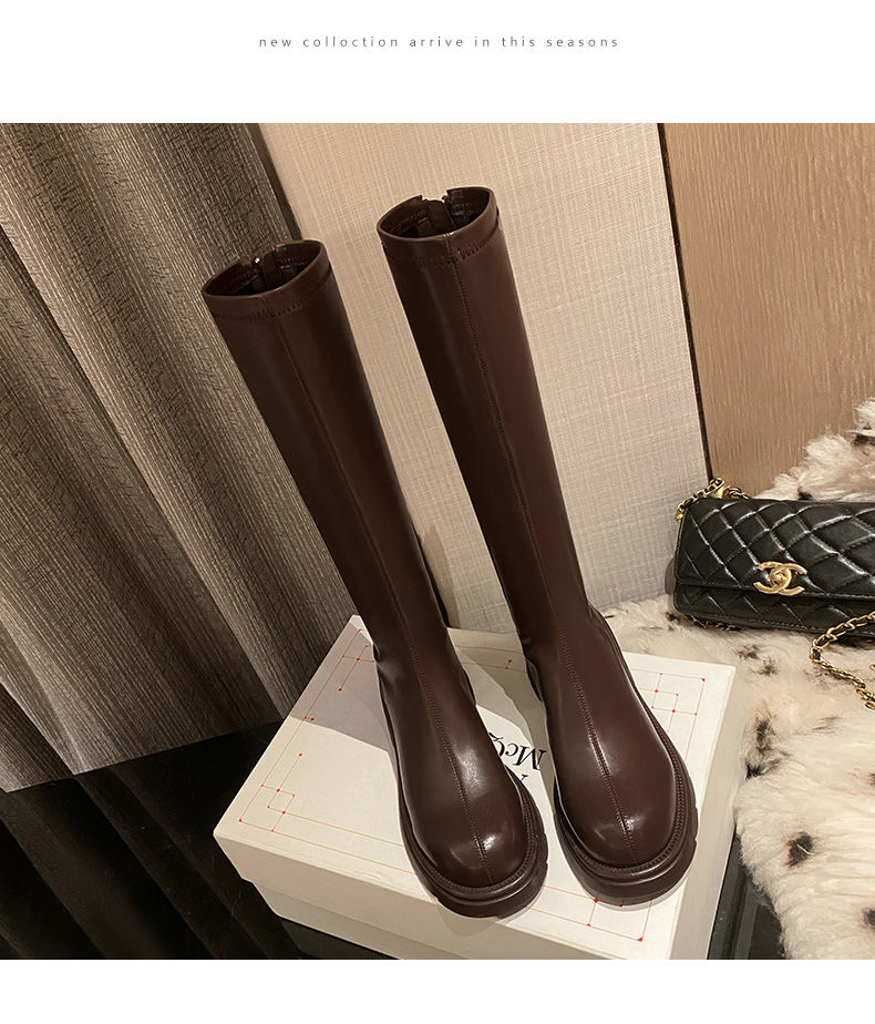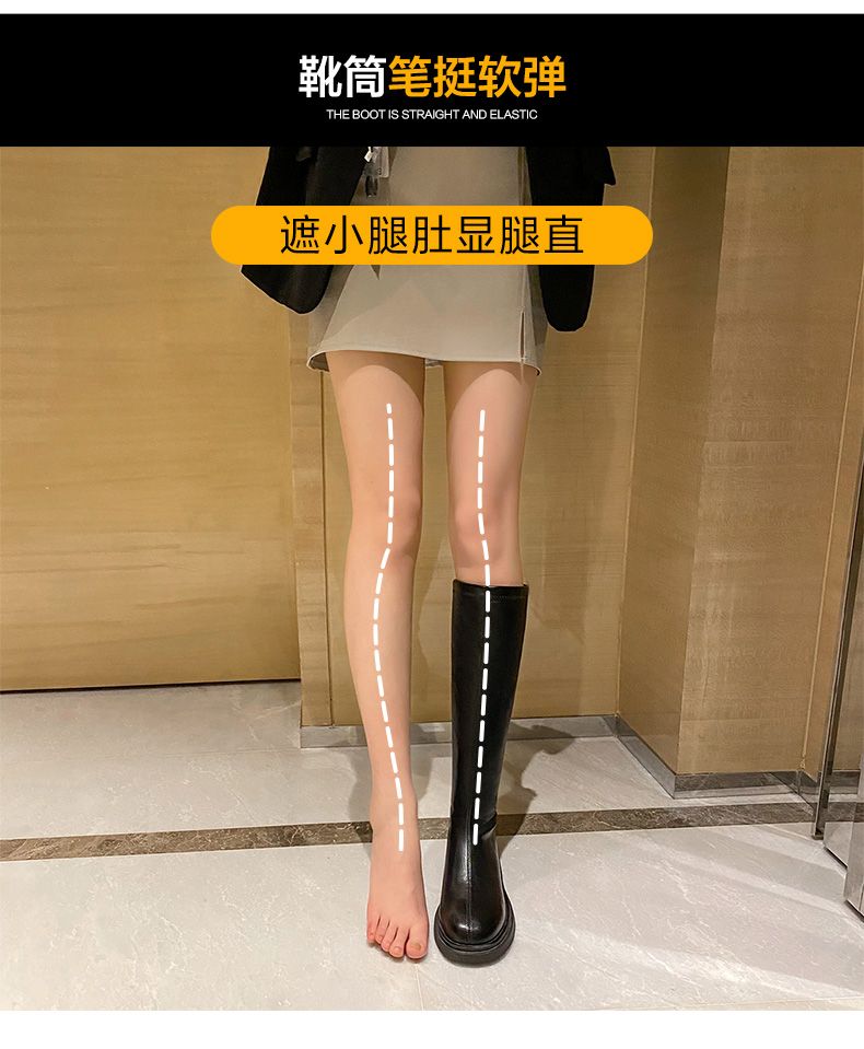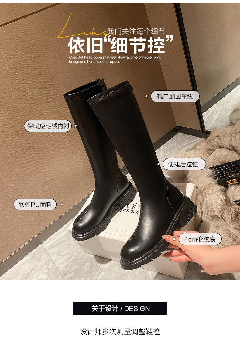ZHR骑士靴女2023秋季新款简美圆头休闲百搭潮流厚底长筒靴女