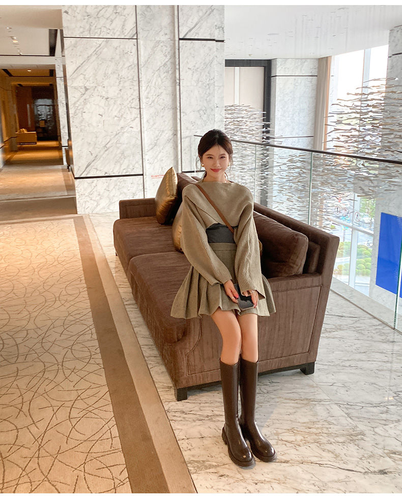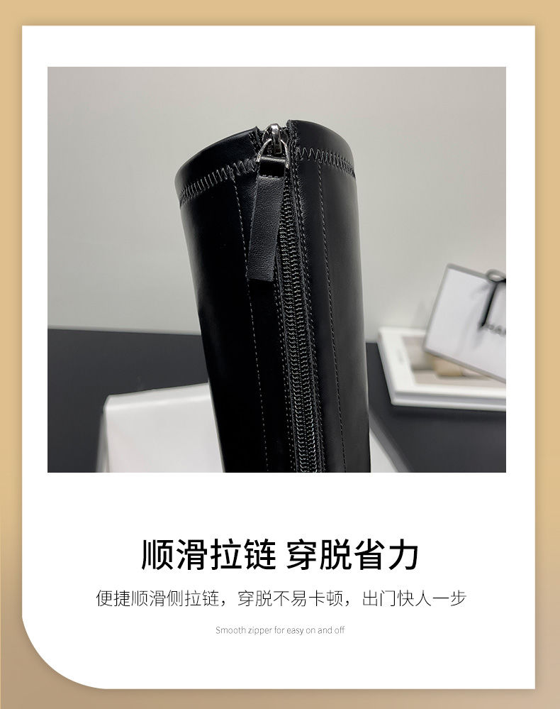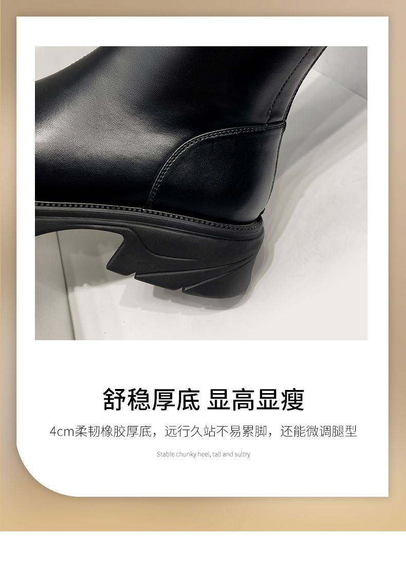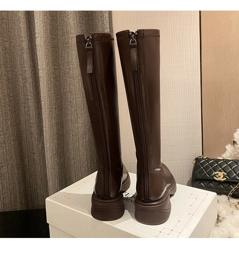 ZHR骑士靴女2023秋季新款简美圆头休闲百搭潮流厚底长筒靴女