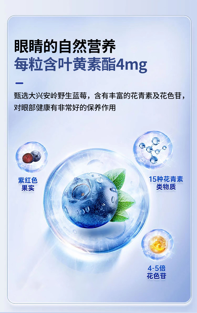 【国药】国药药材蓝莓叶黄素软糖,每粒含叶黄素酯4mg,呵护眼视力健康,缓解用眼疲劳