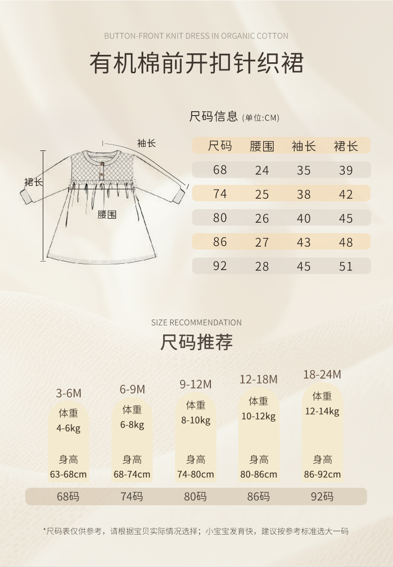 【云优选】FIXONI 婴幼儿前开扣针织裙