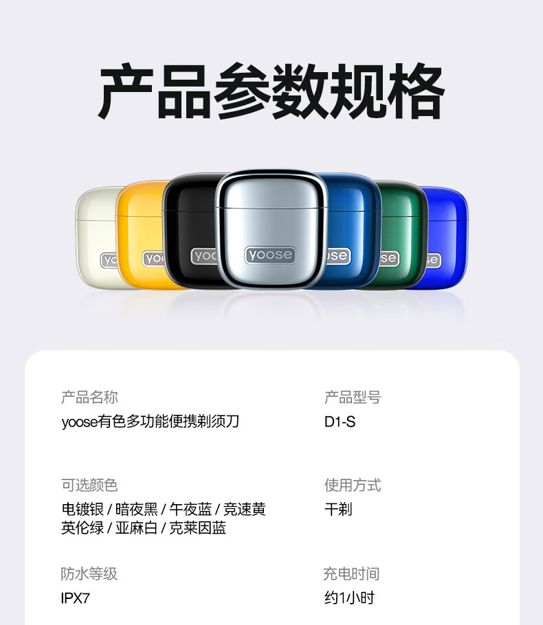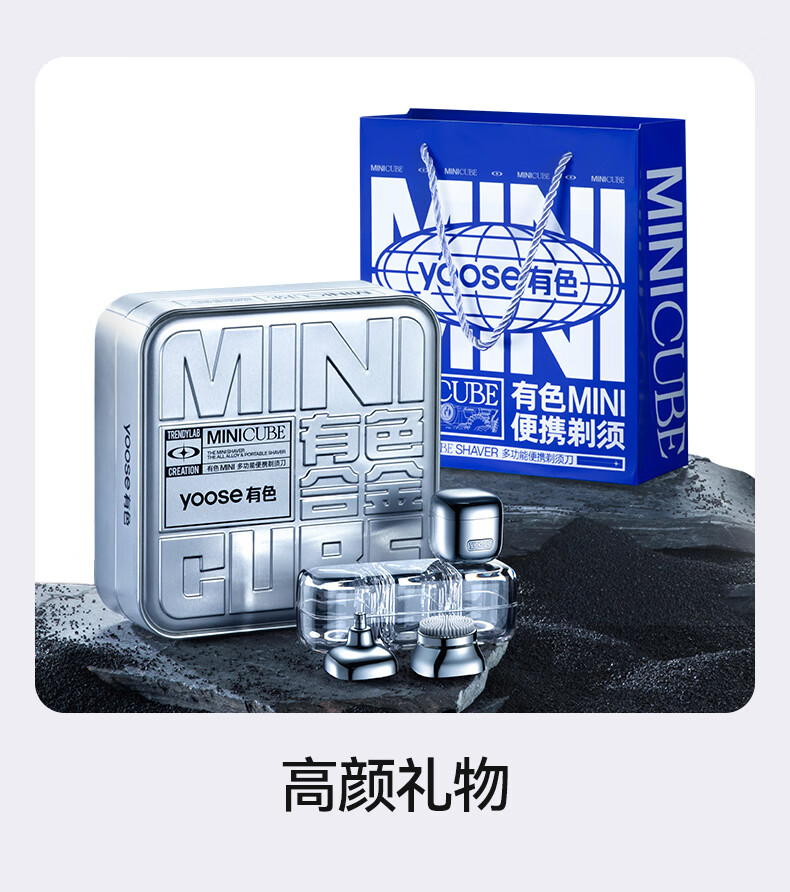 有色(yoose)电动剃须刀_便携刮胡刀修鼻毛洁面仪三合一_情人节礼物送男朋友老公_小魔方理容套装_D1-S_电镀银