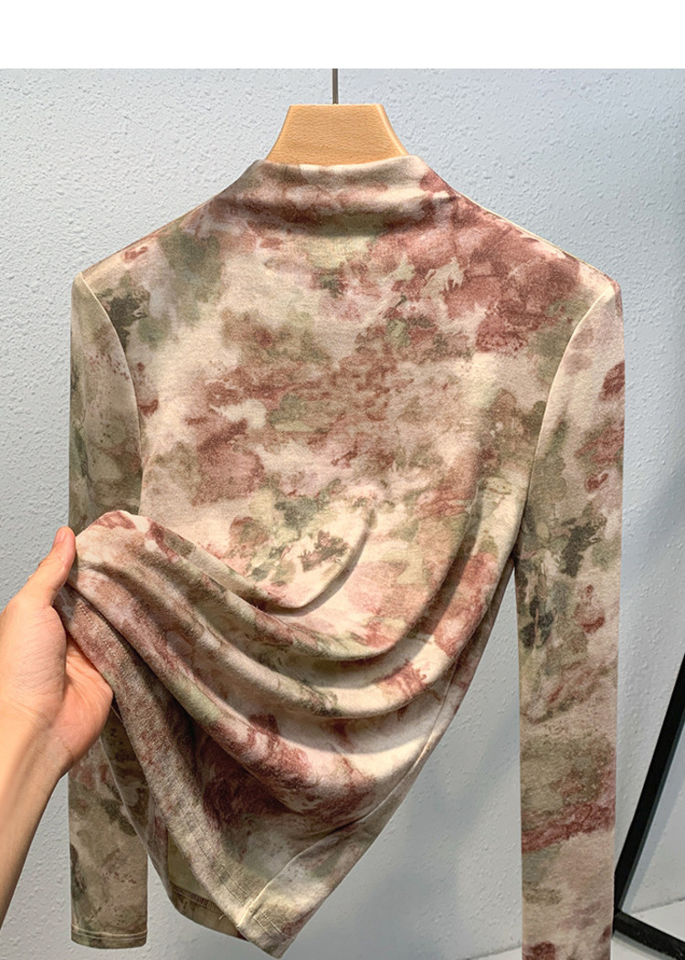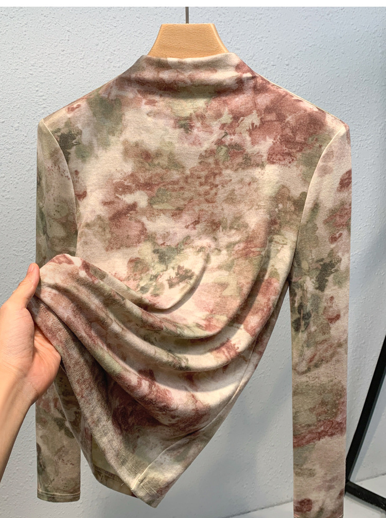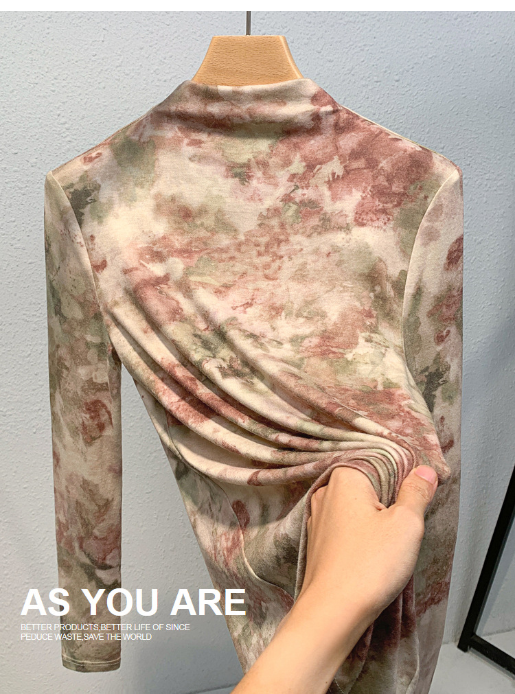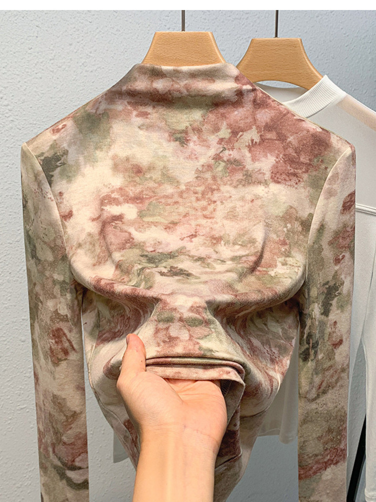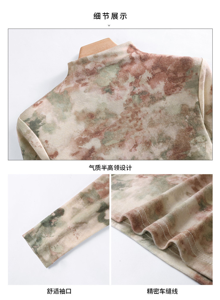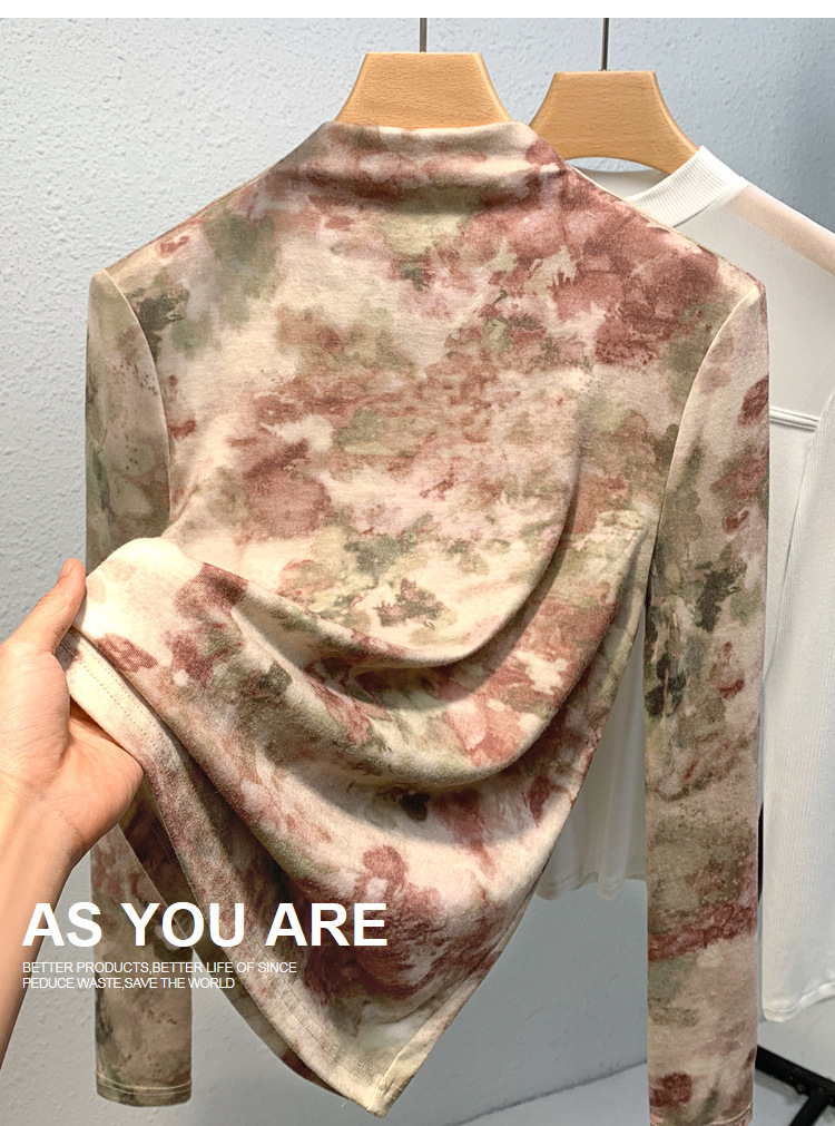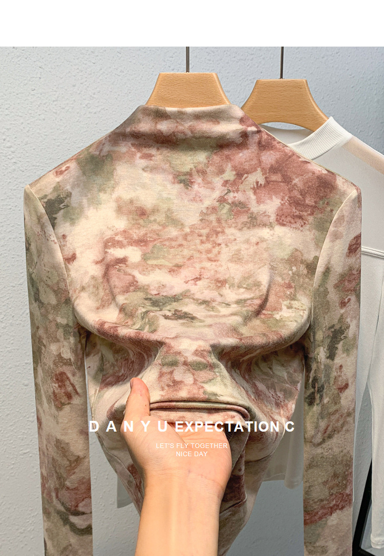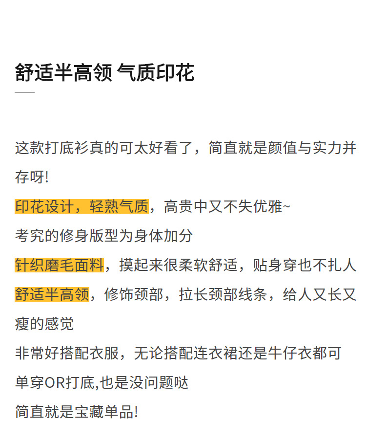 半高领打底衫女,欧货女装洋气印花长袖t恤收腰内搭气质上衣XY-J3D0818