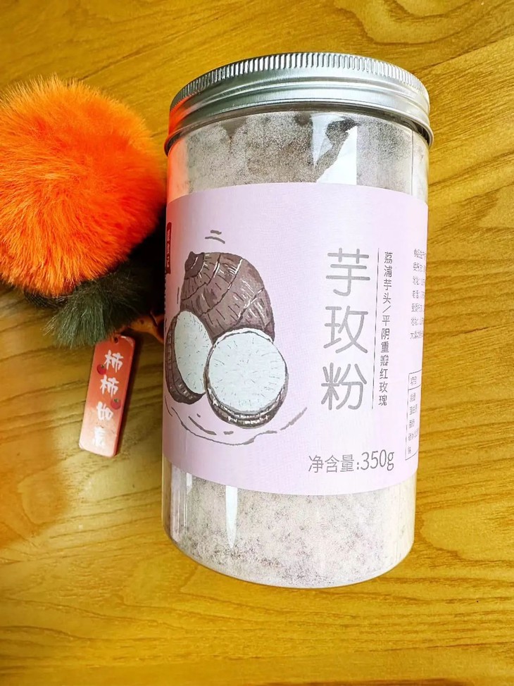 现在微店给大家准备了玫瑰芋头粉,主要成份就是荔浦芋头制成的芋头粉,再添加了少量的平阴玫瑰花瓣。