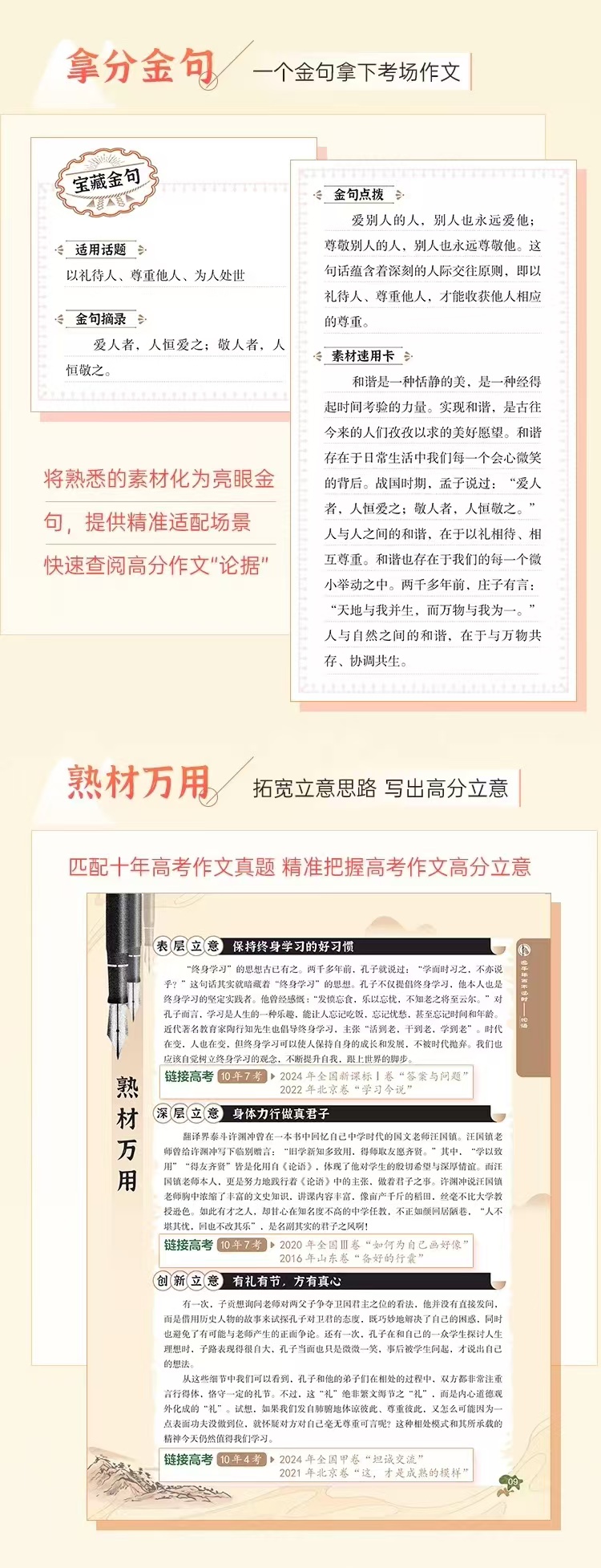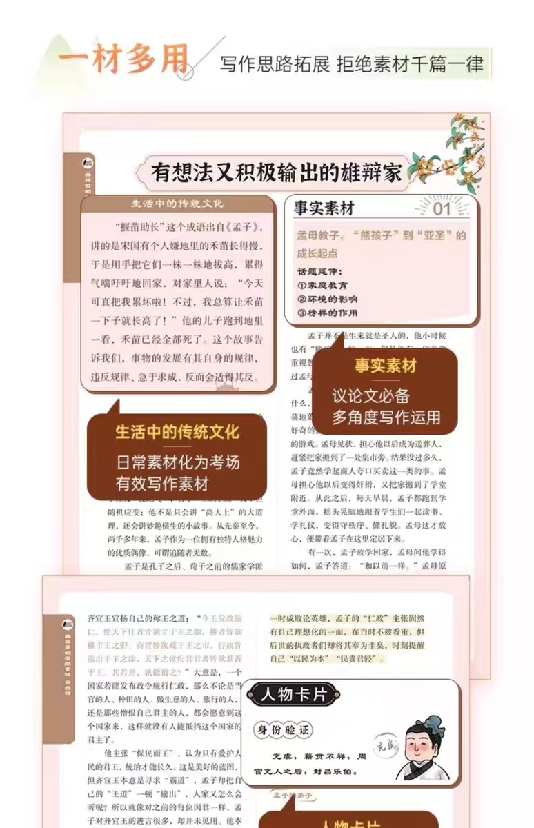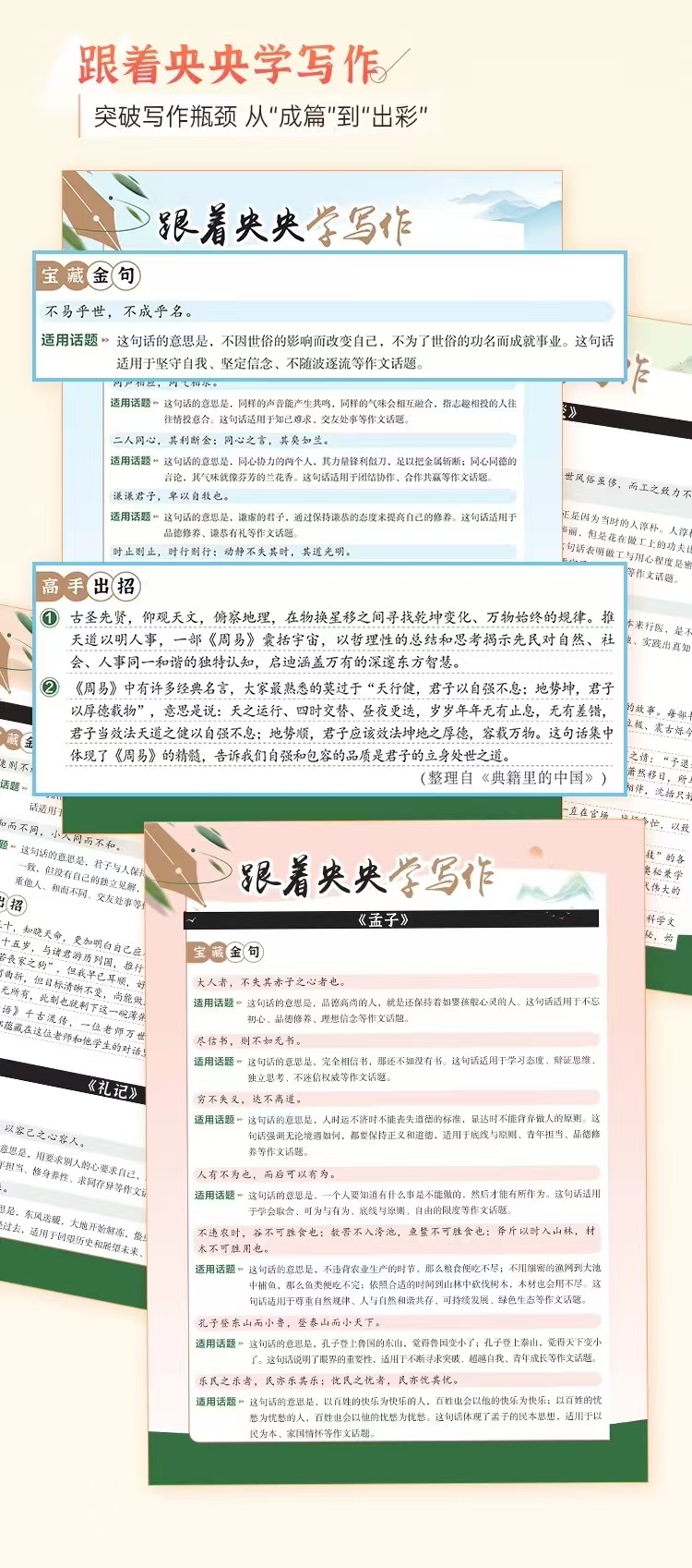 《典籍里的宝藏素材》四册 36篇历史经典满分模版万用 考场金句速记 热考作文预测
